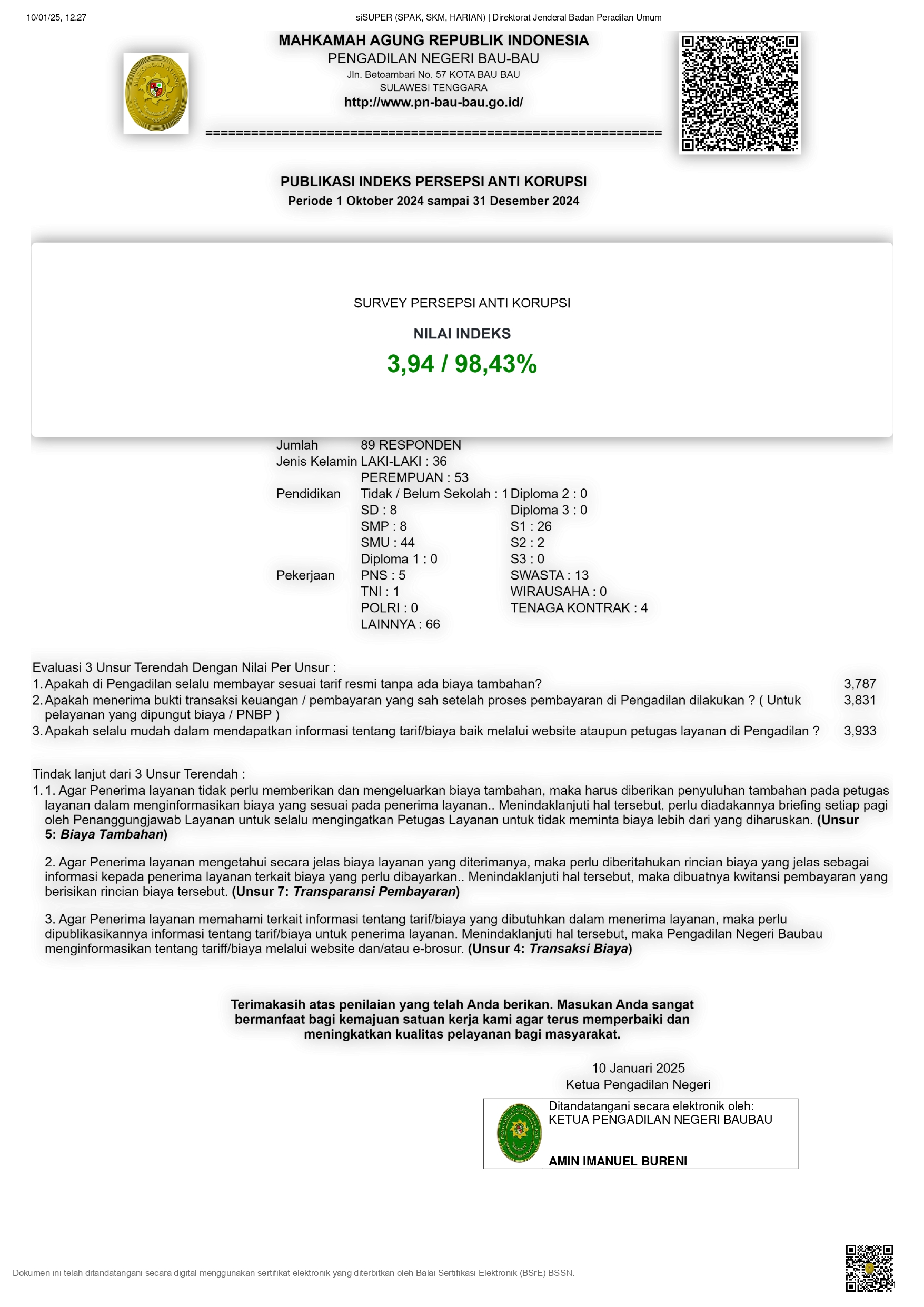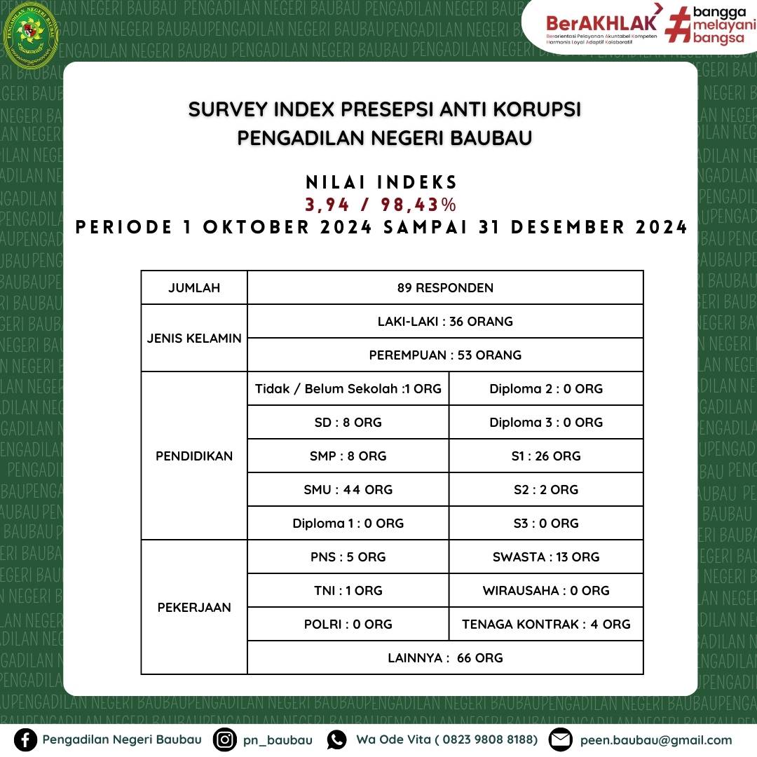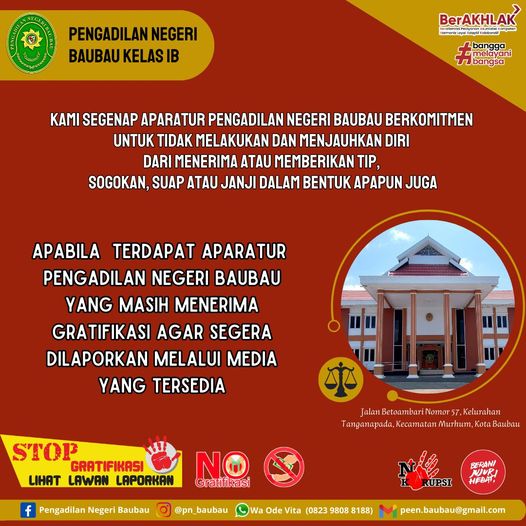 Mahkamah Agung RI telah menerbitkan PERMA Nomor 1 Tahun 2016 tentang Prosedur Mediasi guna mewujudkan mediasi yang efektif, efisien, cepat serta beritikad baik dalam penyelesaian perkara di Pengadilan Negeri Baubau Kelas 1 B