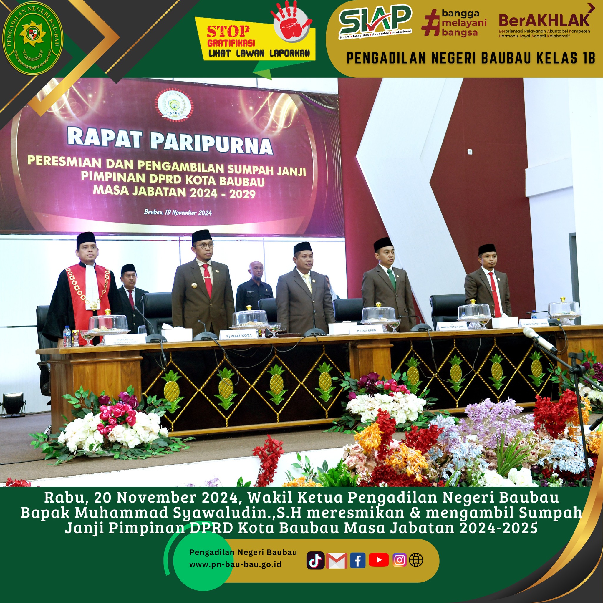 Kegiatan yang dilaksanakan pada pukul 09.00 Wita sampai selesai ini bertempat di Ruang Media Center dan diikuti oleh Wakil Ketua, Para Hakim, Para Panmud, , PP, JS/JSP , Staf Kepaniteraan, dan PPNPN Kepaniteraan Pengadilan Negeri Baubau.