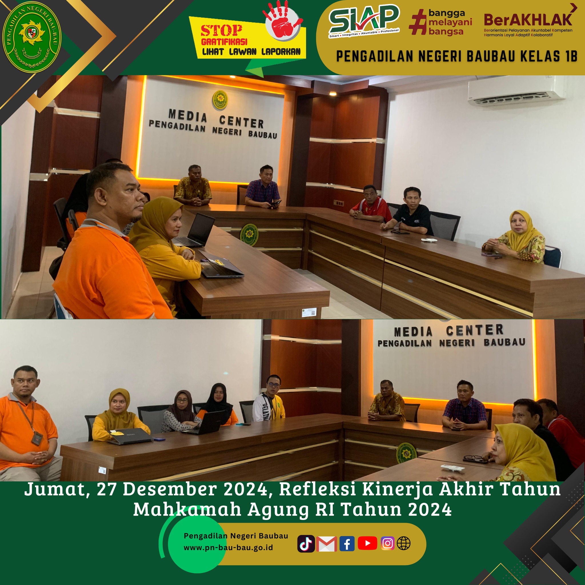 Senin., 30 Desember 2024 Pelaksanaan Apel Senin Pagi di Pengadilan Negeri Baubau dipimpin oleh Bpk Muhammad Juanda Parisi.,S.H.,M.H Hakim Pengadilan Negeri Baubau