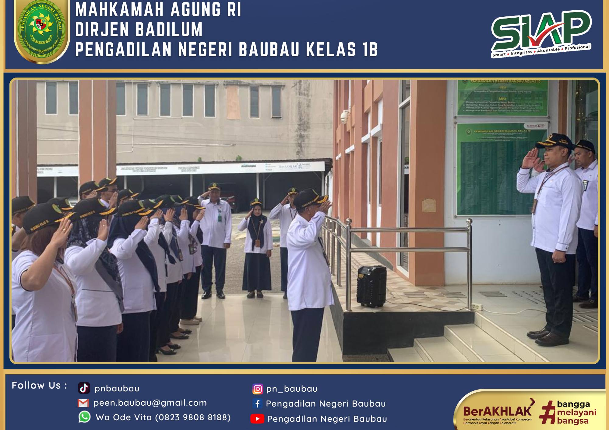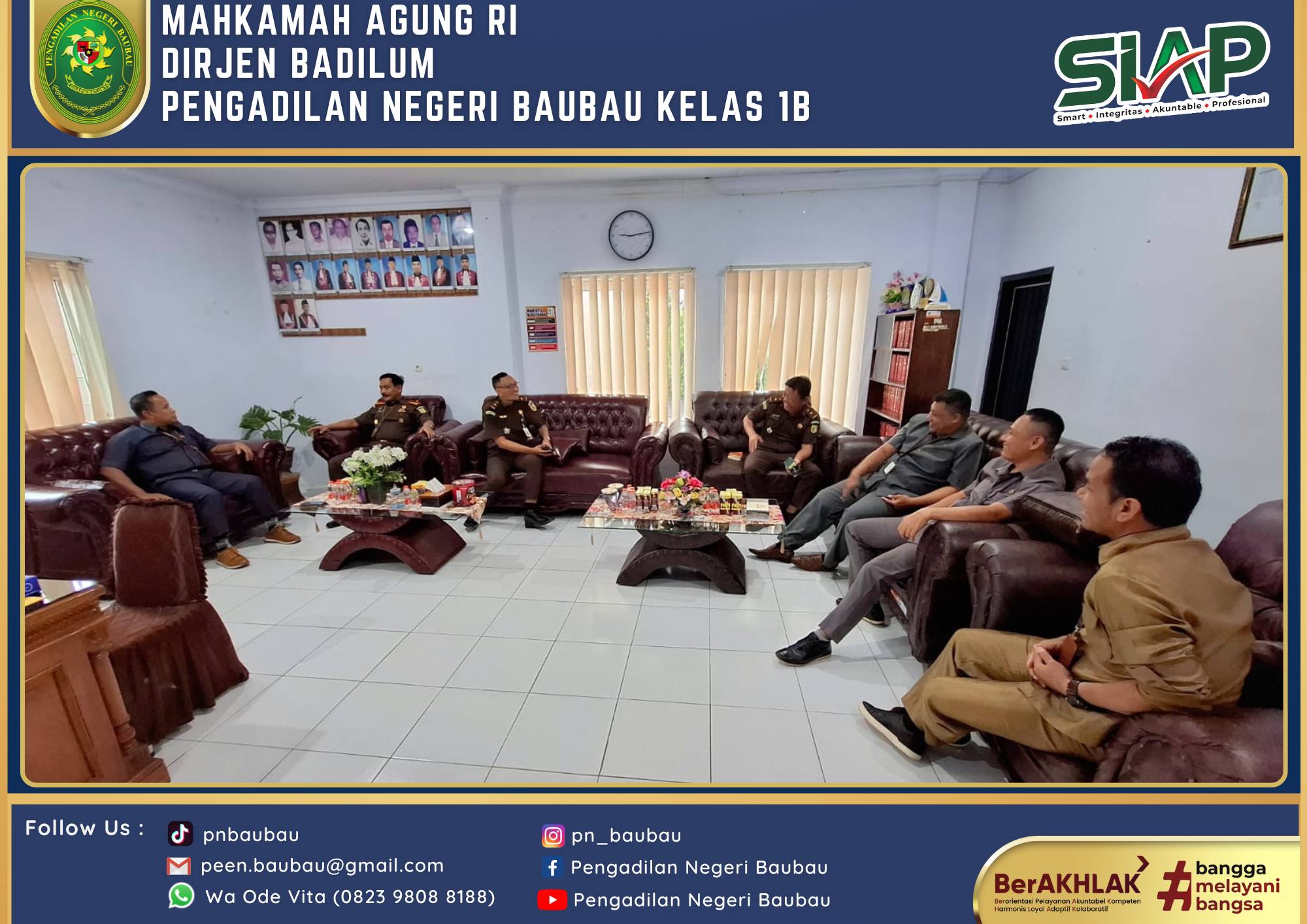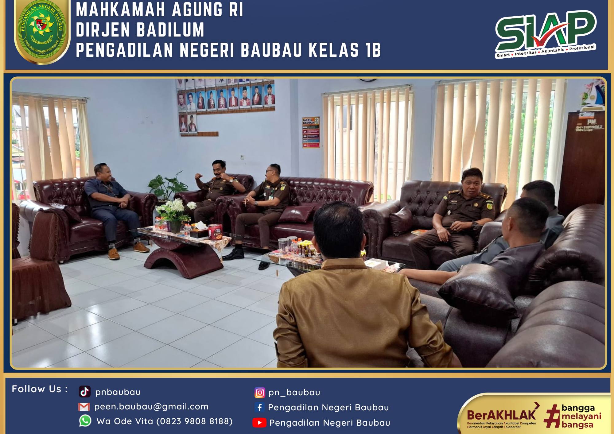 Ketua Pengadilan Negeri Baubau Kelas IB YM. Bapak Joko Dwi Atmoko, S.H., M.H menerima Kunjungan Kepala Kejaksaan Negeri Baubau Bapak Fatkhuri, S.H bersama dengan Kasi Intelijen Bapak Wahyu Wibowo Saputro, S.H , dan Kasi Tindak Pidana Umum Bapak Da'wan Manggalupang, S.H dalam Rangka Silahturahmi di Pengadilan Negeri Baubau Kelas IB.