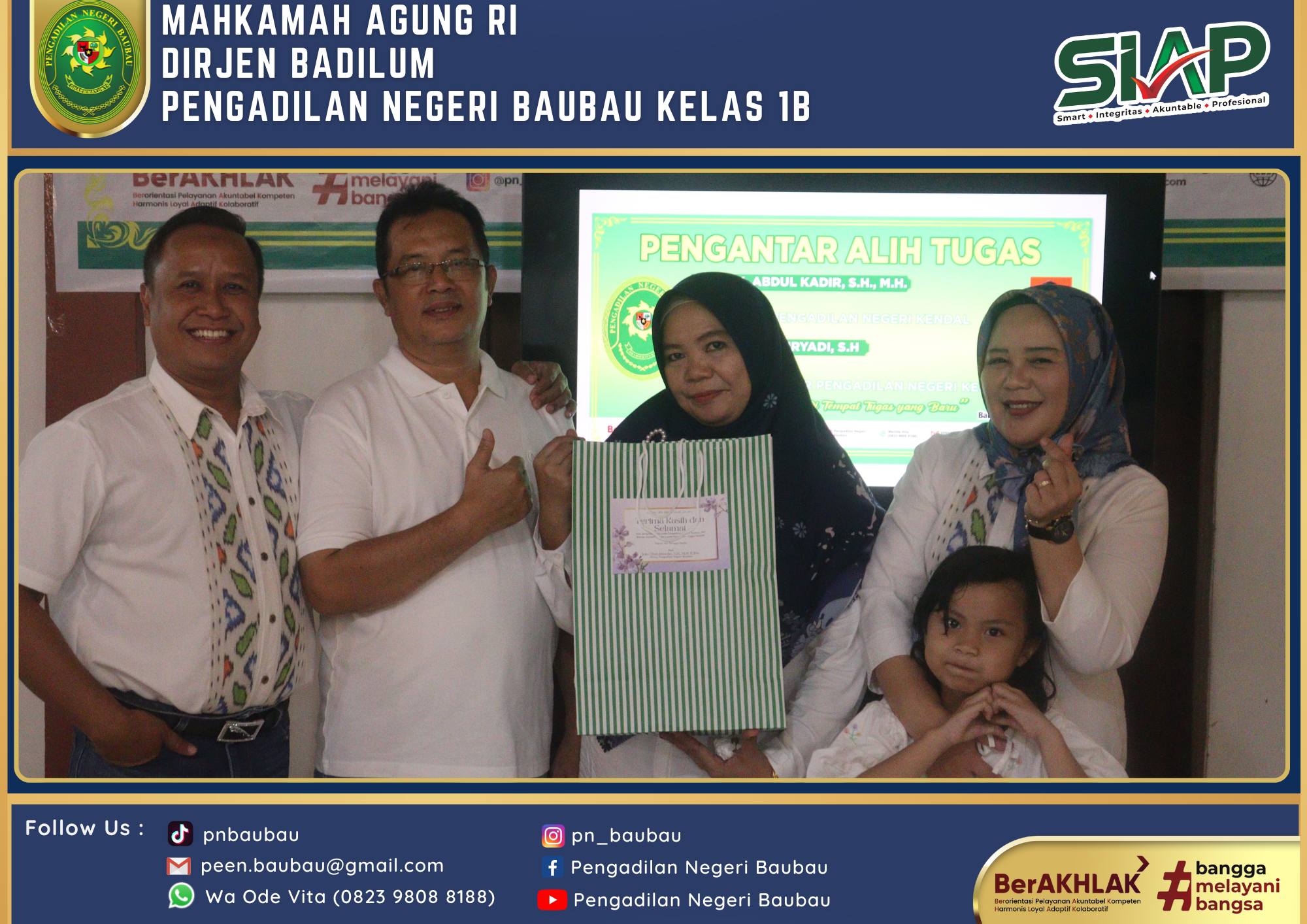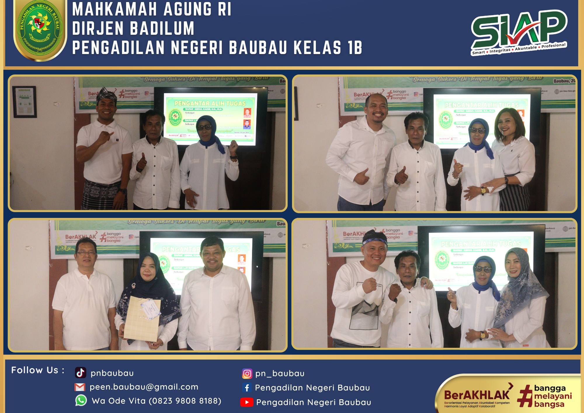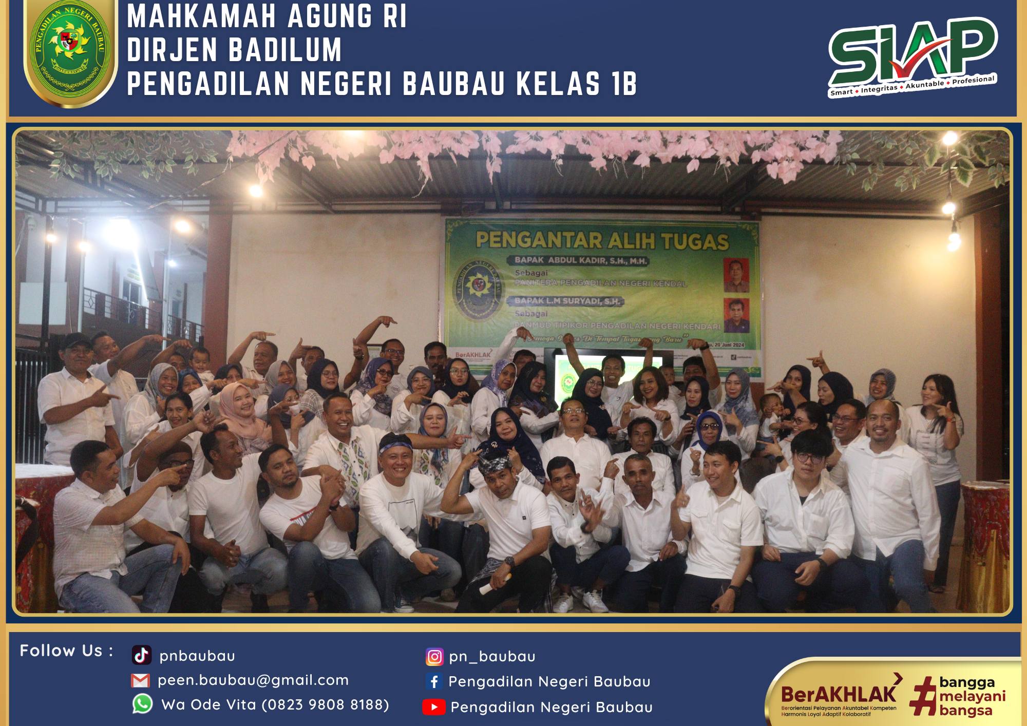 Pada Kamis, tanggal 20 Juni 2024, pukul 19.00 Wita sampai selesai, bertempat di Pengadilan Negeri Baubau telah dilaksanakan acara Pengantar Alih Tugas: