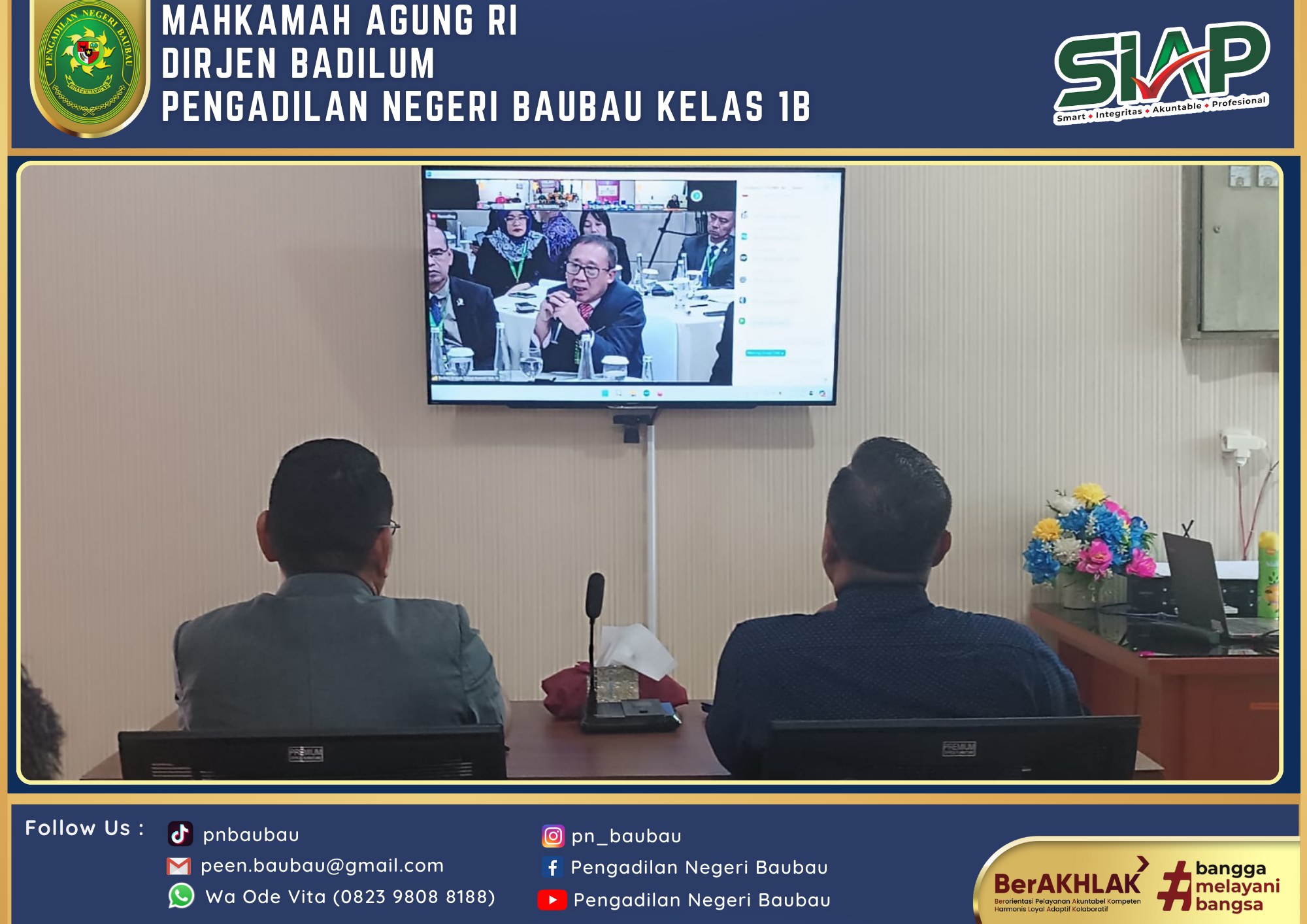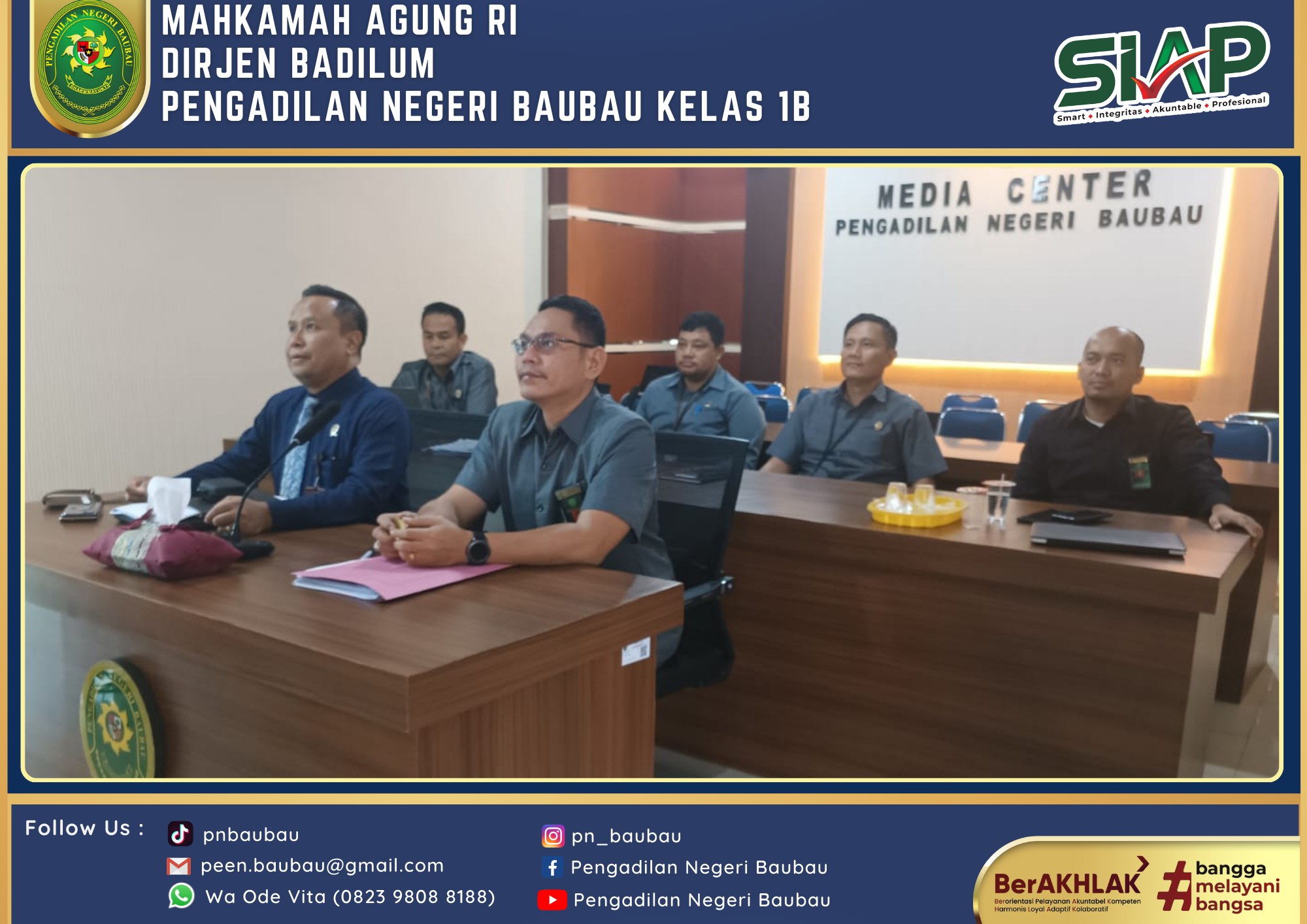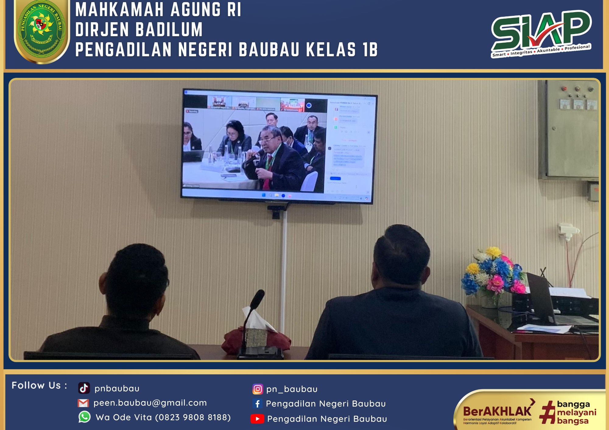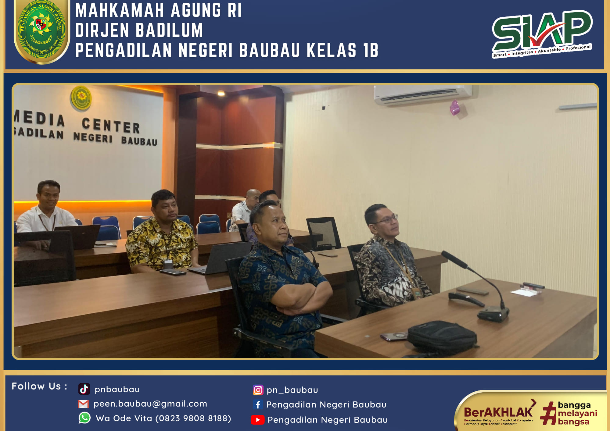 Ketua, Wakil Ketua, dan Hakim mengikuti Kegiatan Sosialisasi PERMA Nomor 1 Tahun 2023 Tentang Pedoman Mengadili Perkara Lingkungan Hidup Untuk Pengadilan di Wialyah Hukum Indonesia Bagian Tengah yang diselenggarakan secara Daring oleh Badan Strategi dan Pendidikan dan Pelatihan Hukum dan Peradilan Mahkamah Agung di Ruang Media Center Pengadilan Negeri Baubau Kelas IB. Pelaksanaan Kegiatan Sosialisasi Hari Ketiga ini dilaksanakan pada pukul 09.00 Wita sampai selesai.