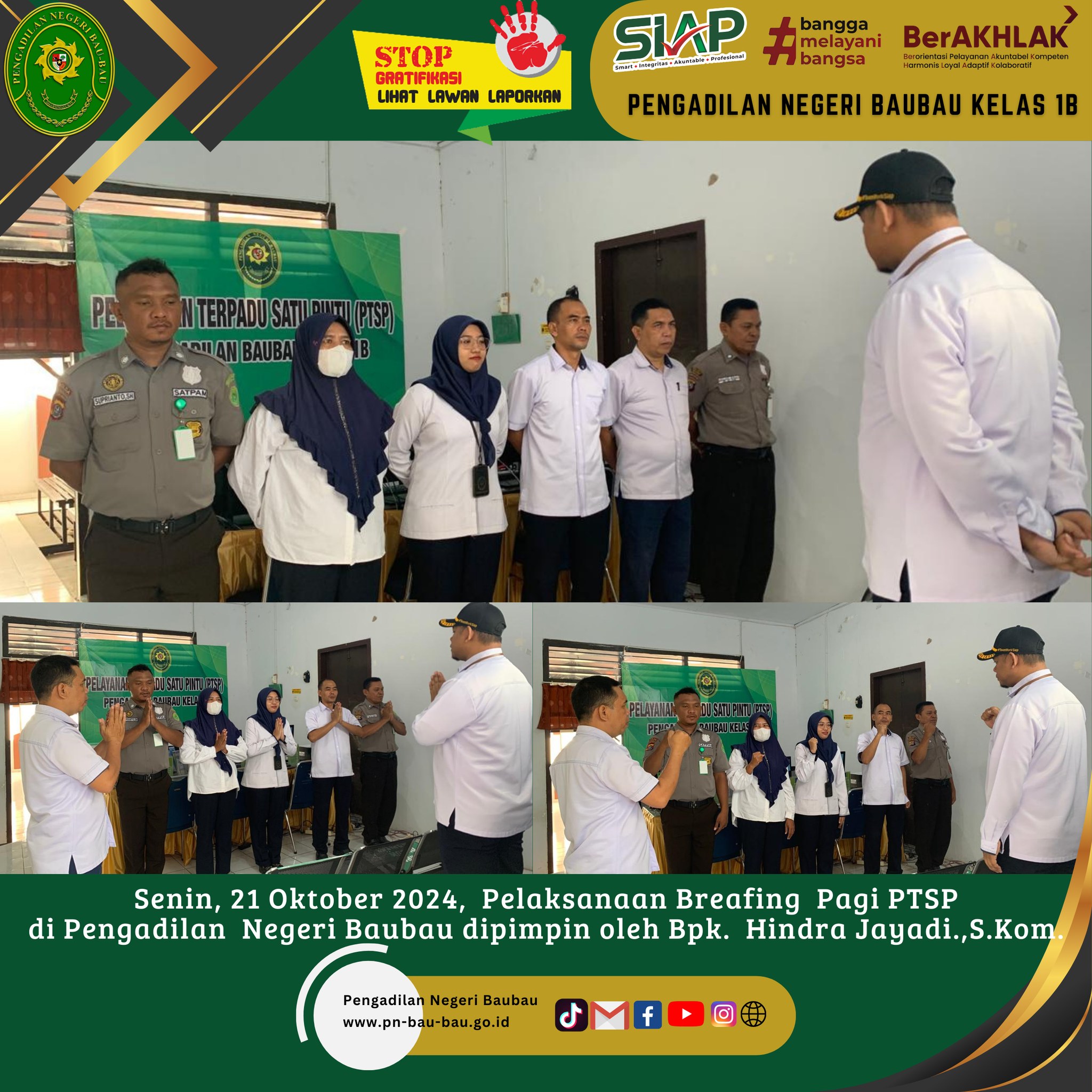 Kegiatan diikuti oleh Ketua, Wakil Ketua, Para Hakim, Para Panmud, Para Kasub, PP, JS/JSP, Fungsional Prakom dan Arsiparis, Staf, dan PPNPN Pengadilan Negeri Baubau.