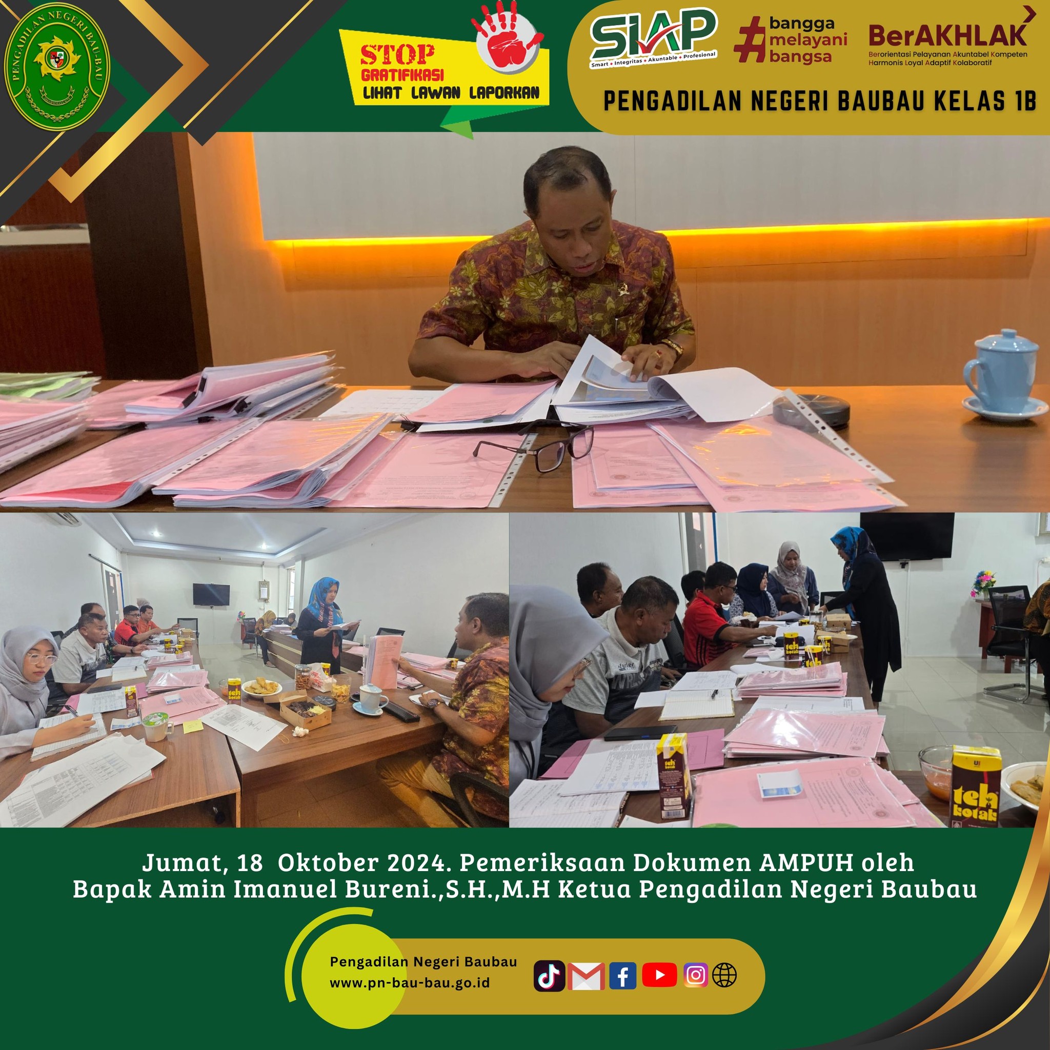 Kegiatan Pemeriksaan terhadap Dokumen AMPUH oleh Bapak Amin Imanuel Bureni.,S.H.,M.H Ketua Pengadilan Negeri Baubau.
