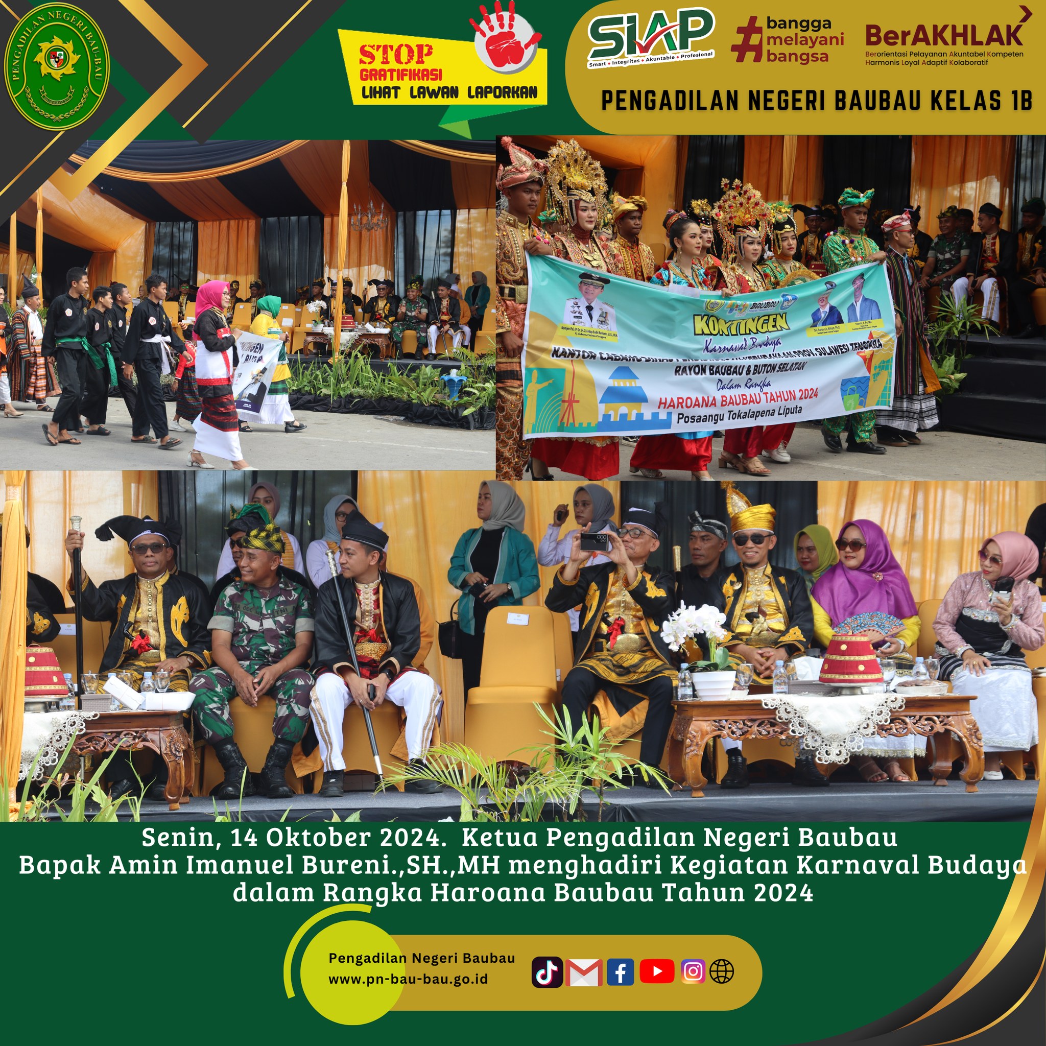 Senin, 14 Oktober 2024 Ketua Pengadilan Negeri Baubau Bapak Amin Imanuel Bureni.,SH.,MH menghadiri Kegiatan Karnaval Budaya dalam Rangka Haroana Baubau Tahun 2024