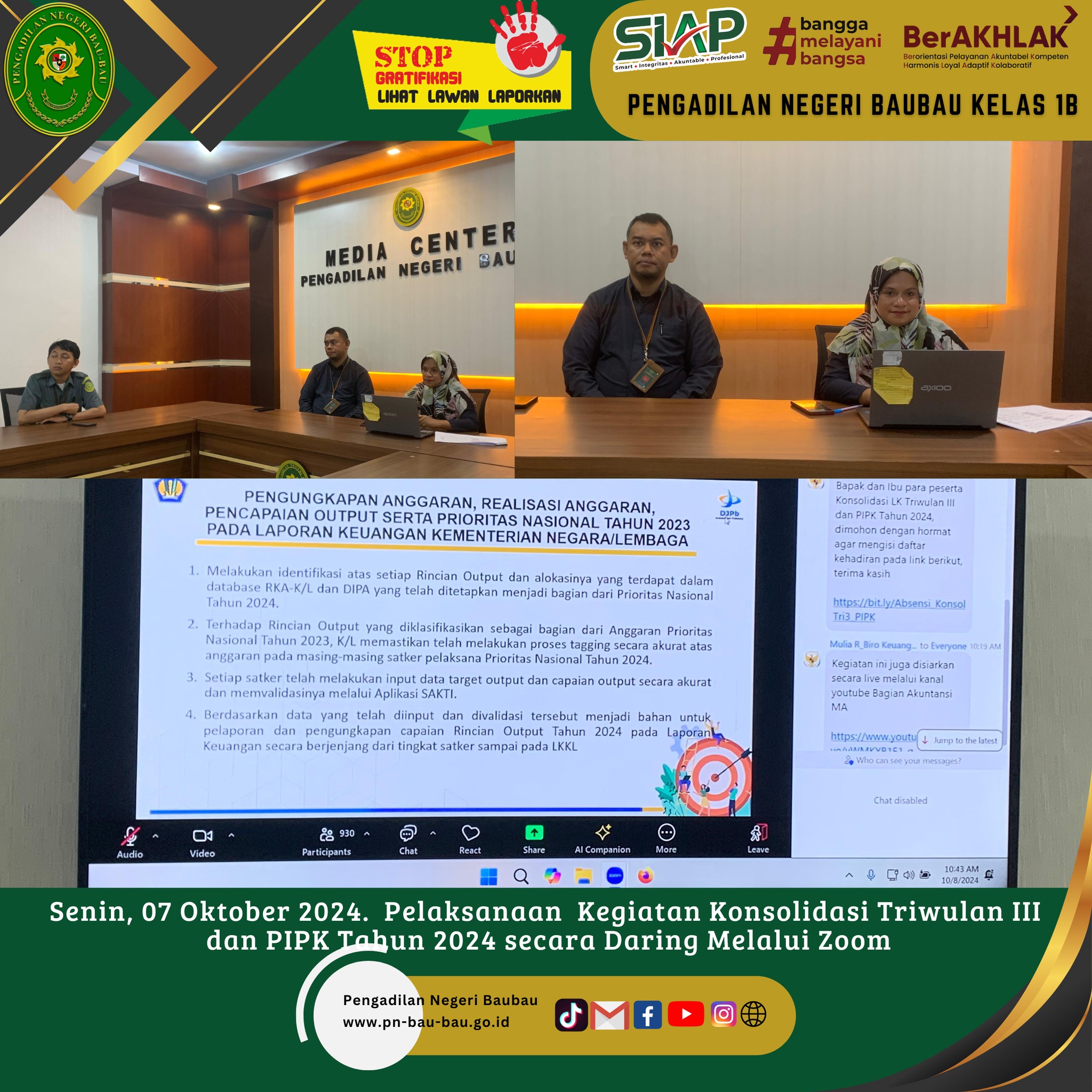 Briefing ditutup dengan mengumandangkan yel-yel Petugas PTSP Pengadilan Negeri Baubau.
