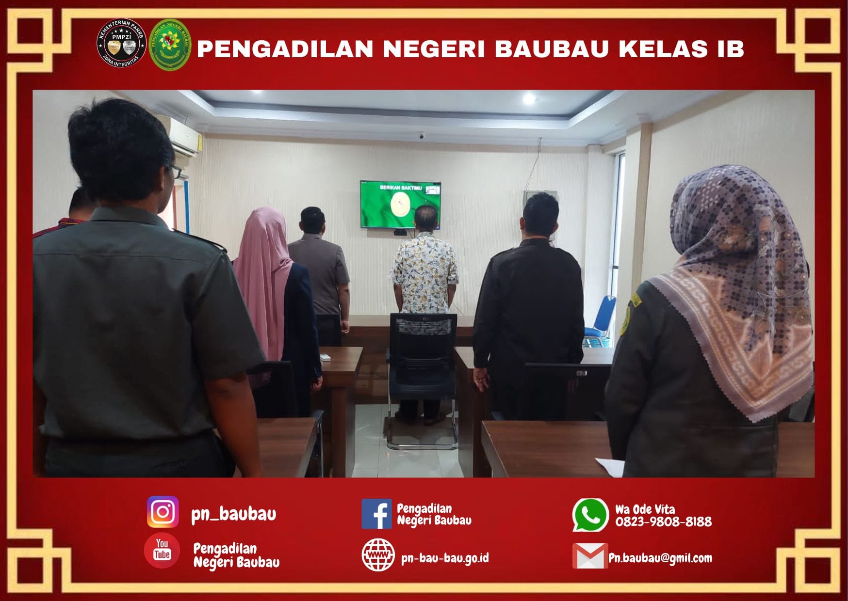 Breafing diakhiri dengan Mengumandangkan 8 (Delapan) Nilai Utama, Yel-Yel Mahkamah Agung RI dan Yel-yel Zona Integritas Pengadilan Negeri Baubau.