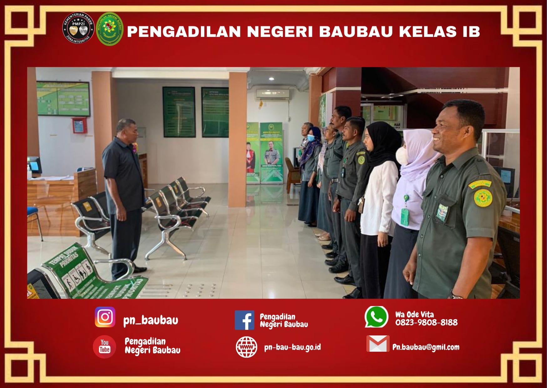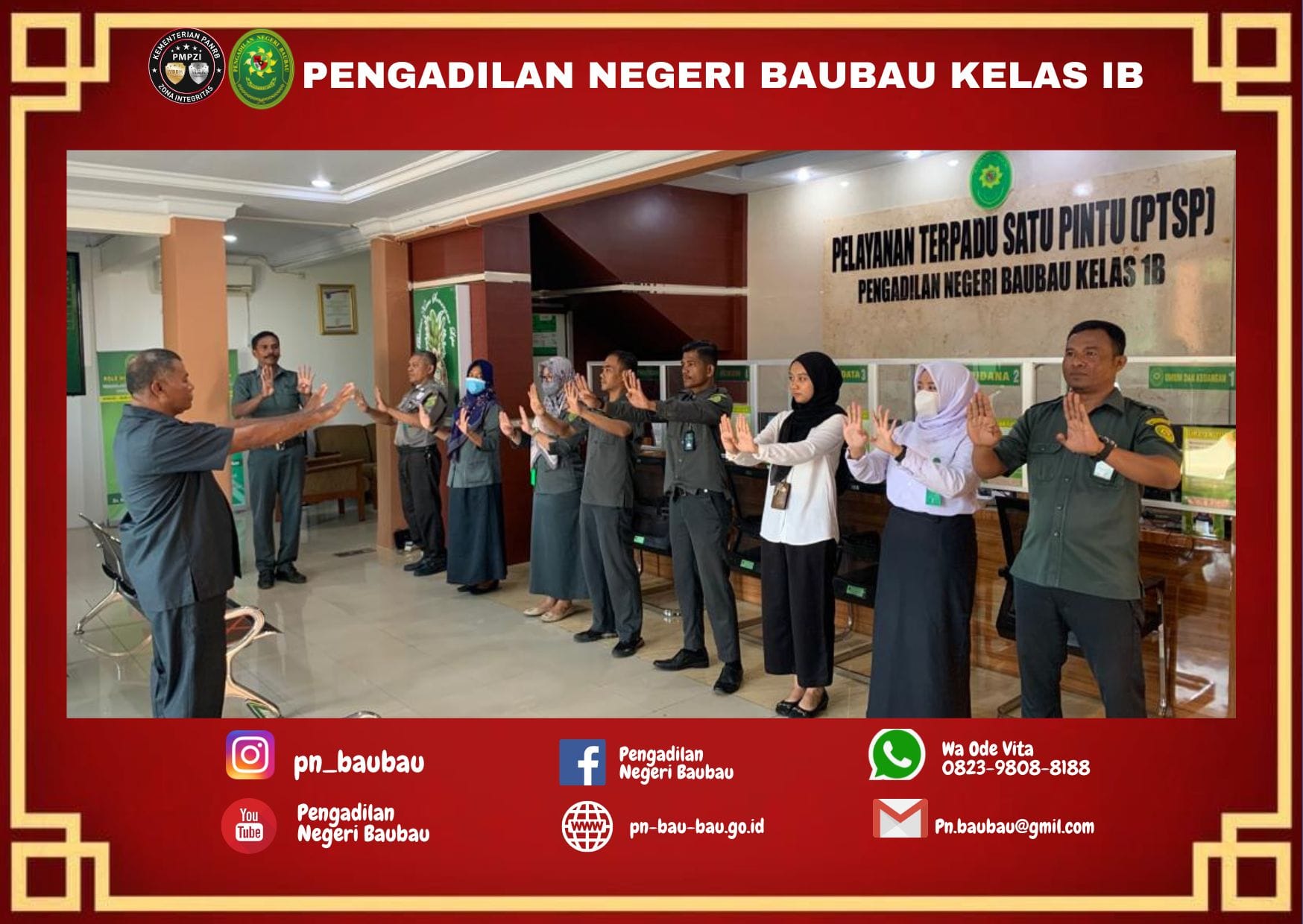 Briefing Pagi Bagi Petugas PTSP Oleh Panitera Muda Perdata Pengadilan Negeri Baubau.Kamis, 8 September 2022