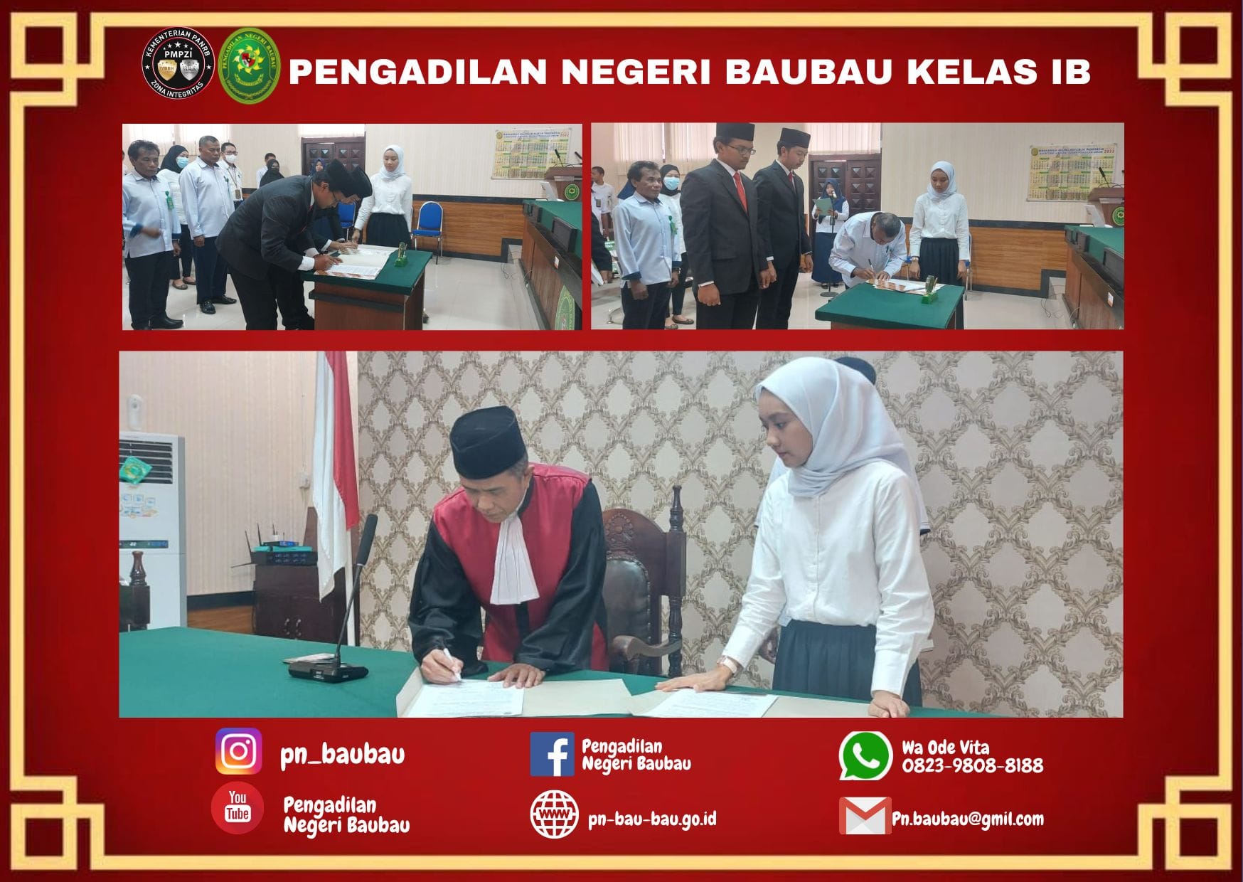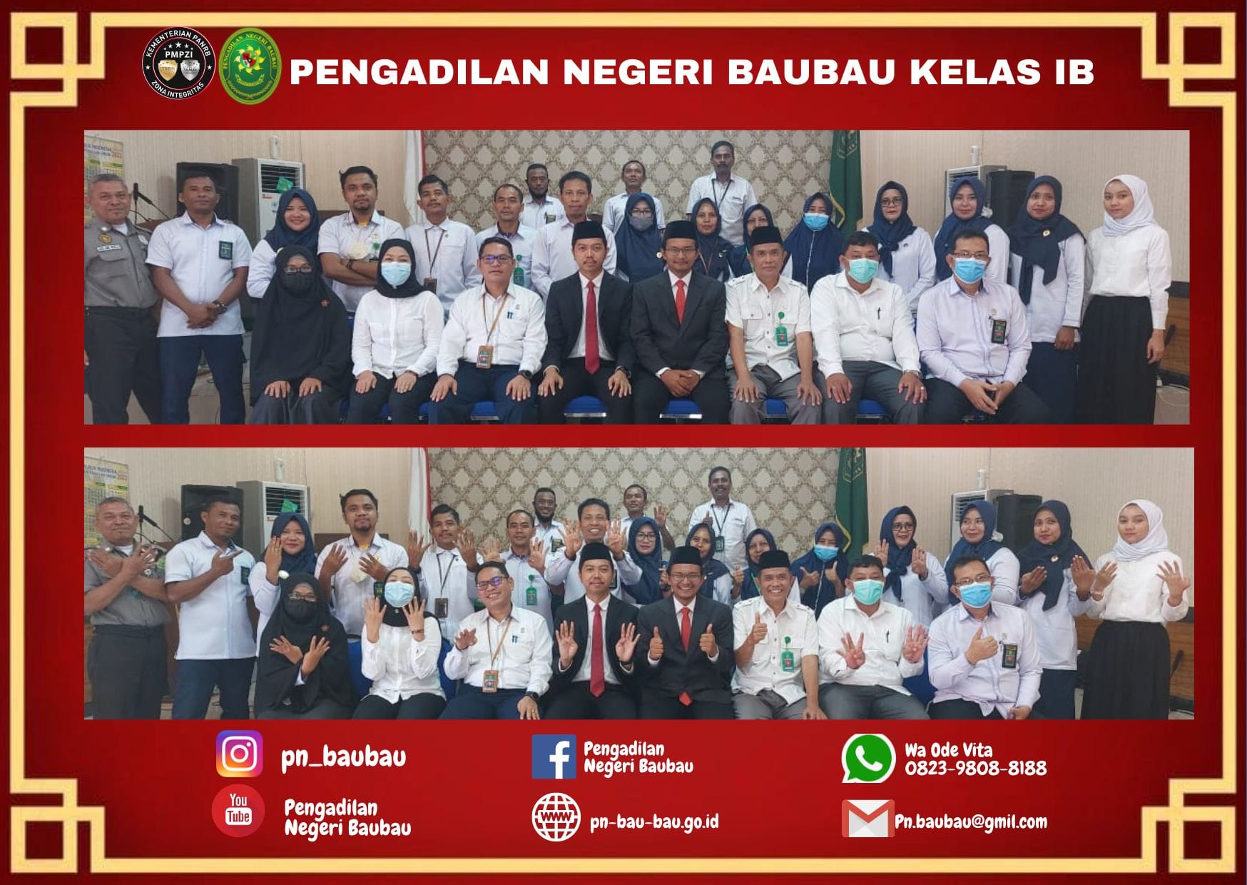 Bertempat di Ruang Sidang Utama Bapak Ketua Pengadilan Negeri Baubau Dr. Nur Kholis, S.H., M.H, melantik Pejabat Fungsional Bapak Achmad Mushthofa, S.Kom menjadi Pejabat Fungsional Pratama Komputer dan Widad Khalifi, A.Md., A.B menjadi Tenaga Fungsional Arsiparis. Pelantikan ini diikuti oleh Para Hakim, Para Panmud, Para Kasub, Pegawai, & PPNPN yang ad di Pengadilan Negeri Baubau.