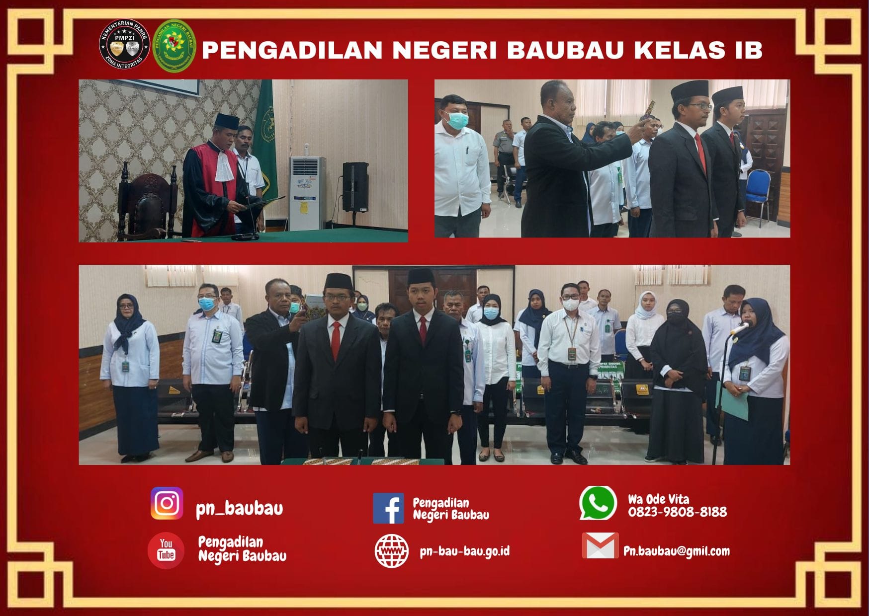Bapak Ketua Pengadilan Negeri Baubau Dr. Nur Kholis, S.H., M.H, melantik Pejabat Fungsional Bapak Achmad Mushthofa, S.Kom menjadi Pejabat Fungsional Pratama Komputer dan Widad Khalifi, A.Md., A.B menjadi Tenaga Fungsional Arsiparis