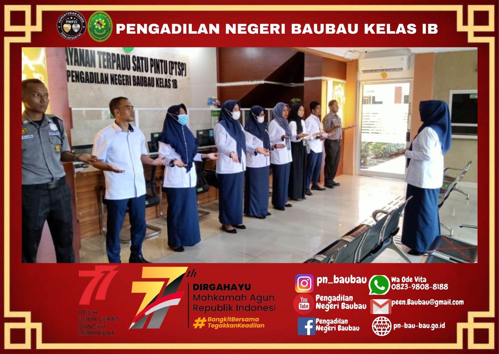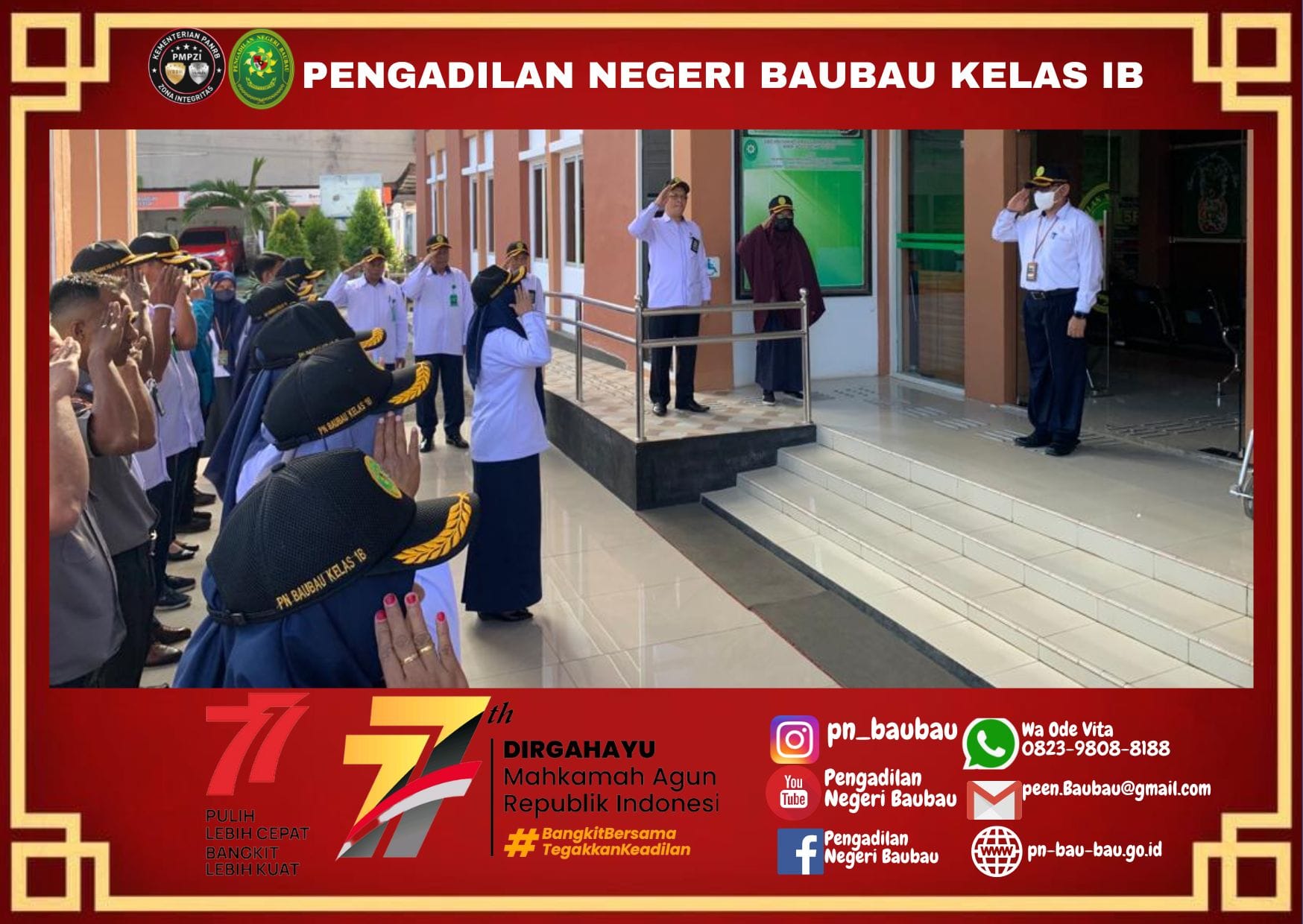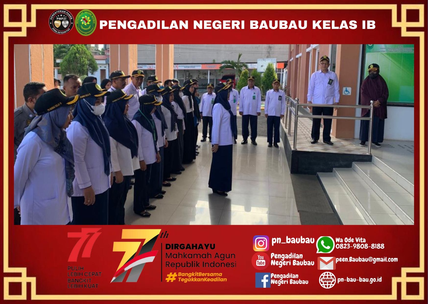 Breafing diakhiri dengan Mengumandangkan 8 (Delapan) Nilai Utama, Yel-Yel Mahkamah Agung RI dan Yel-yel Zona Integritas Pengadilan Negeri Baubau.
