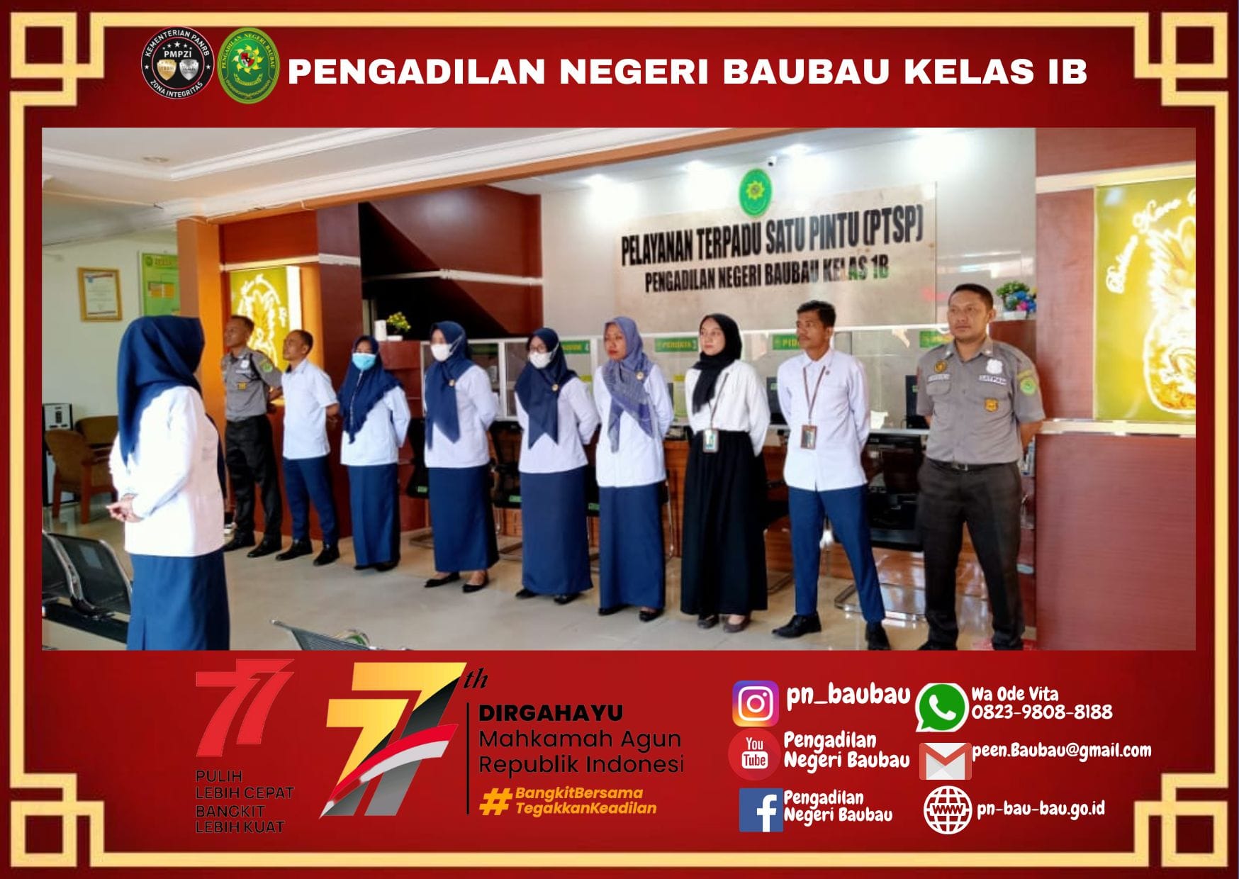 Briefing Pagi Bagi Petugas PTSP Oleh Kasub. Umum & Keuangan Pengadilan Negeri Baubau.Kamis, 29 September 2022