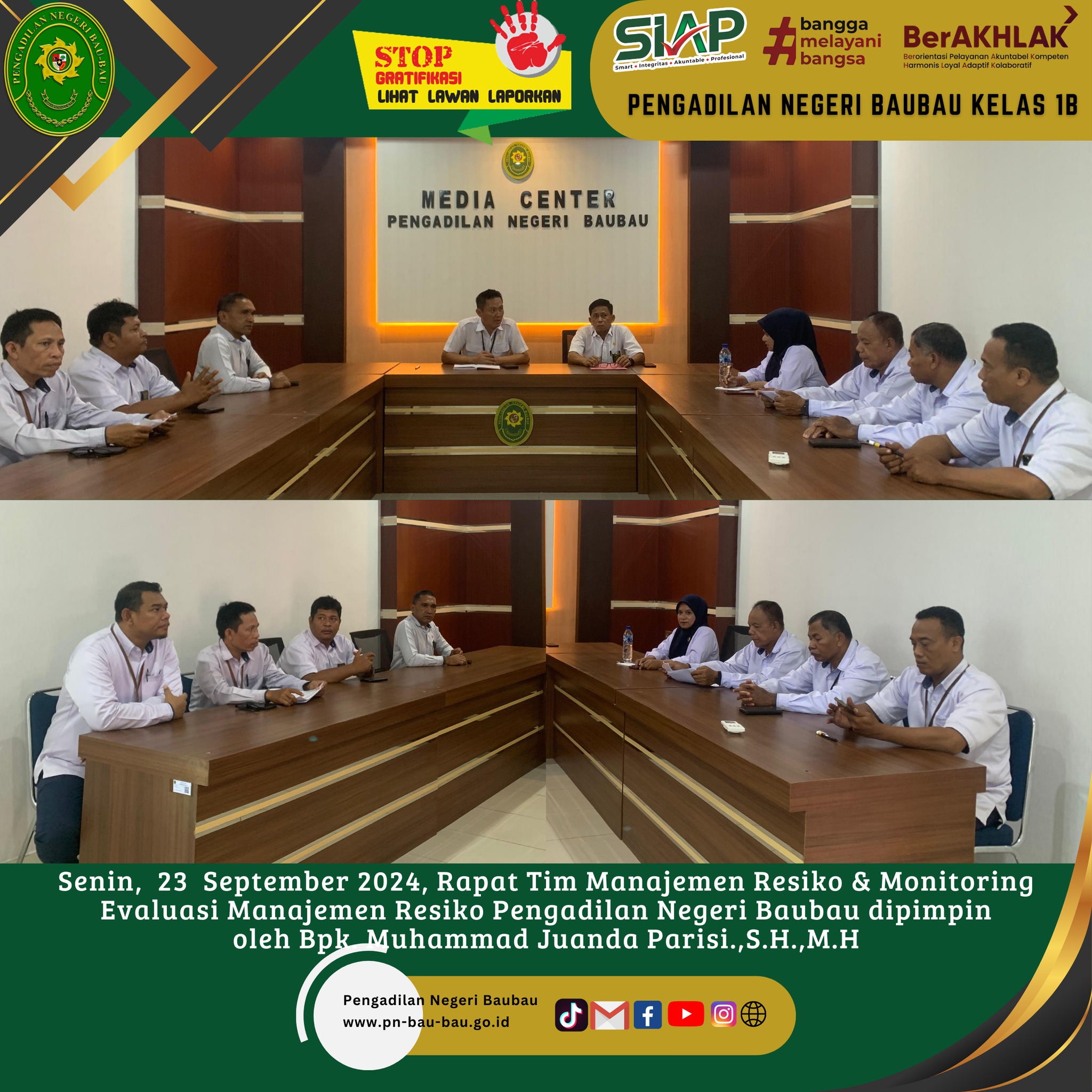 Rapat Tim Monitoring dan Evaluasi Manajemen Resiko dipimpin oleh Bapak Muhammad Juanda Parisi.,S.H.,M.H bertempat di Ruang Media Center.