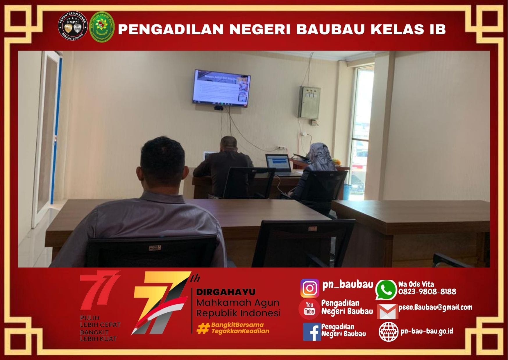 Bertempat di Ruang Pelayanan Terpadu Satu Pintu (PTSP) Pengadilan Negeri Baubau, pagi ini telah diadakan “Briefing Pagi” kepada petugas PTSP. Tim Supervisi hari ini dilaksanakan oleh Panmud Pidana, Bapak Zaminu, S.H.