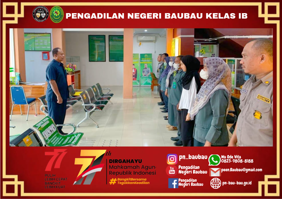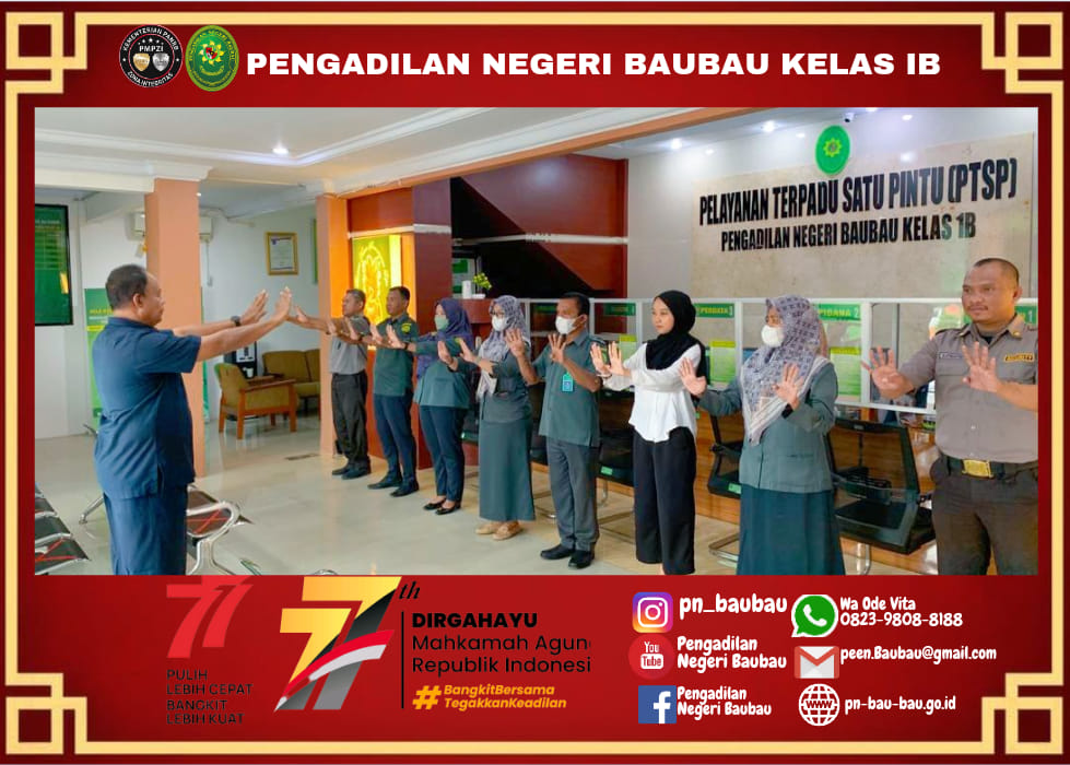 Briefing Pagi Bagi Petugas PTSP Oleh Panitera Muda Pidana Pengadilan Negeri Baubau.Rabu, 24 Agustus 2022