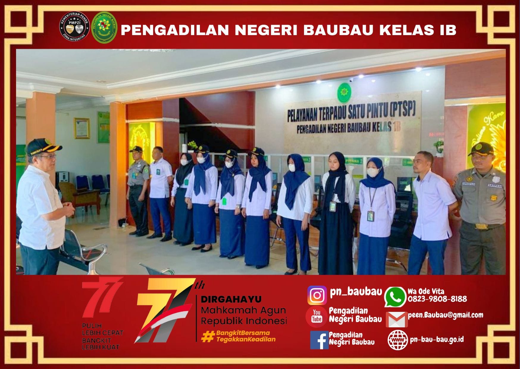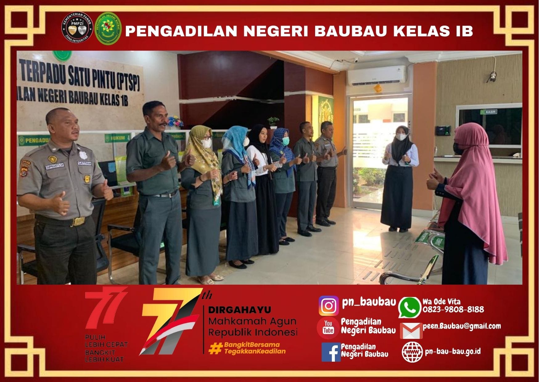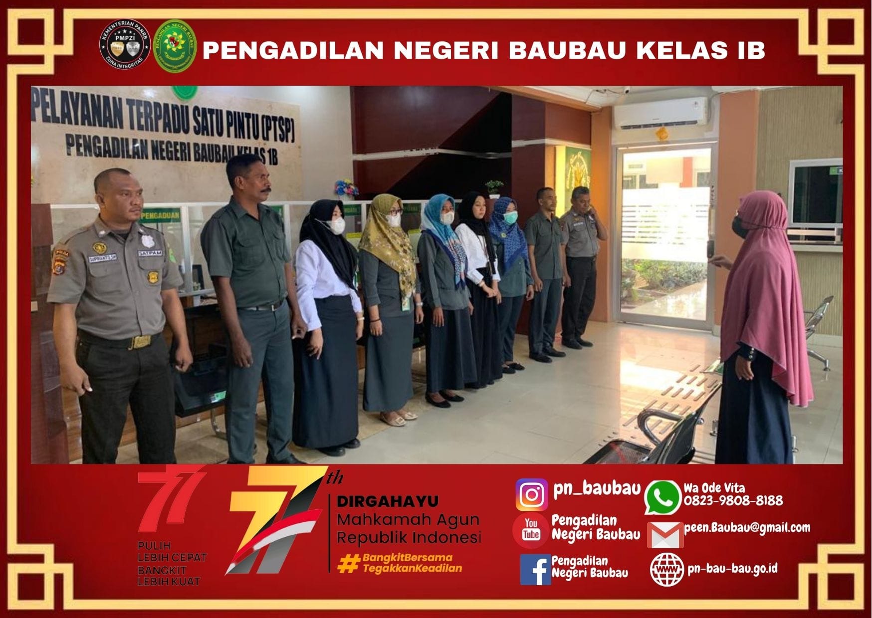 Briefing Pagi Bagi Petugas PTSP oleh Sekretaris Pengadilan Negeri Baubau, Selasa, 23 Agustus 2022
