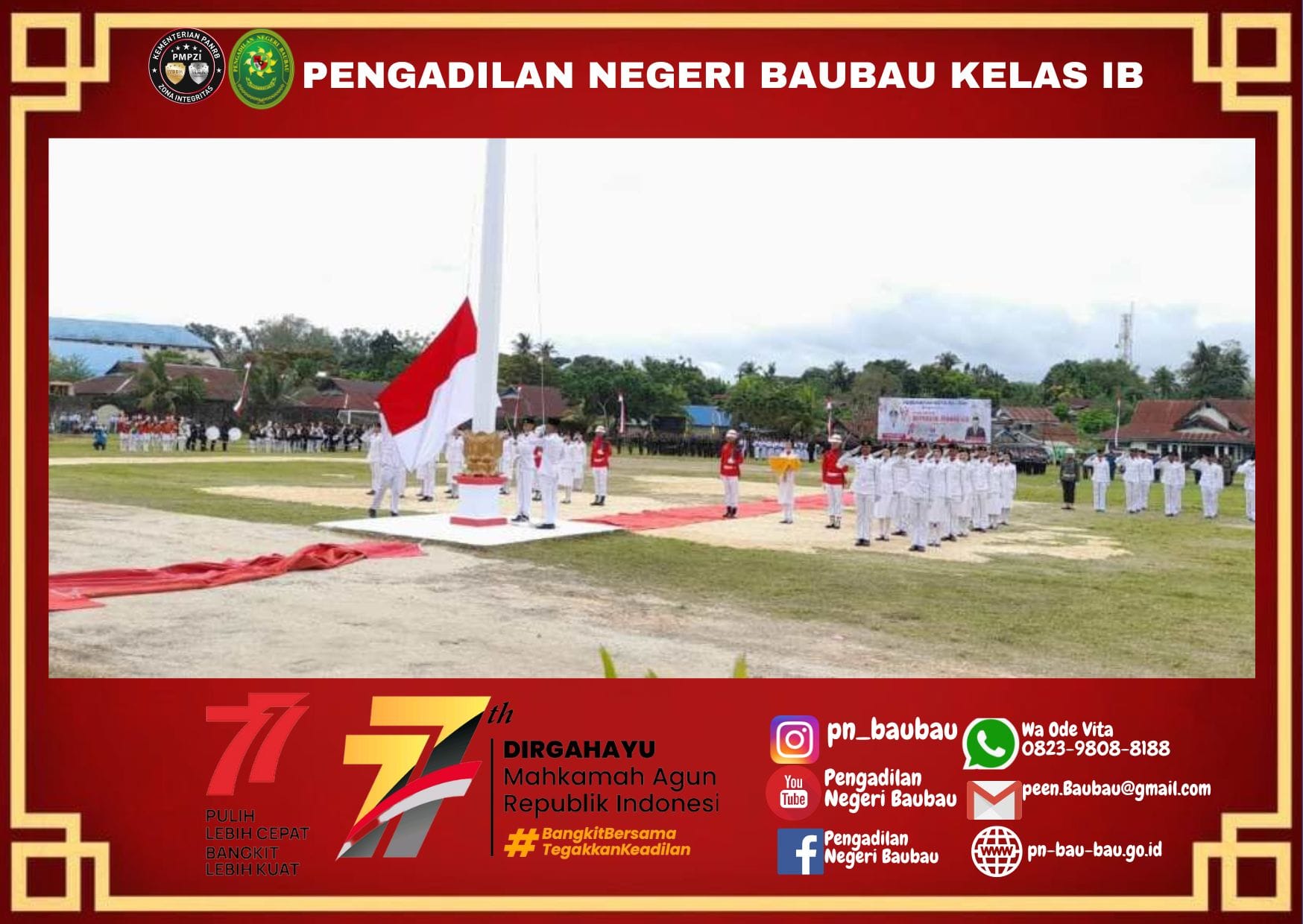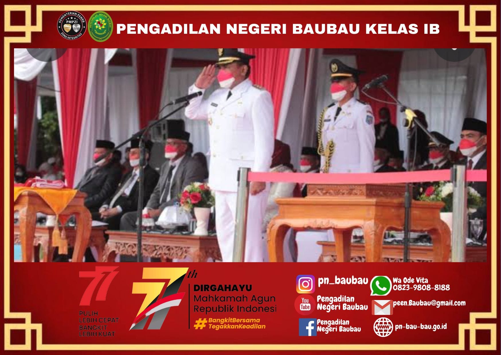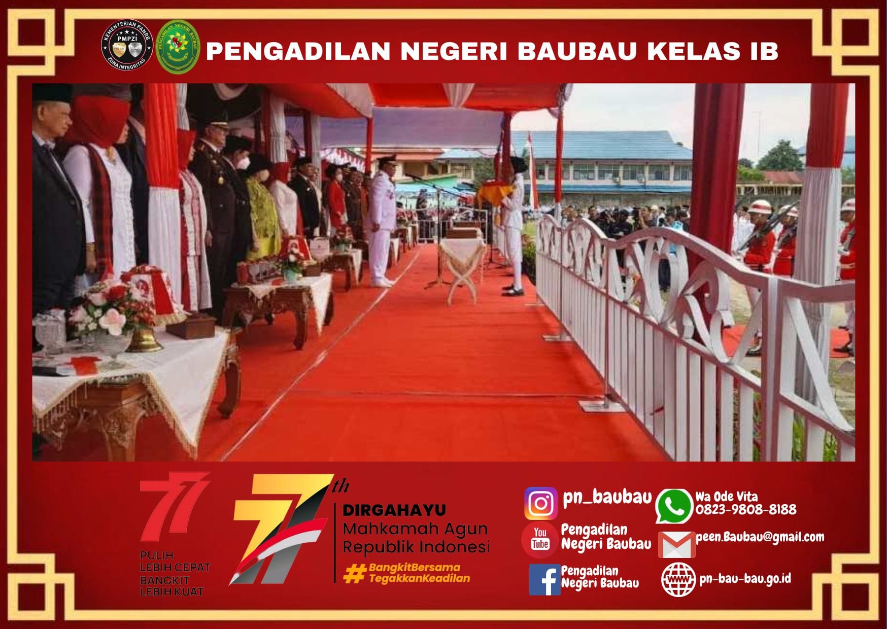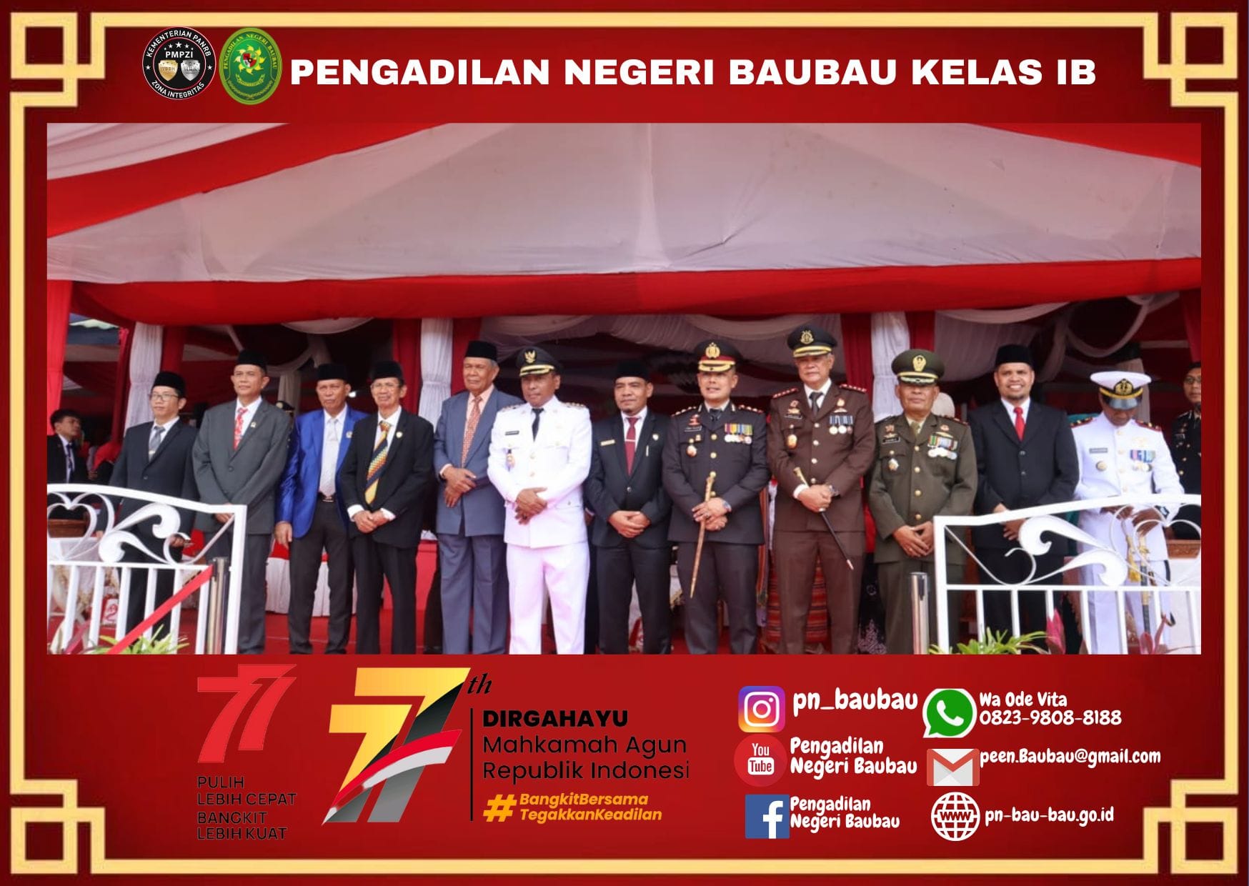 Ketua Pengadilan Negeri Baubau Bapak Dr. Nur Kholis, S.H., M.H. Menghadiri Upacara Peringatan HUT RI Ke-77 bertempat dilapangan Lembah Hijau, Kota Baubau