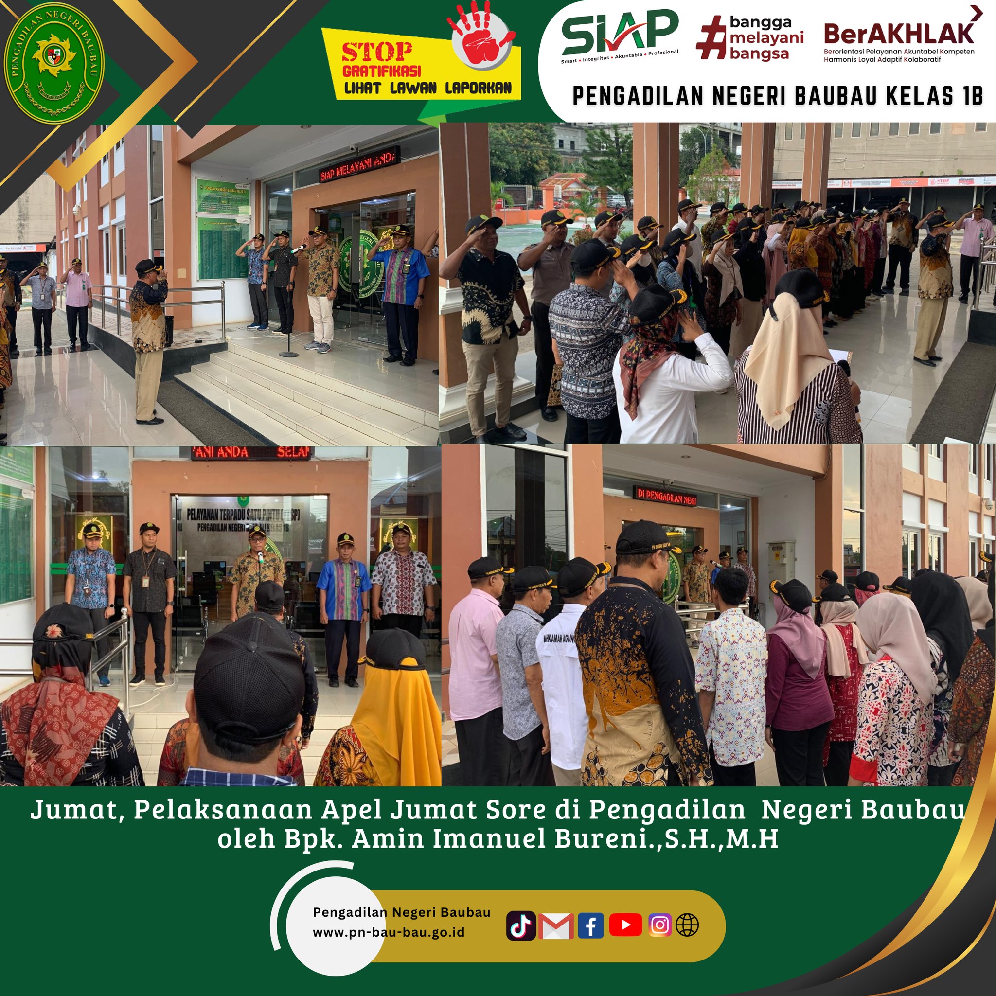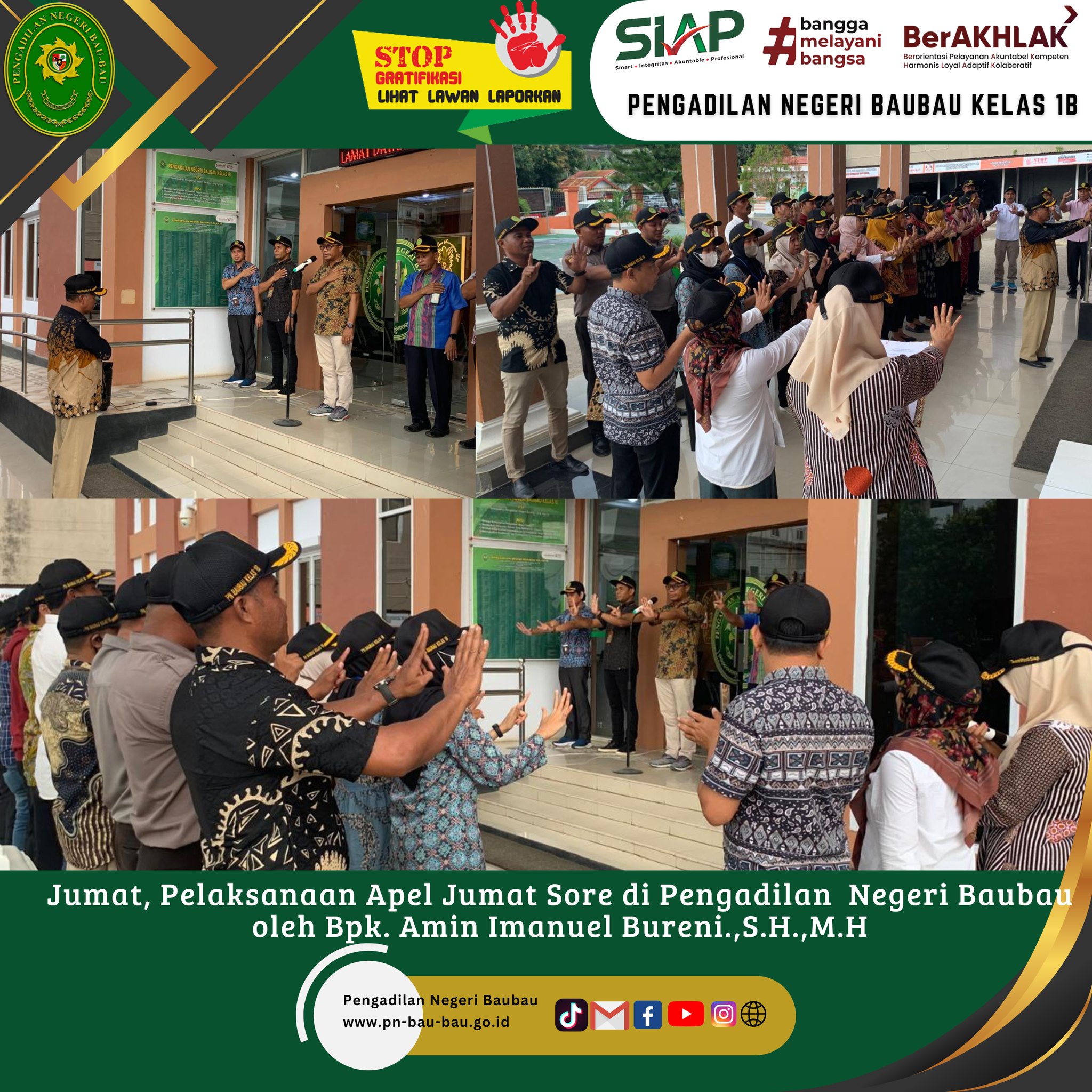 Rapat diakhiri dengan mengumandangkan 7 (Tujuh) Nilai Utama Mahkamah Agung RI, Yel-yel Mahkamah Agung RI, dan Yel-yel Pengadilan Negeri Baubau Kelas IB.
