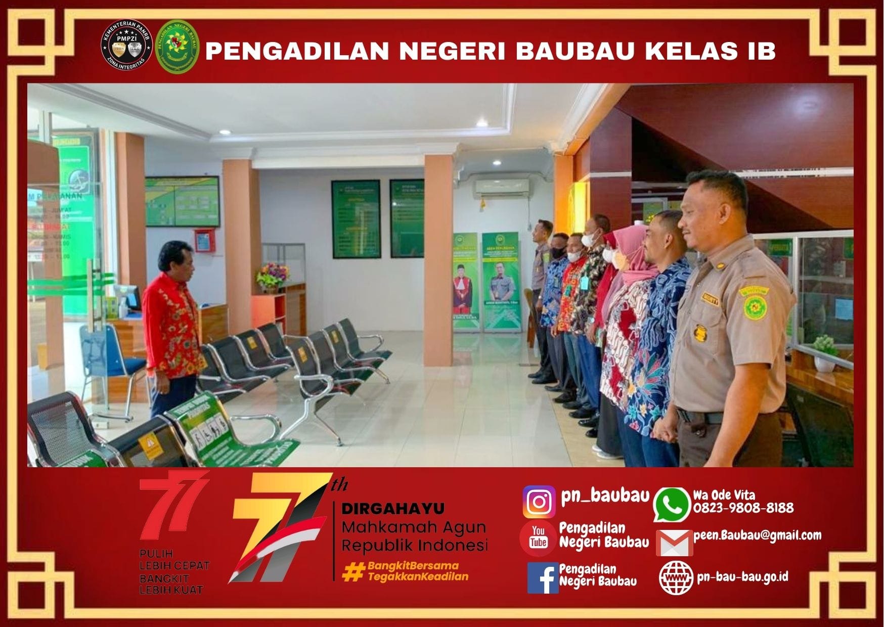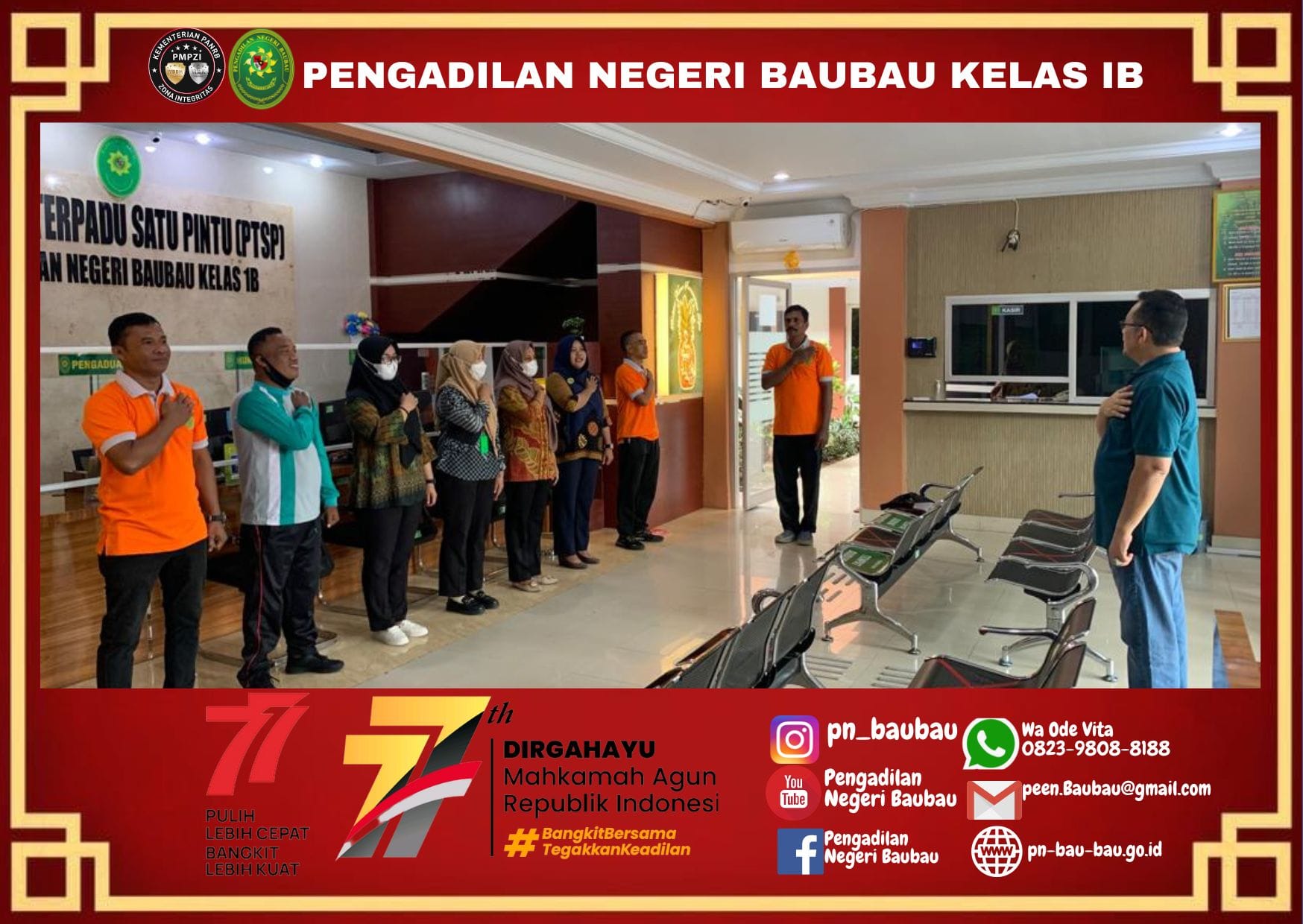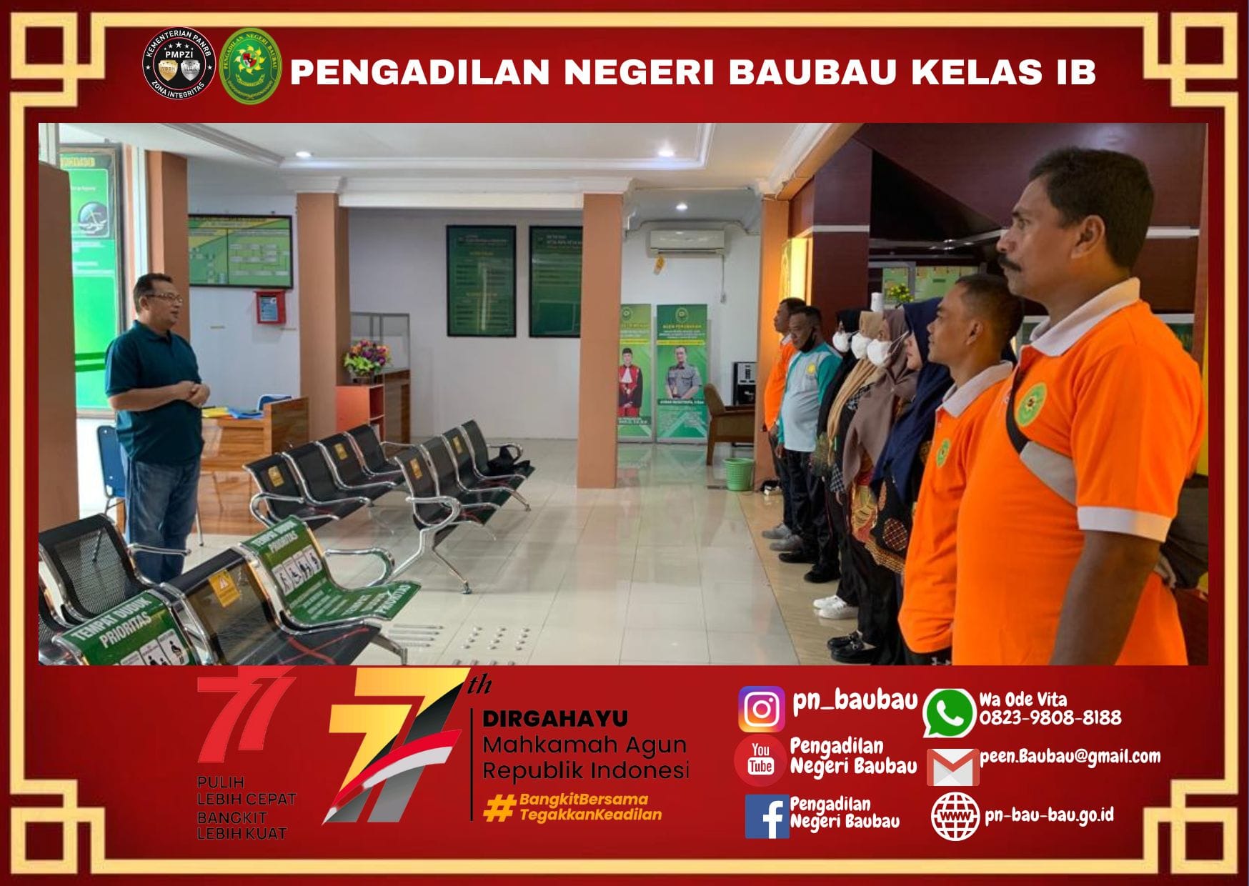 Briefing Pagi Bagi Petugas PTSP Oleh Panitera Pengadilan Negeri Baubau.Jumat, 12 Agustus 2022