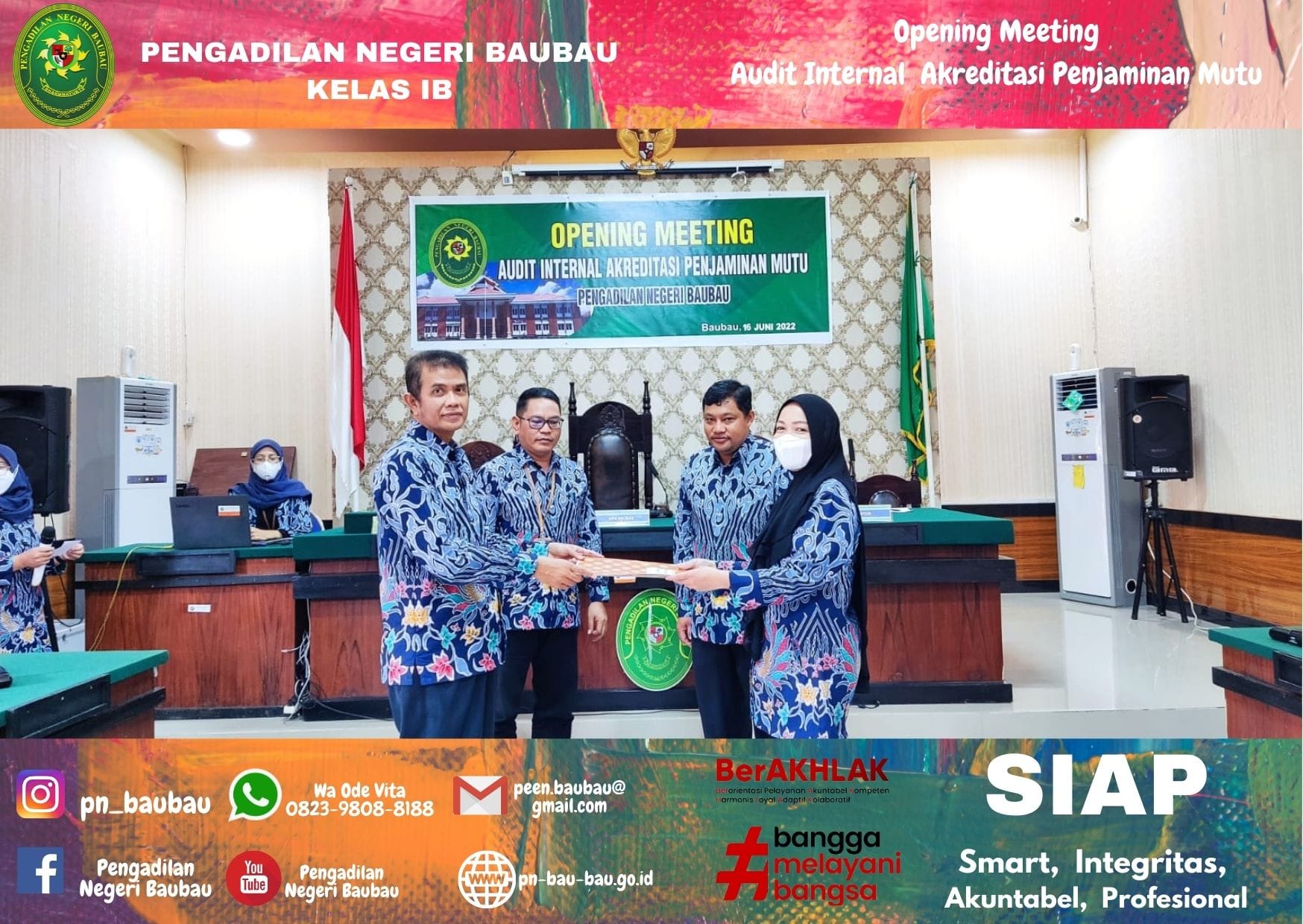 Di halaman depan kantor Pengadilan, Pimpinan dan Warga Pengadilan melakukan kegiatan rutin Senam pagi bersama. kegiatan senam pagi ini merupakan budaya kerja yang bermanfaat untuk meningkatkan kesehatan dan kebugaran tubuh serta untuk menumbuhkan rasa kebersamaan dan kekompakan.