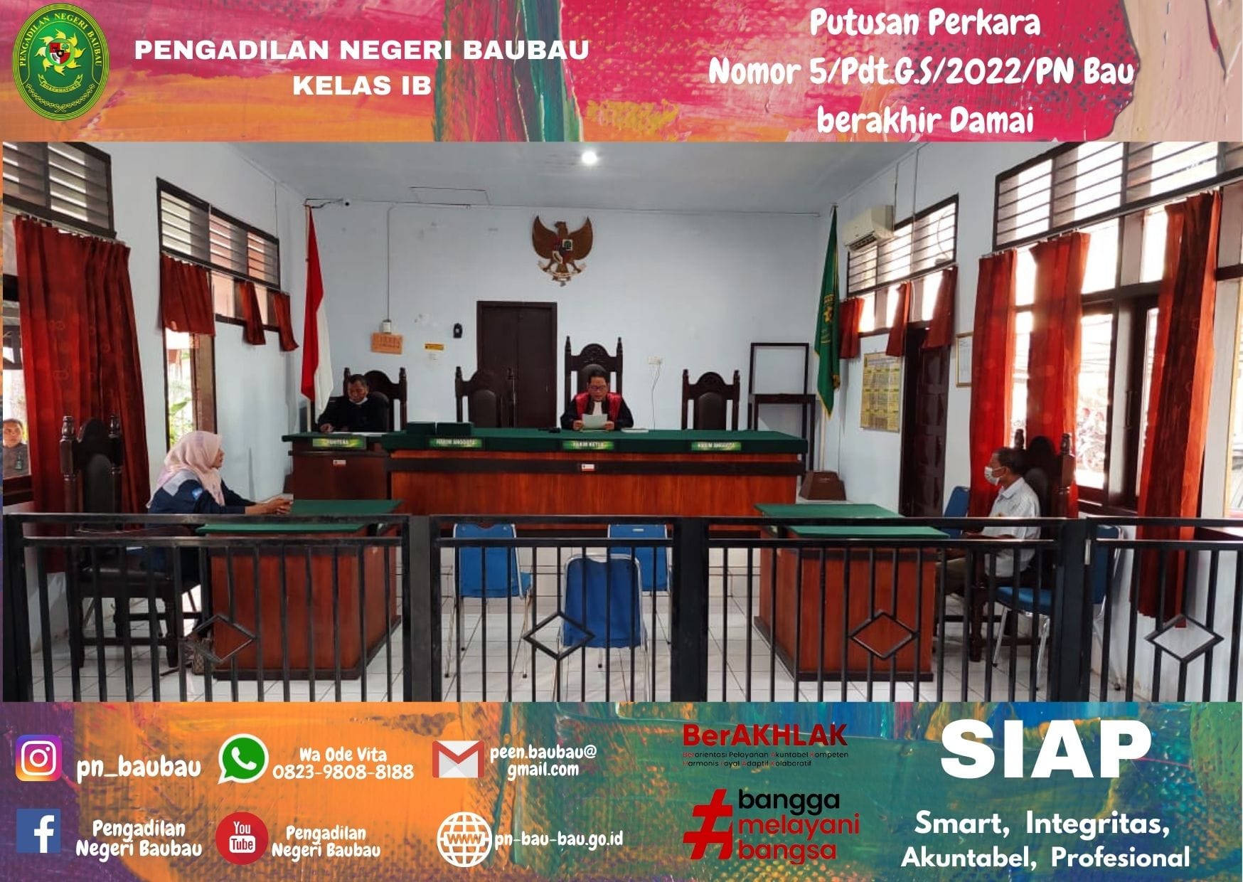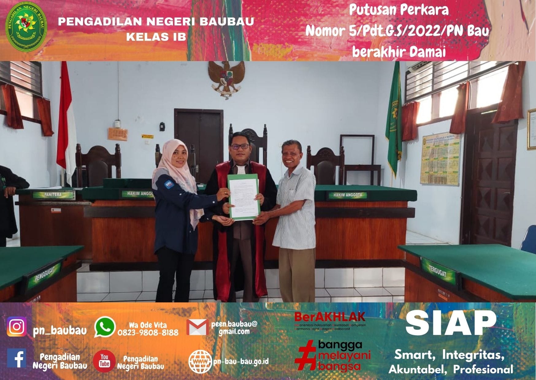 Perkara Gugatan sederhana Nomor 5/Pdt.G.S/2022/PN Baubau berakhir Damai
