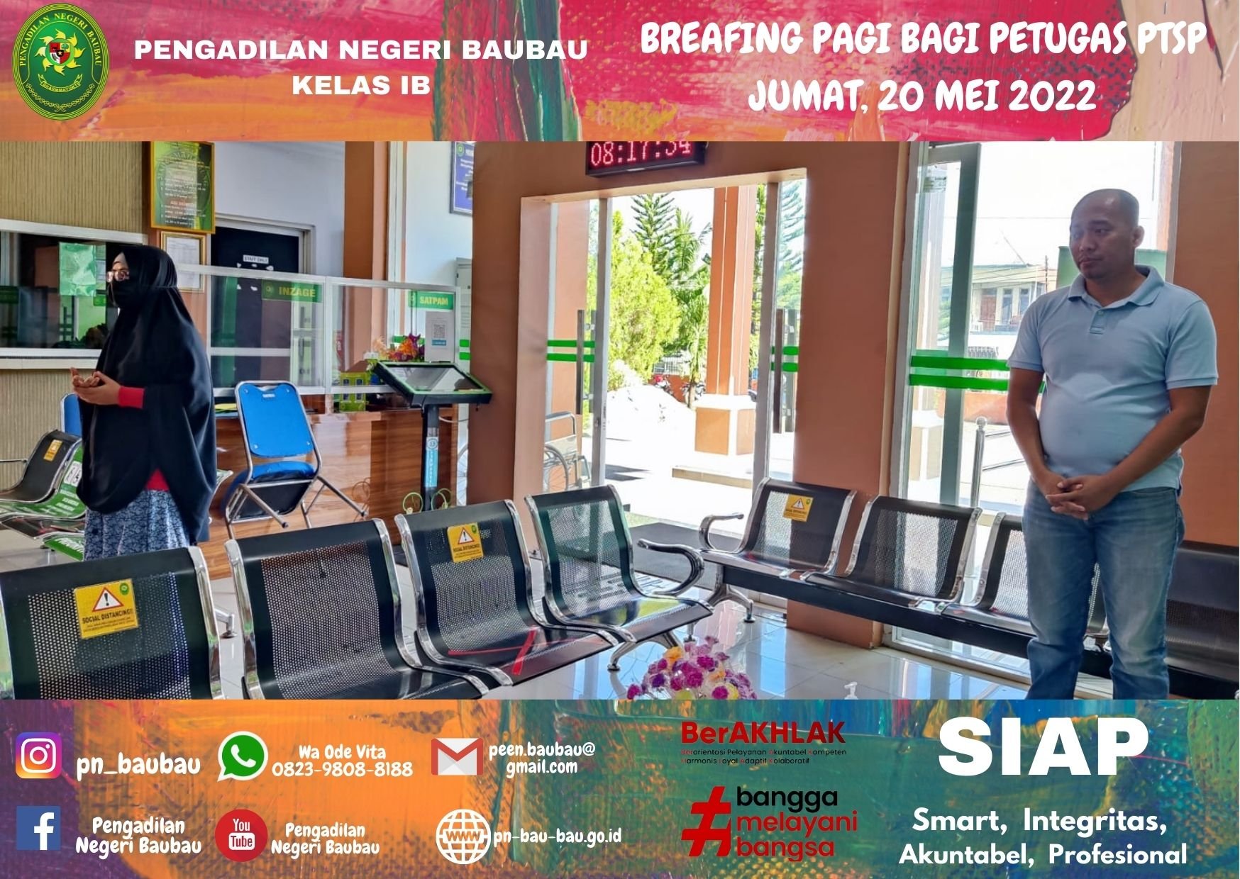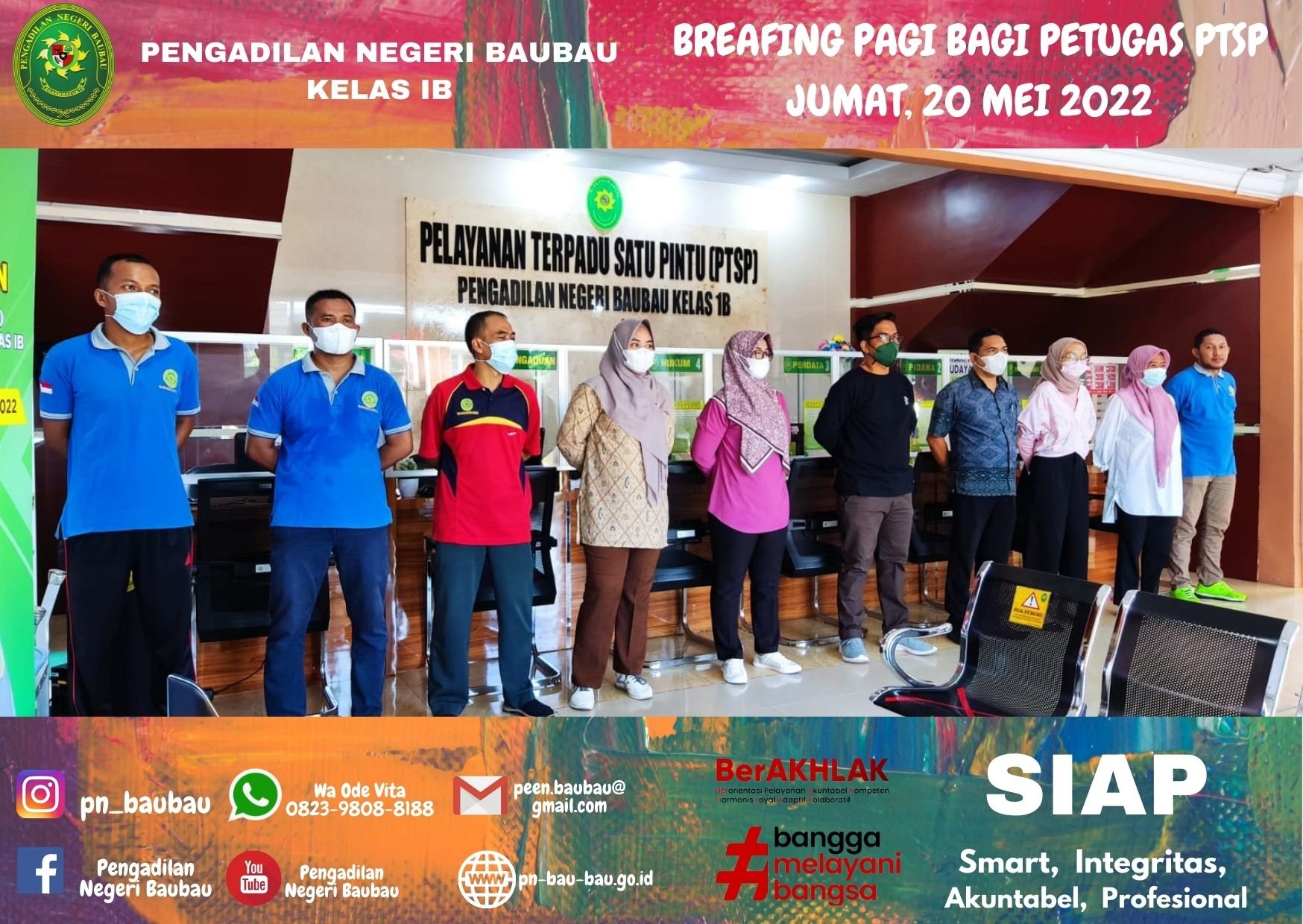 BRIEFING PAGI BAGI PETUGAS PTSP OLEH SEKRETARIS PENGADILAN NEGERI BAUBAU.