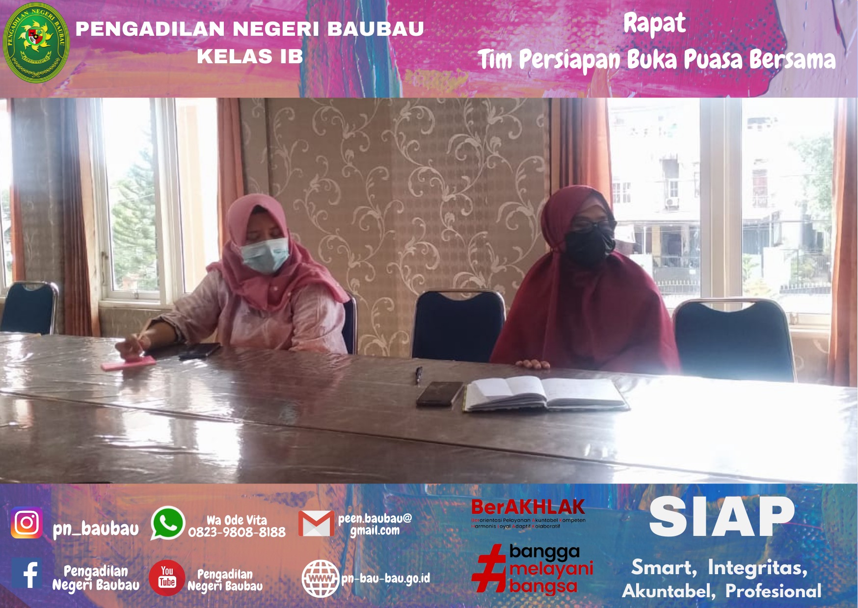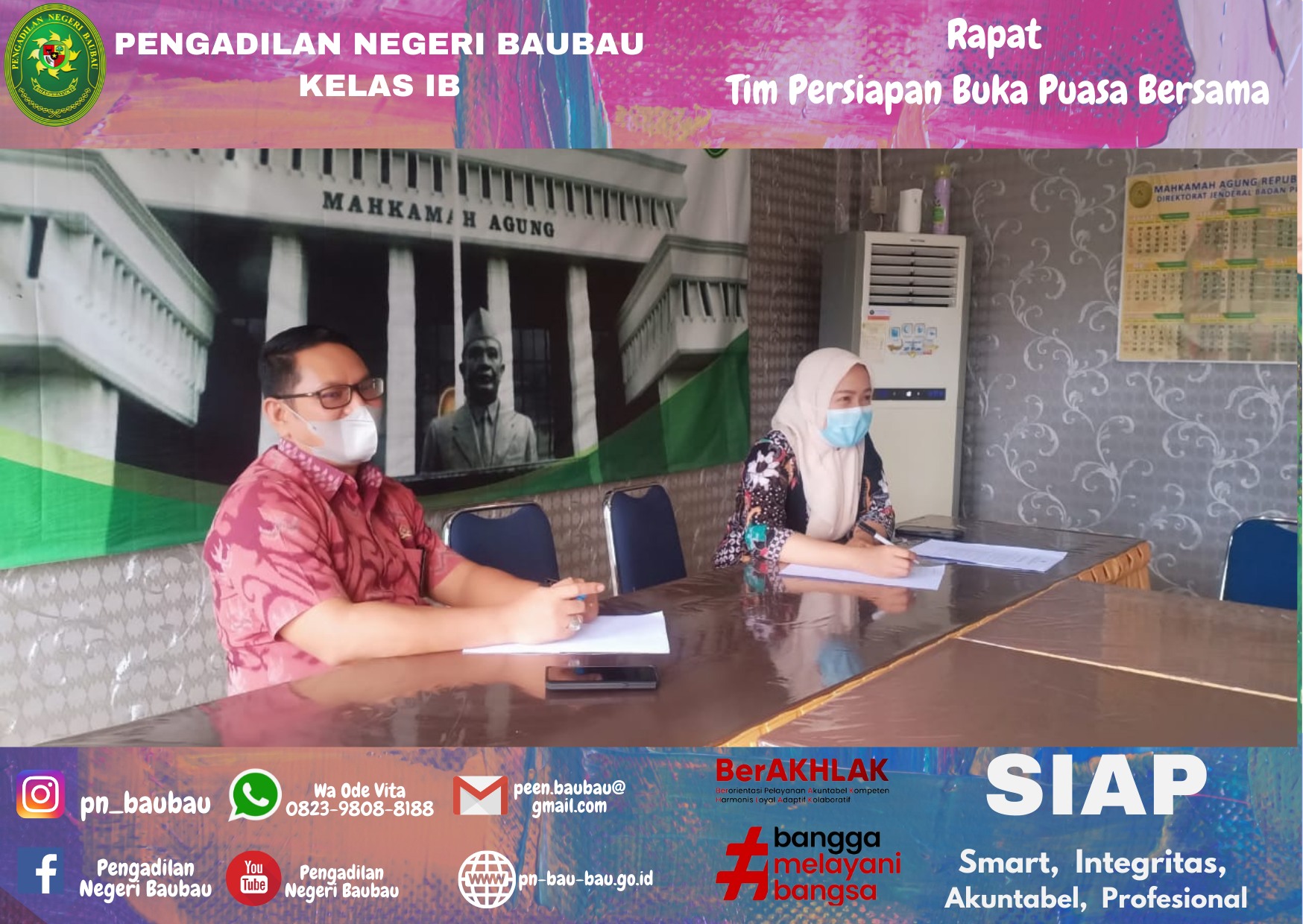 Pengadilan Negeri Baubau melaksanakan Rapat Persiapan Buka Puasa Bersama yang rencananya Insyaallah akan dilaksanakan pada Hari Senin, 11 April 2022.