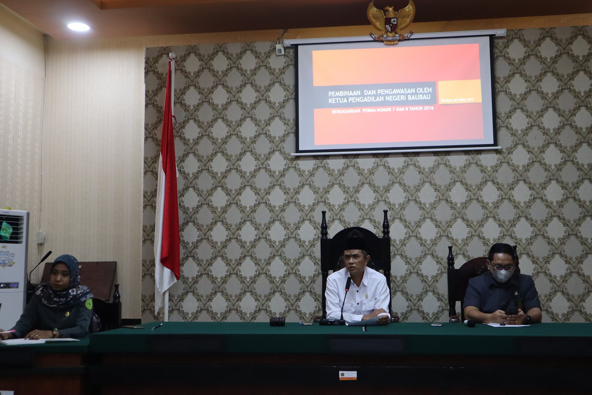 Bertempat di Ruang Sidang Utama, Pengadilan Negeri Baubau menyelenggarakan Rapat Bulanan, Pembinaan, dan Pengawasan bulan April Tahun 2022.