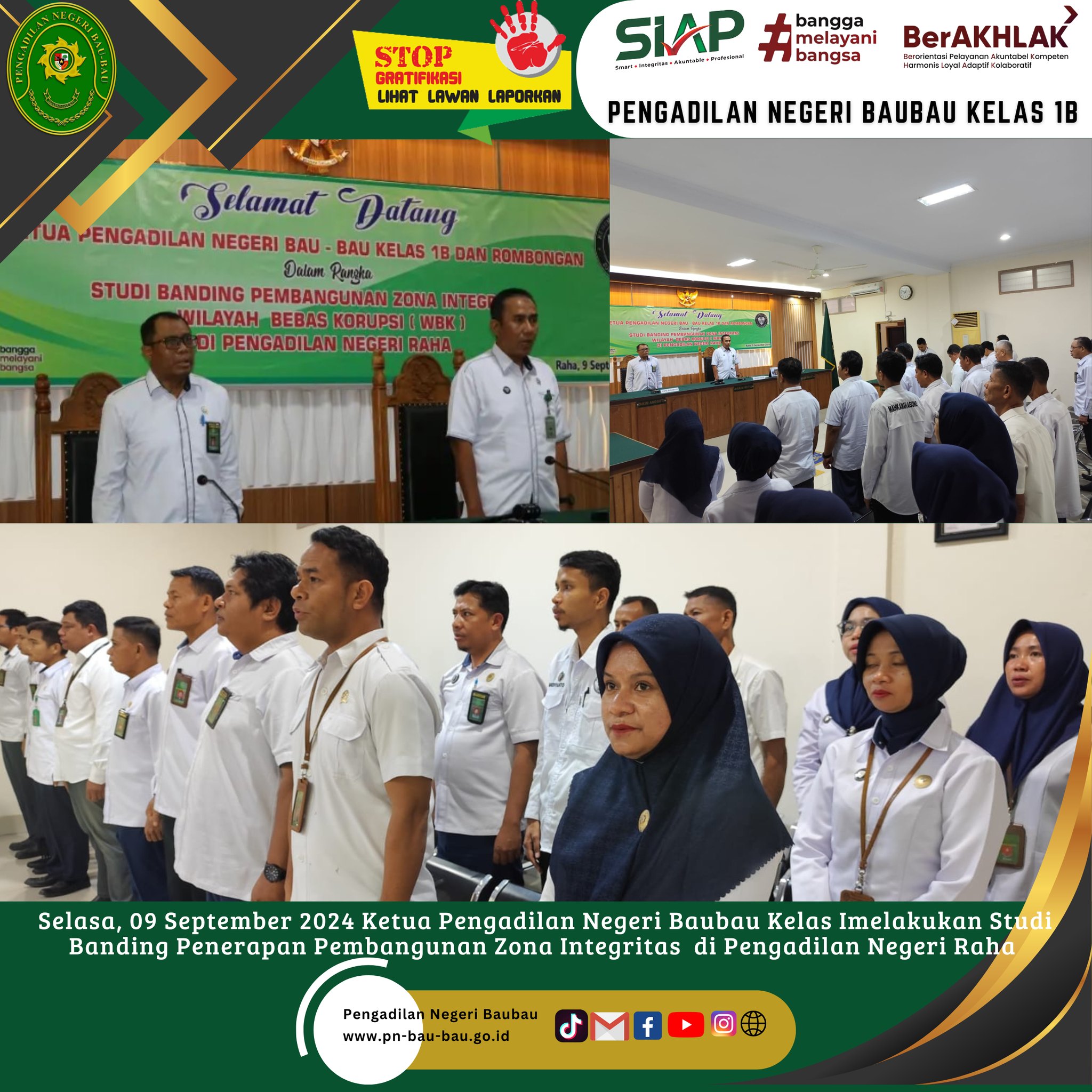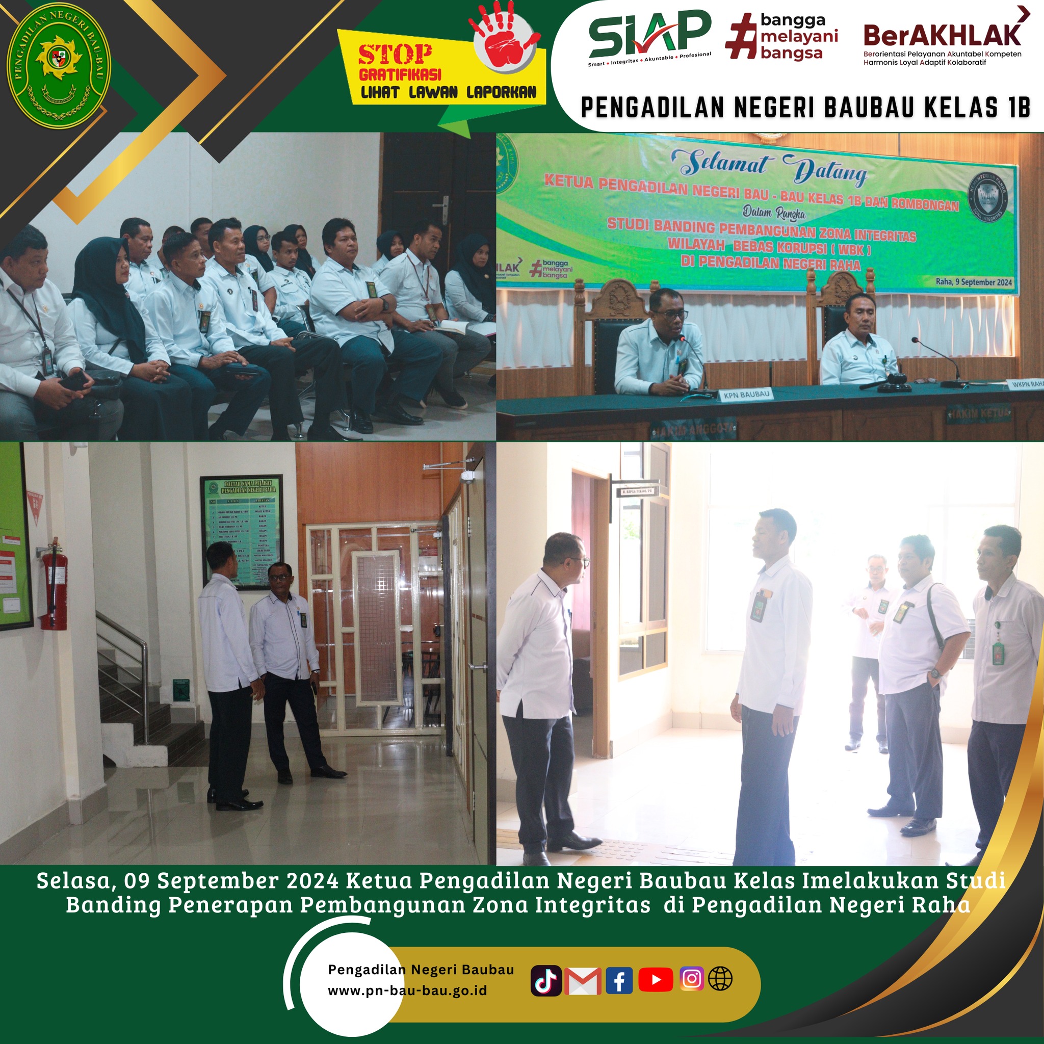 Pengadilan Negeri Baubau Kelas IB melakukan kunjungan Studi Banding ke Pengadilan Negeri Raha terkait Pembangunan Zona Integritas