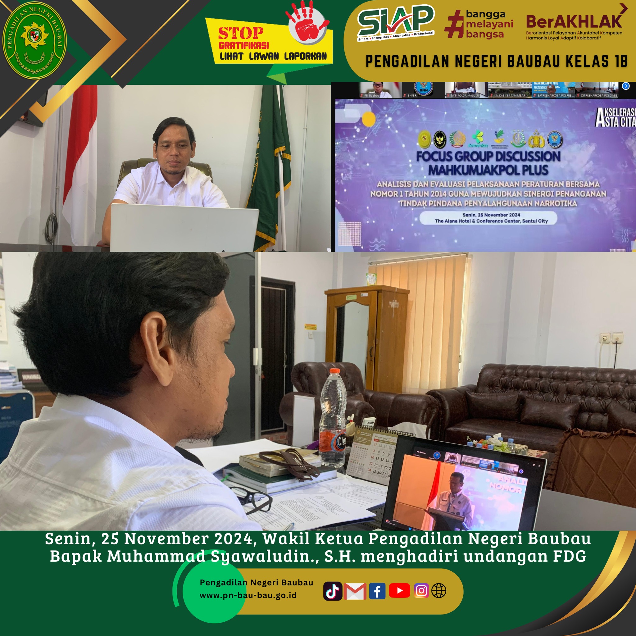 Senin, 25 November 2024, WKPN Baubau Bapak Muhammad Syawaludin., S.H. menghadiri undangan Focus Group Discussion (FGD) MAHKUMJAKPOLPLUS