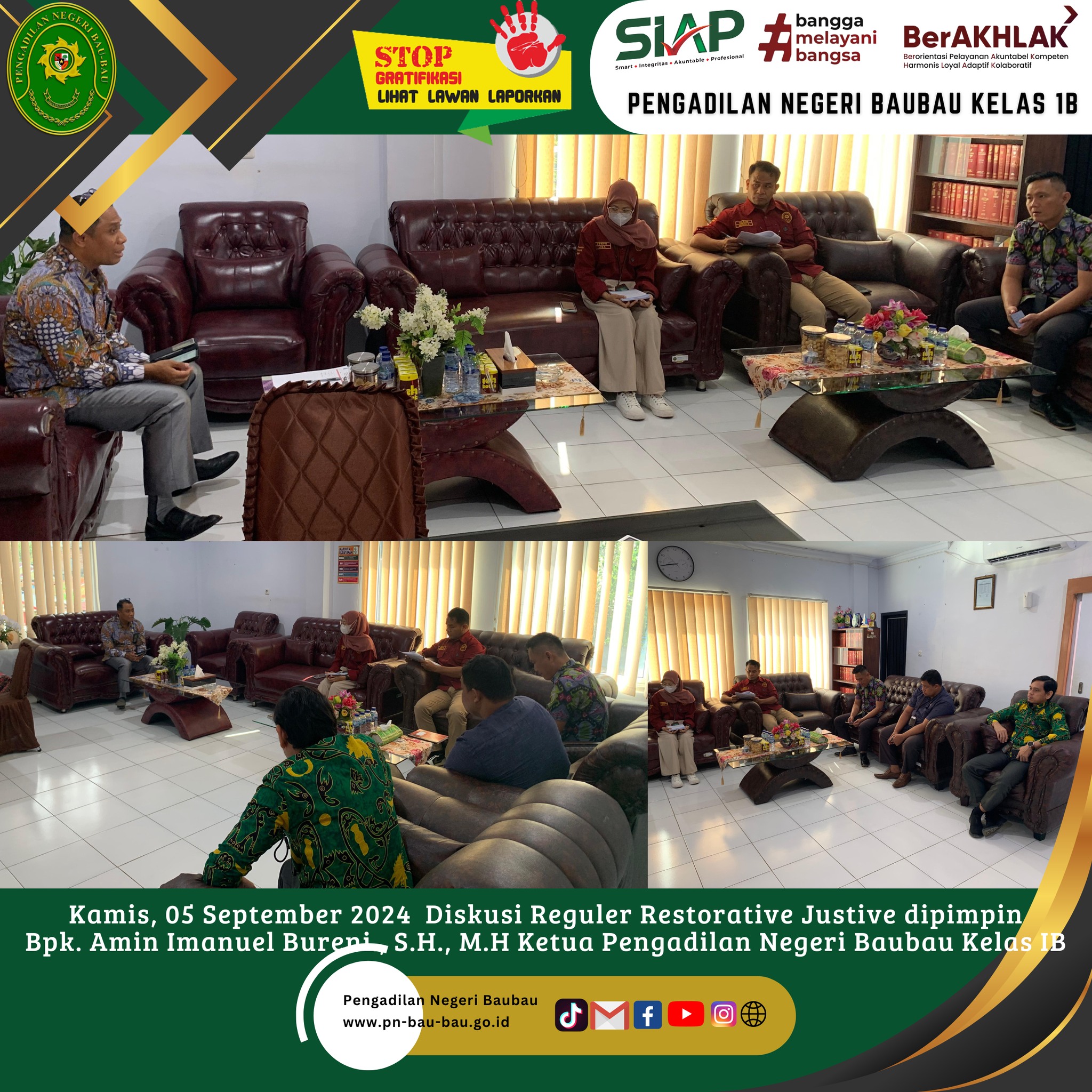 Bpk, Muhammad Syawaludin, S.H., selaku Wakil Ketua Pengadilan Negeri Baubau kelas IB mengikuti Kegiatan Peresmian Gedung Pengadilan secara Daring yang dilaksanakan pada Pukul 14,00 Wita sampai selesai.