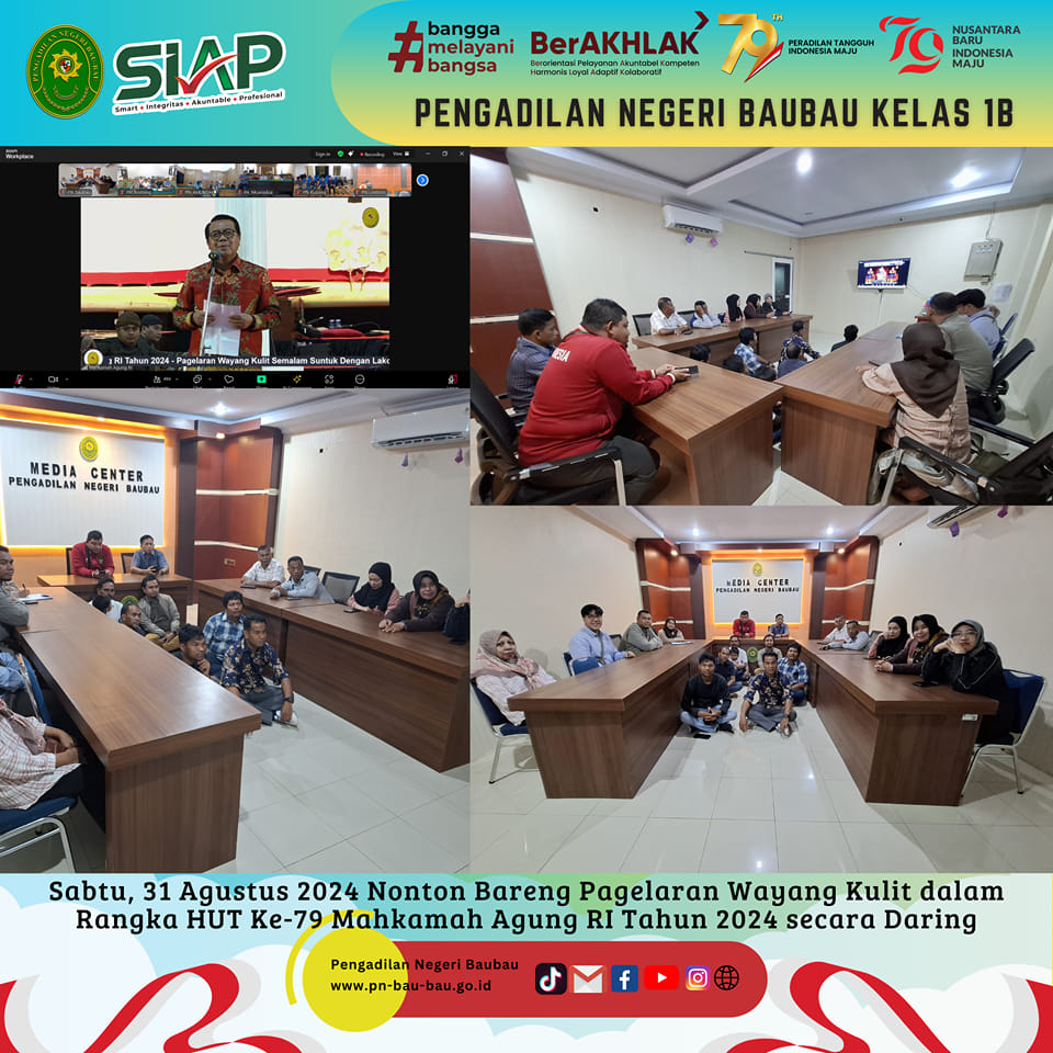 Pelaksanaan Apel Senin Pagi yang dipimpin langsung oleh YM. Bapak Muhammad Syawaludin, S.H., Selaku Wakil Ketua Pengadilan Negeri Baubau Kelas IB. Apel Senin Pagi ditutup dengan mengumandangkan 7 (Tujuh) Nilai Utama Mahkamah Agung RI, dan Yel-yel Mahkamah Agung RI.