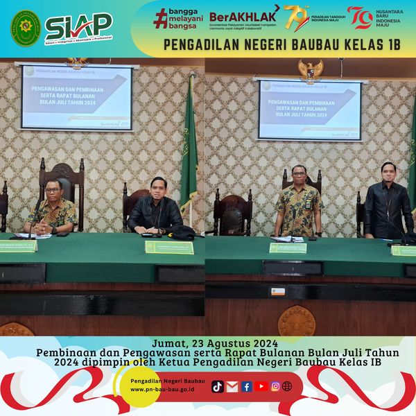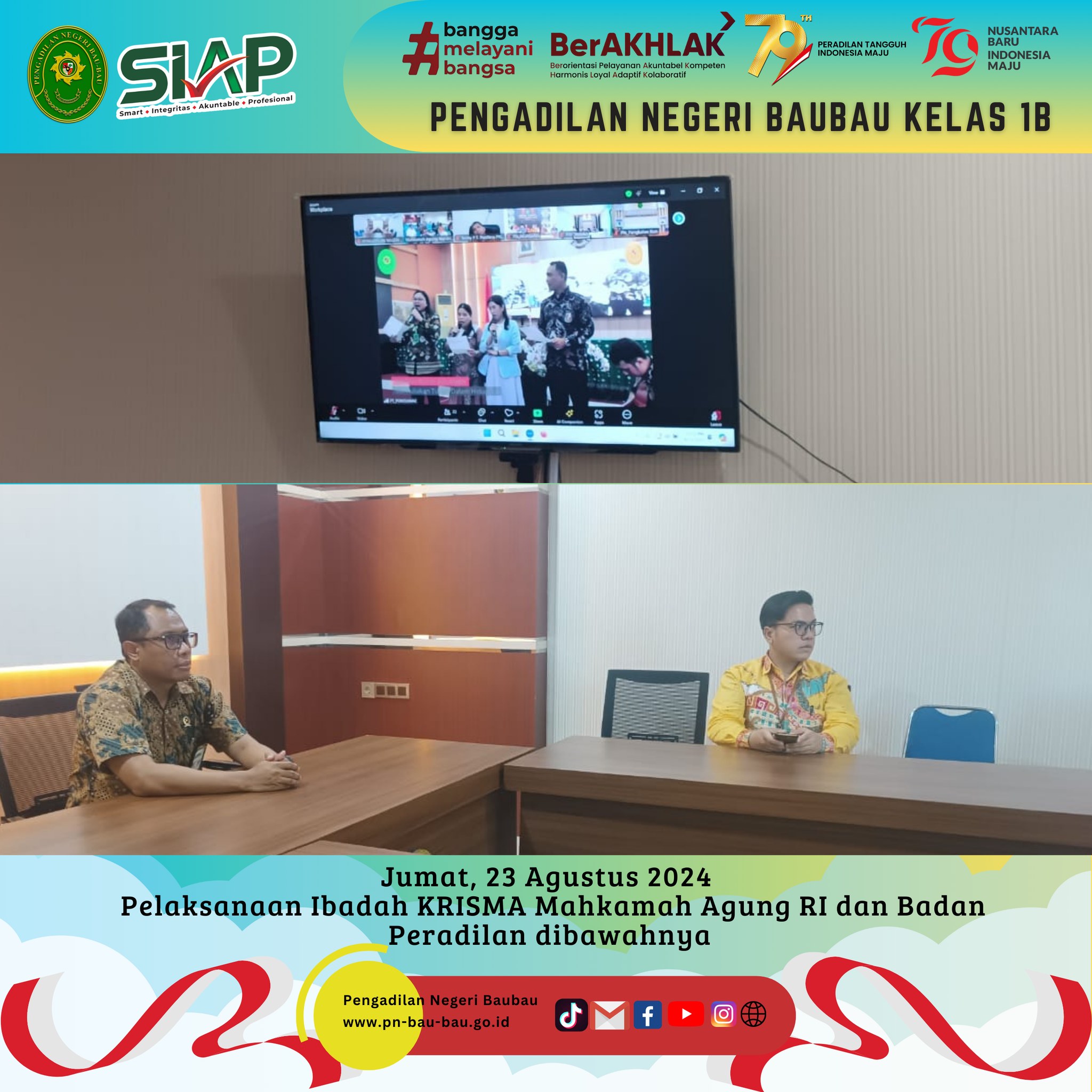 Ketua Pengadilan Negeri Baubau Kelas IB YM. Bpk. Amin Imanuel Bureni., S.H.,M.H, mengikuti Kegiatan Pelaksanaan Ibadah Rutin Bulanan Umat Kristiani Mahkamah Agung RI dan Badan Peradilan dibawahnya yang diikuti oleh seluruh Anggota Persekutuan Kristiani pada Mahkamah Agung RI, Direktorat Jenderal, Badan Pengawasan, Pengadilan Tingkat banding, dan Peradilan Tingkat Pertama di seluruh Indonesia.