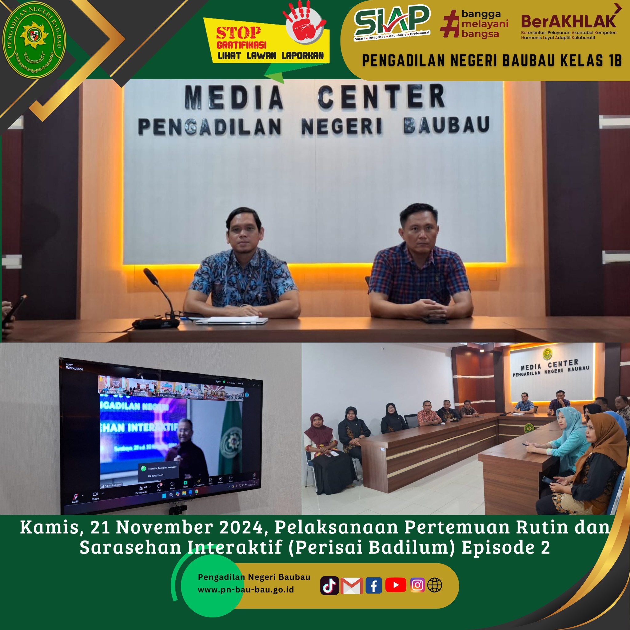 Kamis, 21 November 2024, Pelaksanaan Pertemuan Rutin dan Sarasehan Interaktif Badan Peradilan Umum (Perisai Badilum) Episode 2 secara Hybrid.