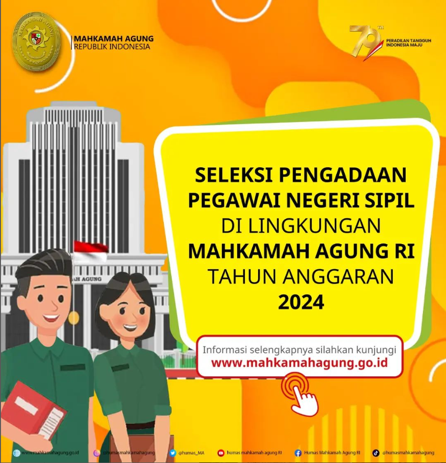 Seleksi Pengadaan Pegawai Negeri Sipil di Lingkungan Mahkamah Agung RI Tahun Anggaran 2024 telah dibuka.
