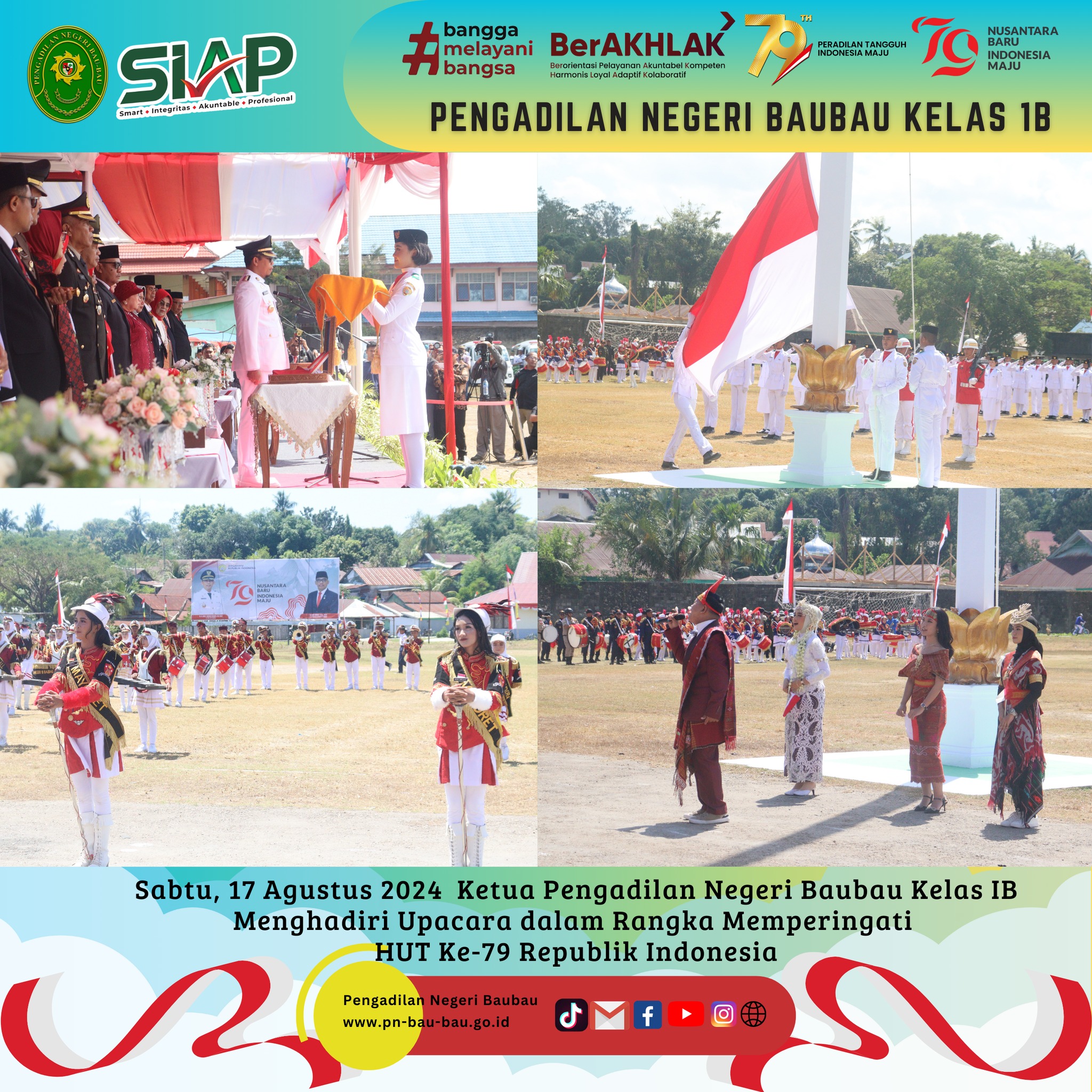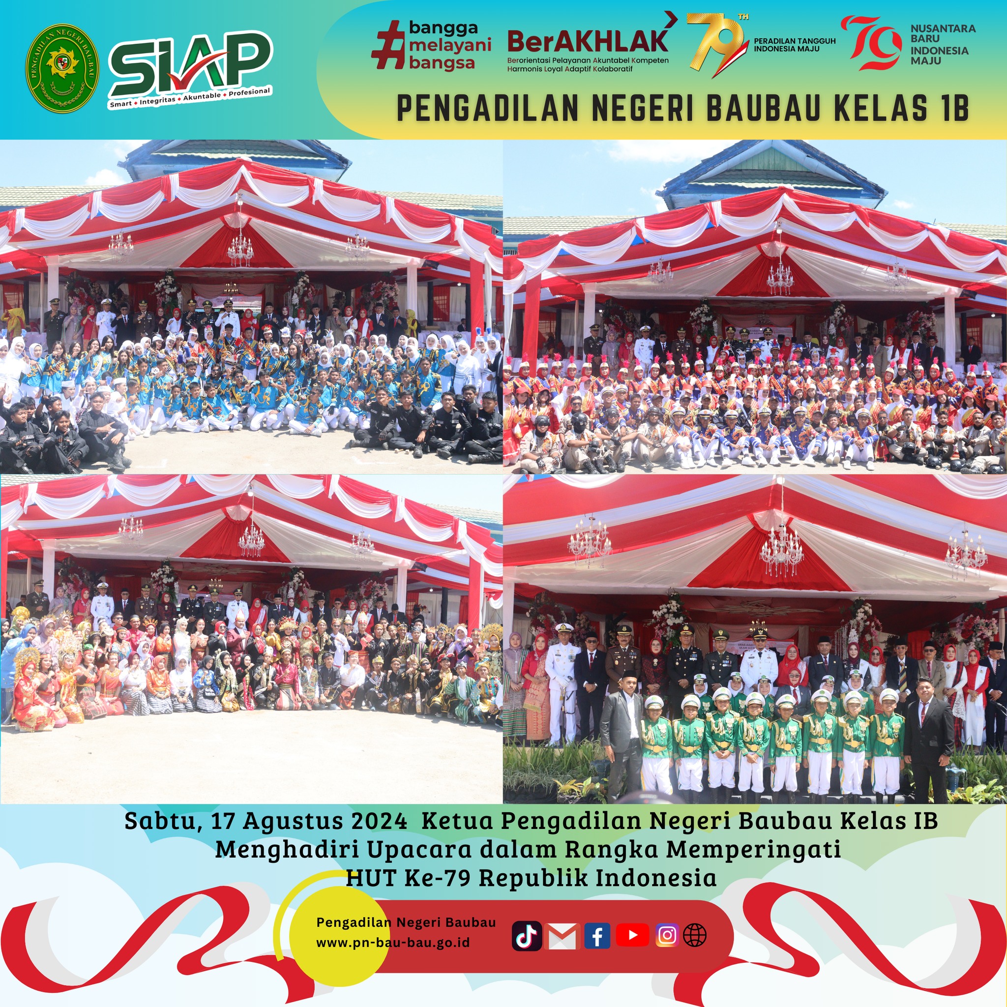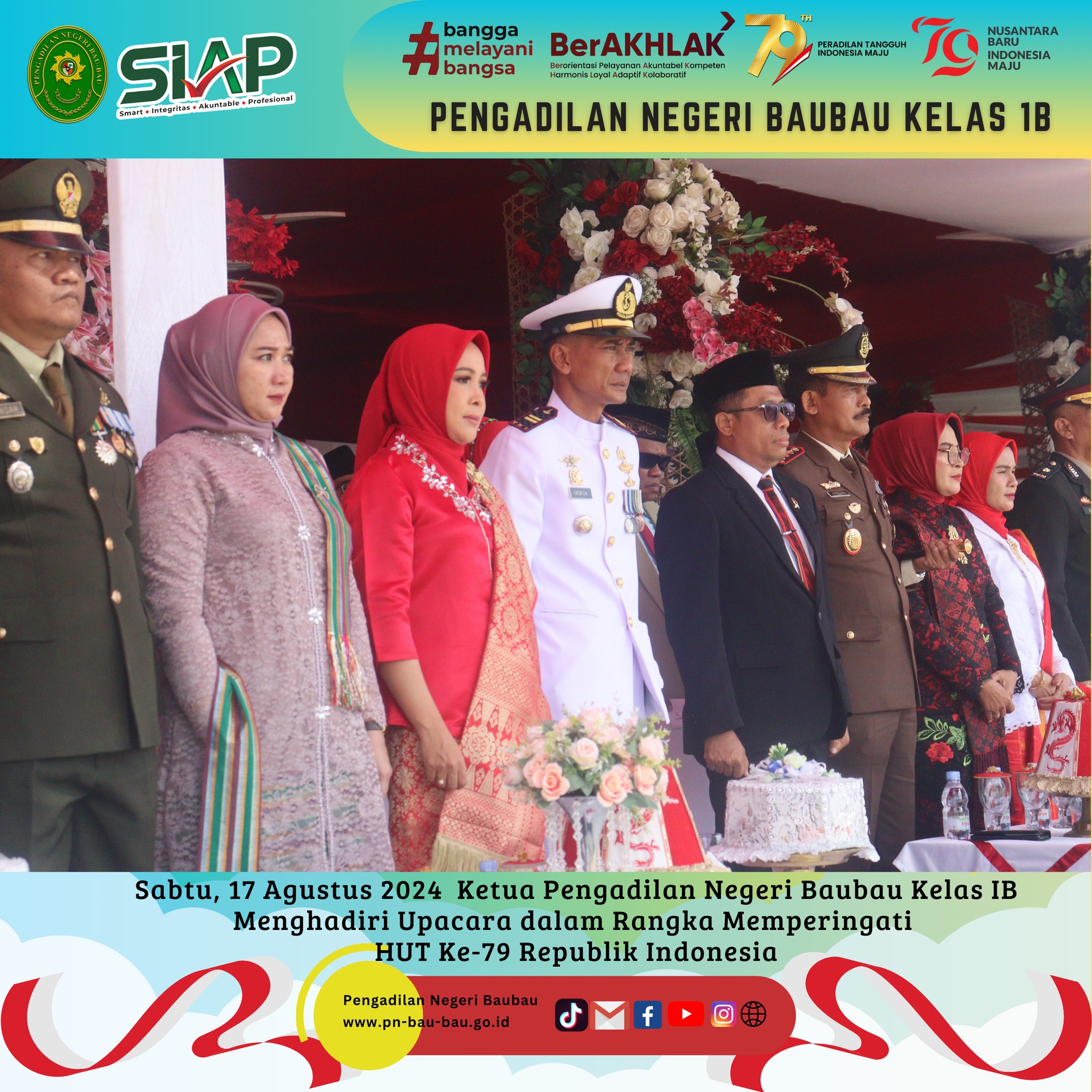 Ketua Pengadilan Negeri Baubau Kelas IB, YM. Bapak Amin Imanuel Bureni, S.H., M.H menghadiri Acara Resepsi Kenegaraan HUT Ke-79 Kemerdekaan Republik Indonesia bertempat di Lapangan Merdeka Kota Baubau pada pukul 20.00 Wita Sampai selesai.