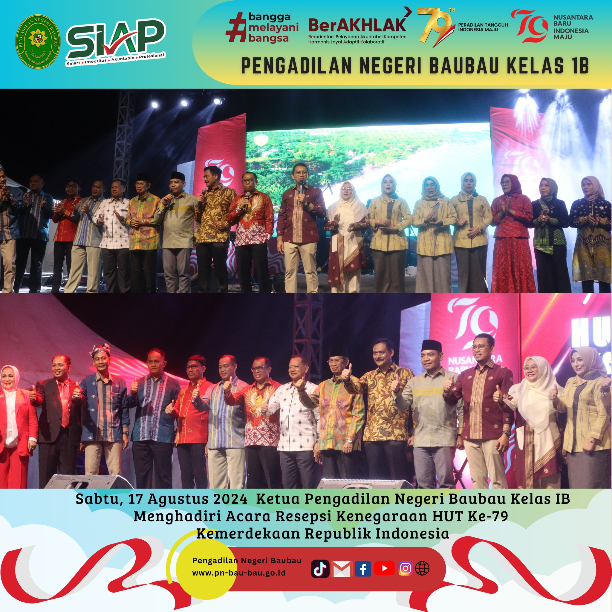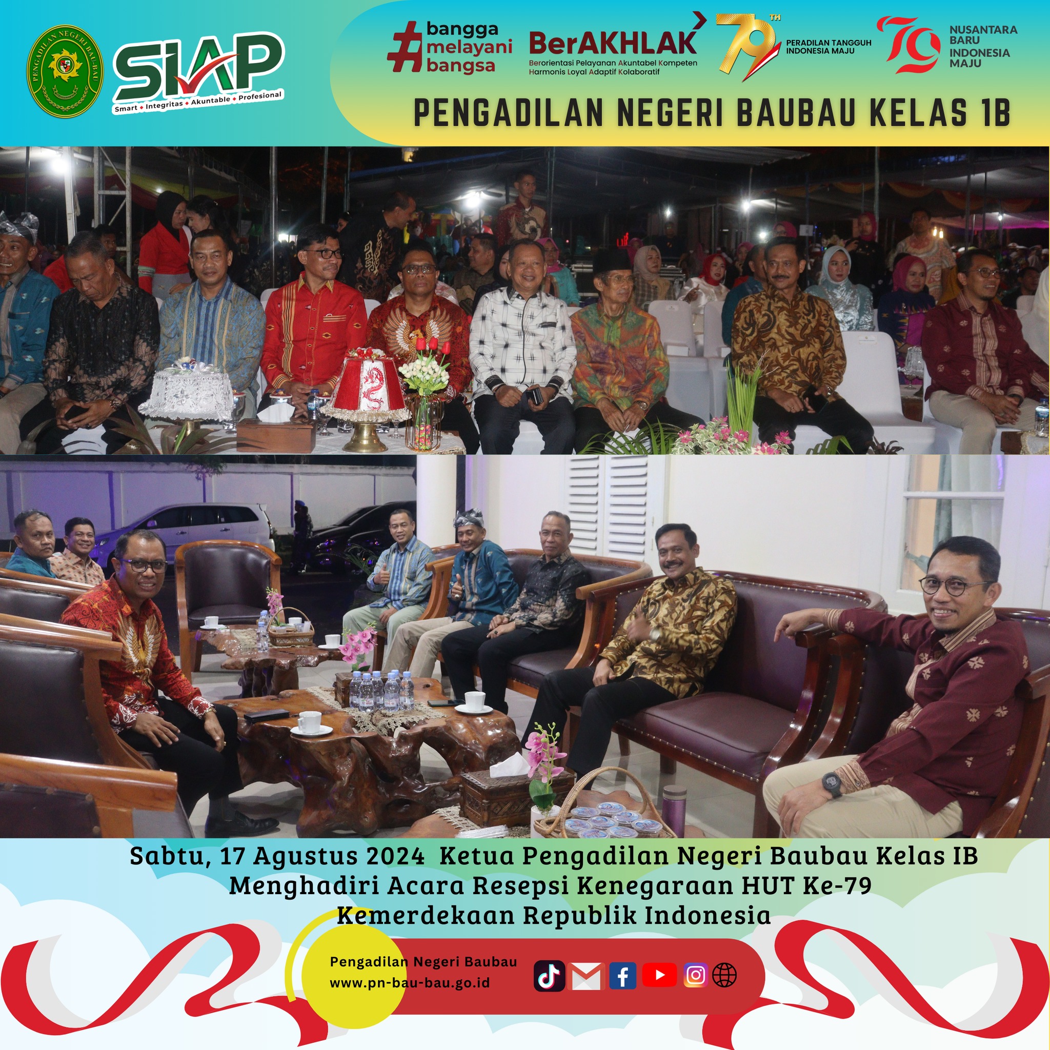 Ketua Pengadilan Negeri Baubau Kelas IB, YM. Bapak Amin Imanuel Bureni, S.H., M.H menghadiri Acara Resepsi Kenegaraan HUT Ke-79 Kemerdekaan Republik Indonesia