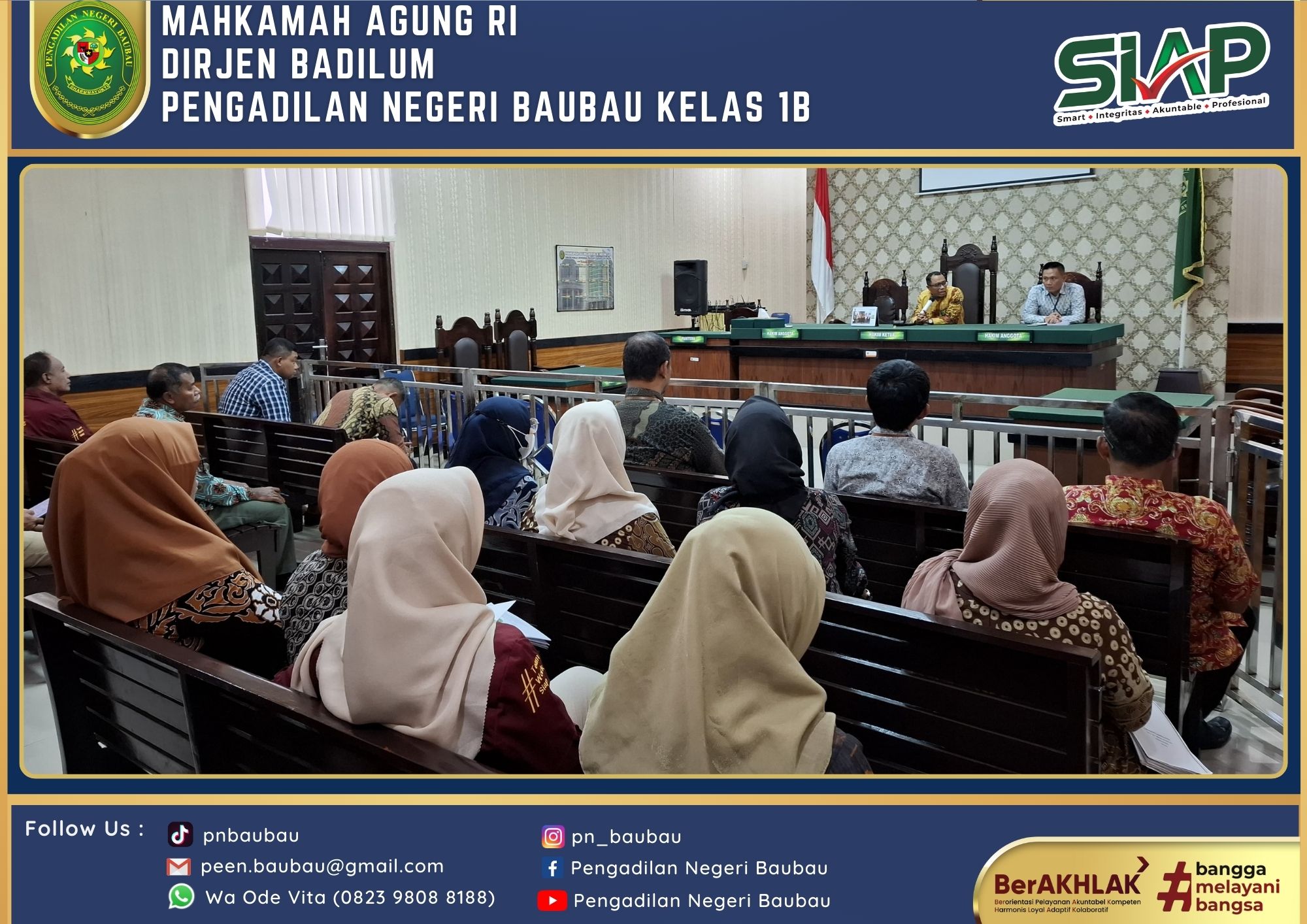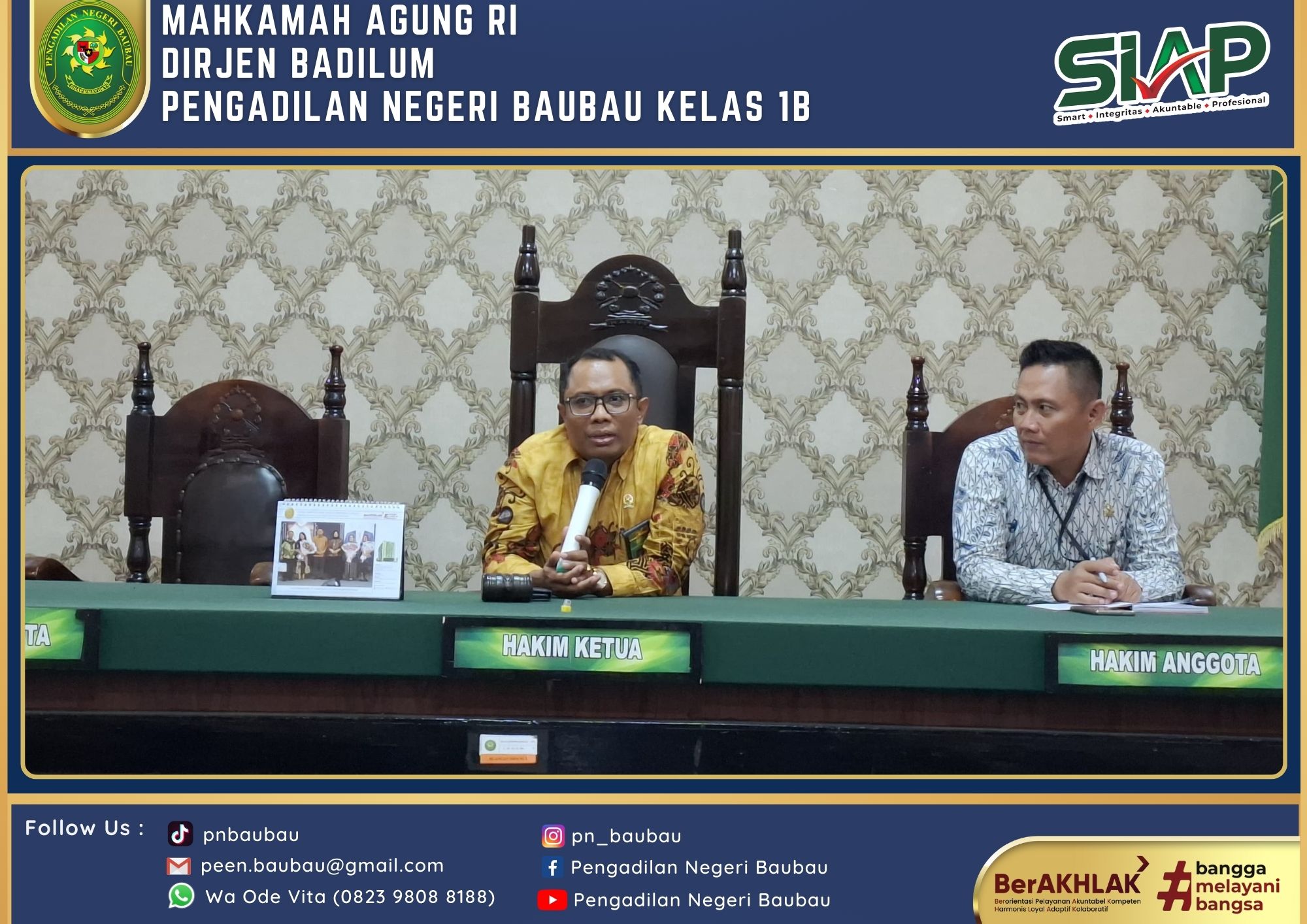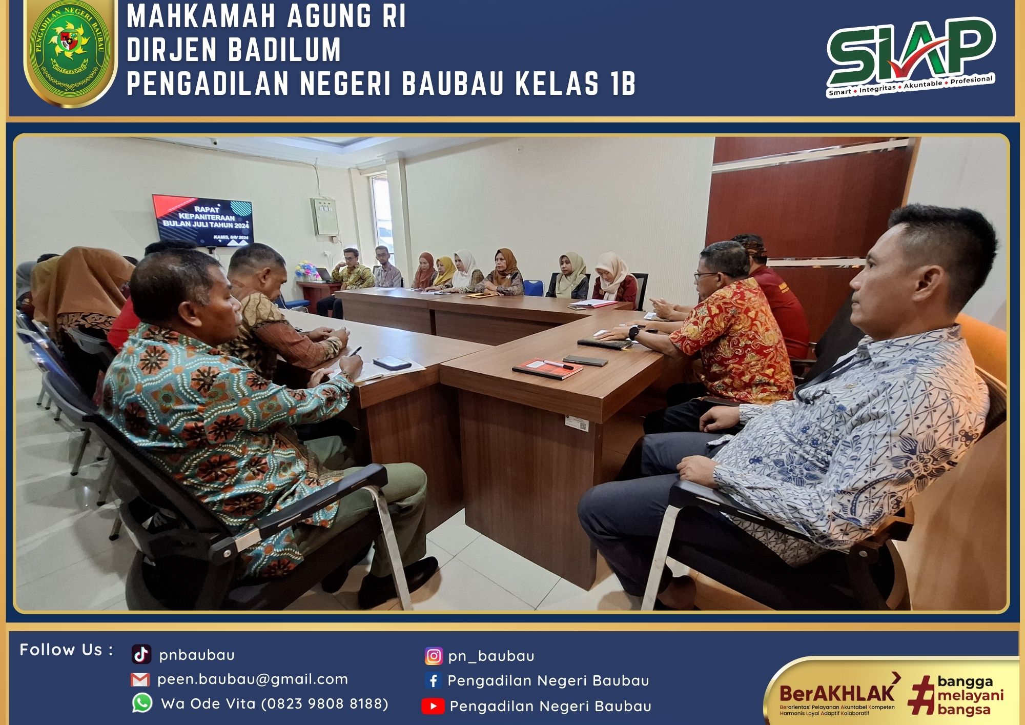 Ketua Pengadilan Negeri Baubau Kelas IB YM.Bapak Amin Imanuel Bureni., S.H., M.H memimpin langsung Rapat Persiapan menyambut HUT RI Ke-79 Tahun dan HUT Mahkamah Agung RI Ke-79 Tahun