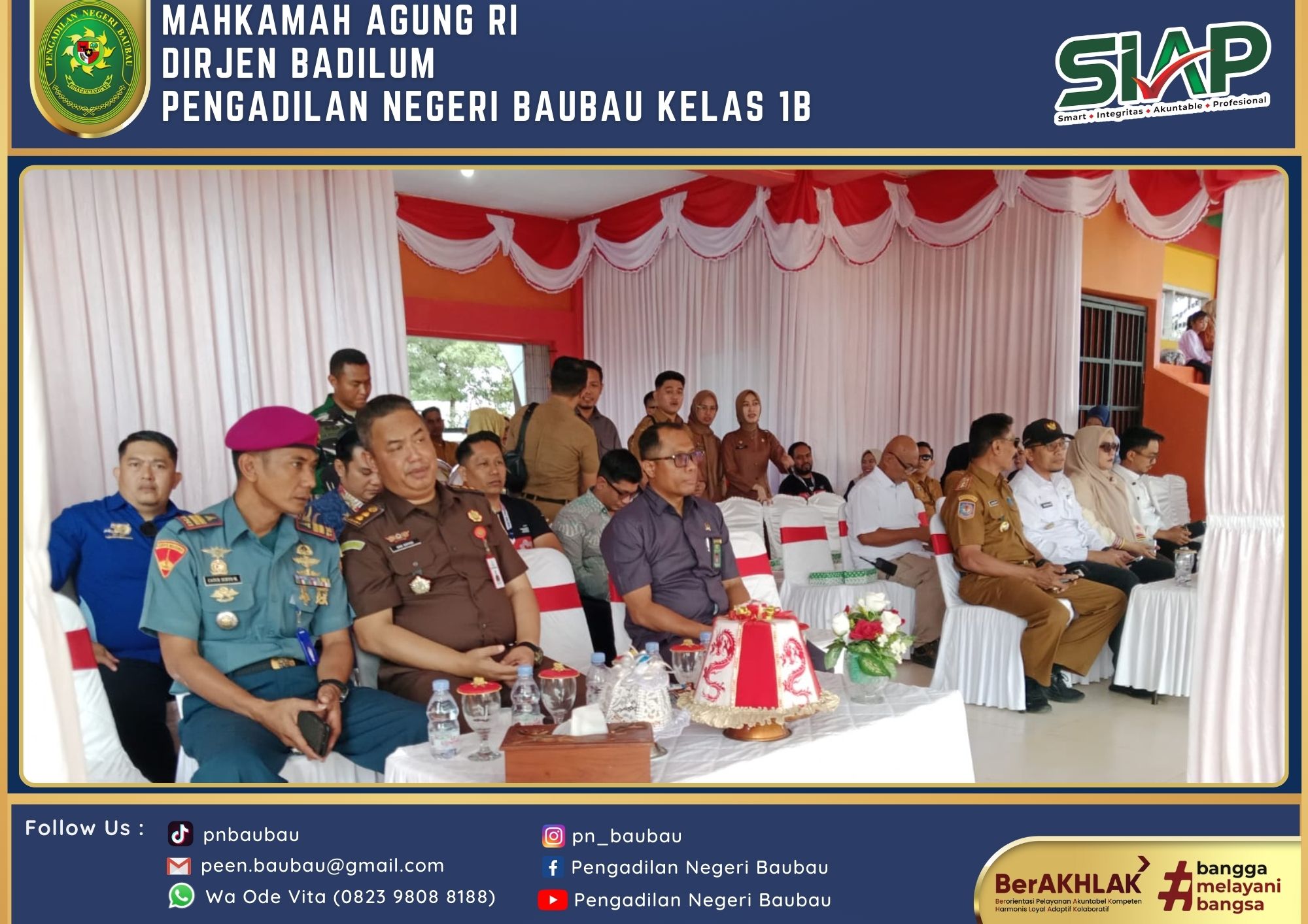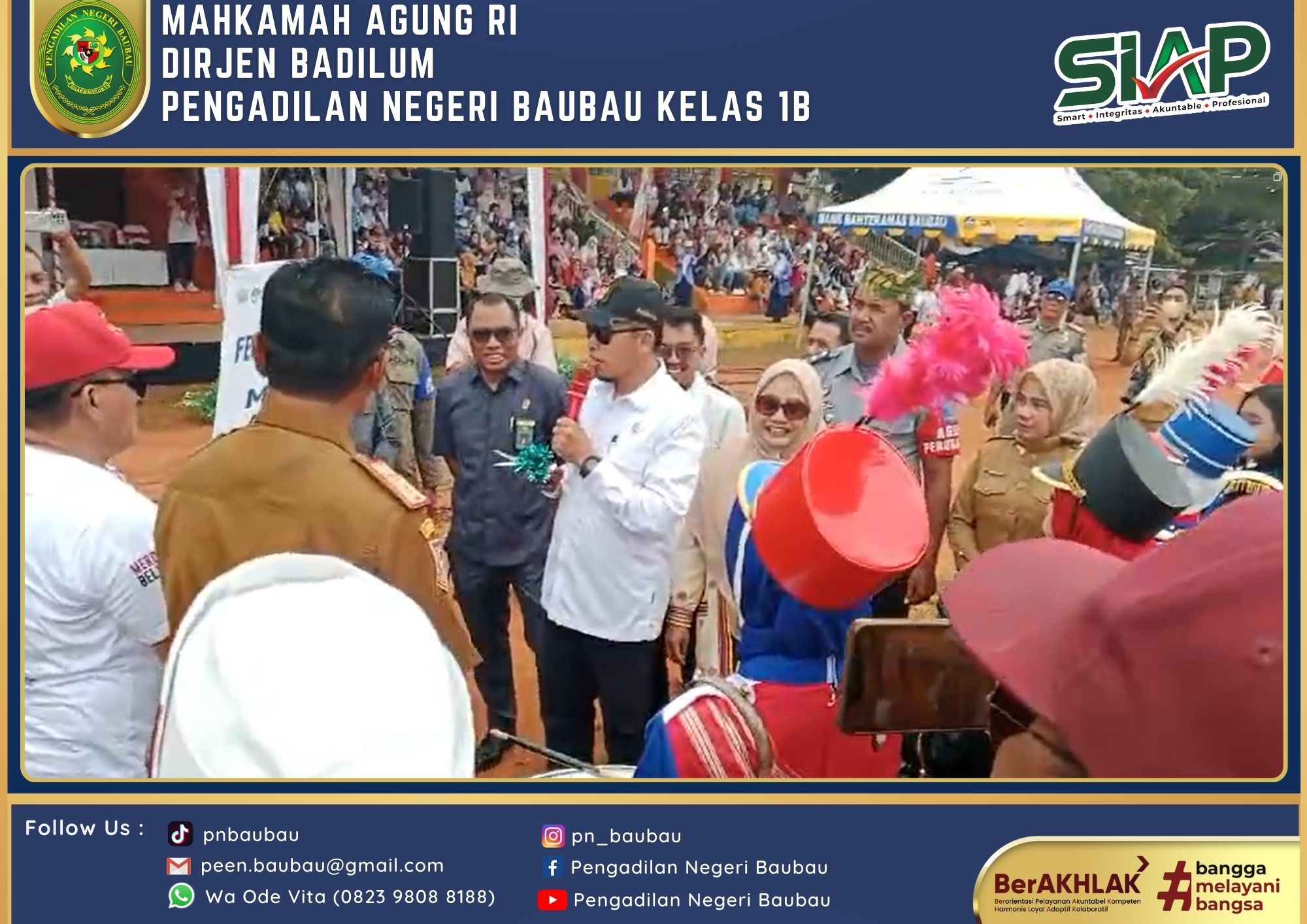 Ketua Pengadilan Negeri Baubau Kelas IB YM.Bapak Amin Imanuel Bureni., S.H., M.,H. menghadiri Festival Marching Band se-Kota Baubau dari Dinas Pendidikan dan Kebudayaan Kota Baubau dalam Rangka memperingati Hari Ulang Tahun Kemerdekaan Republik Indonesia bertempat di Lapangan Stadion Betoambari Kota Baubau pada Pukul 08.00 Wita sampai selesai.