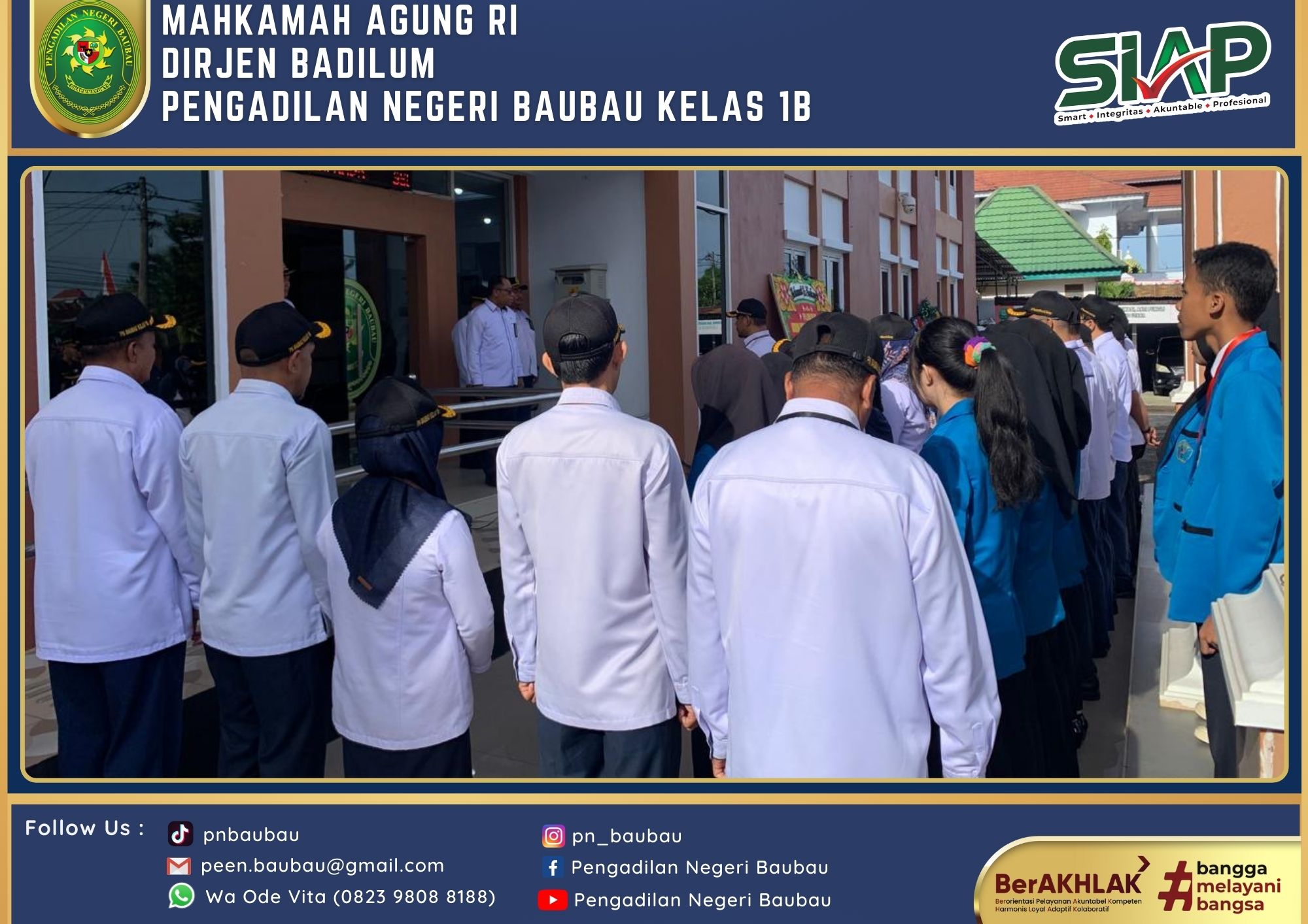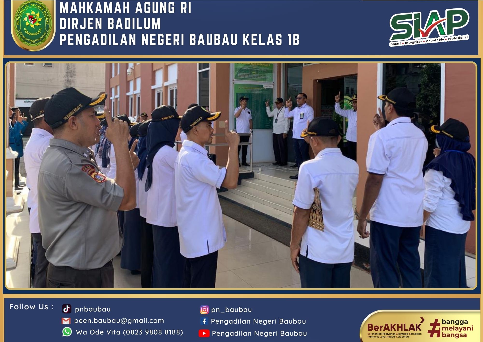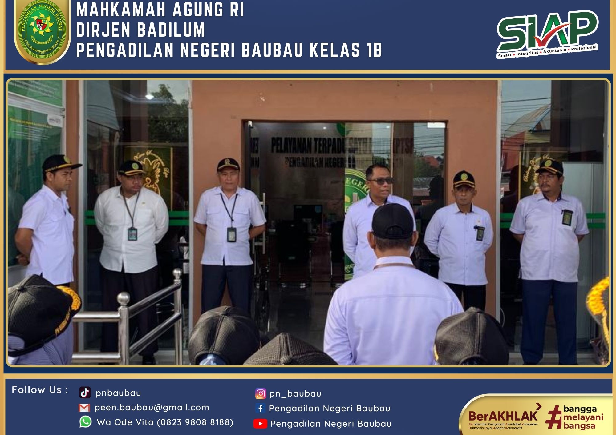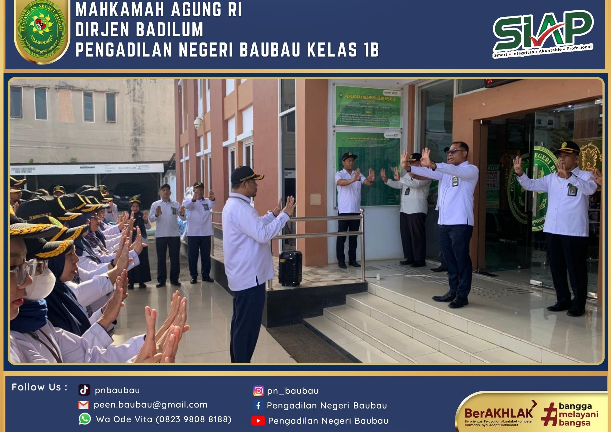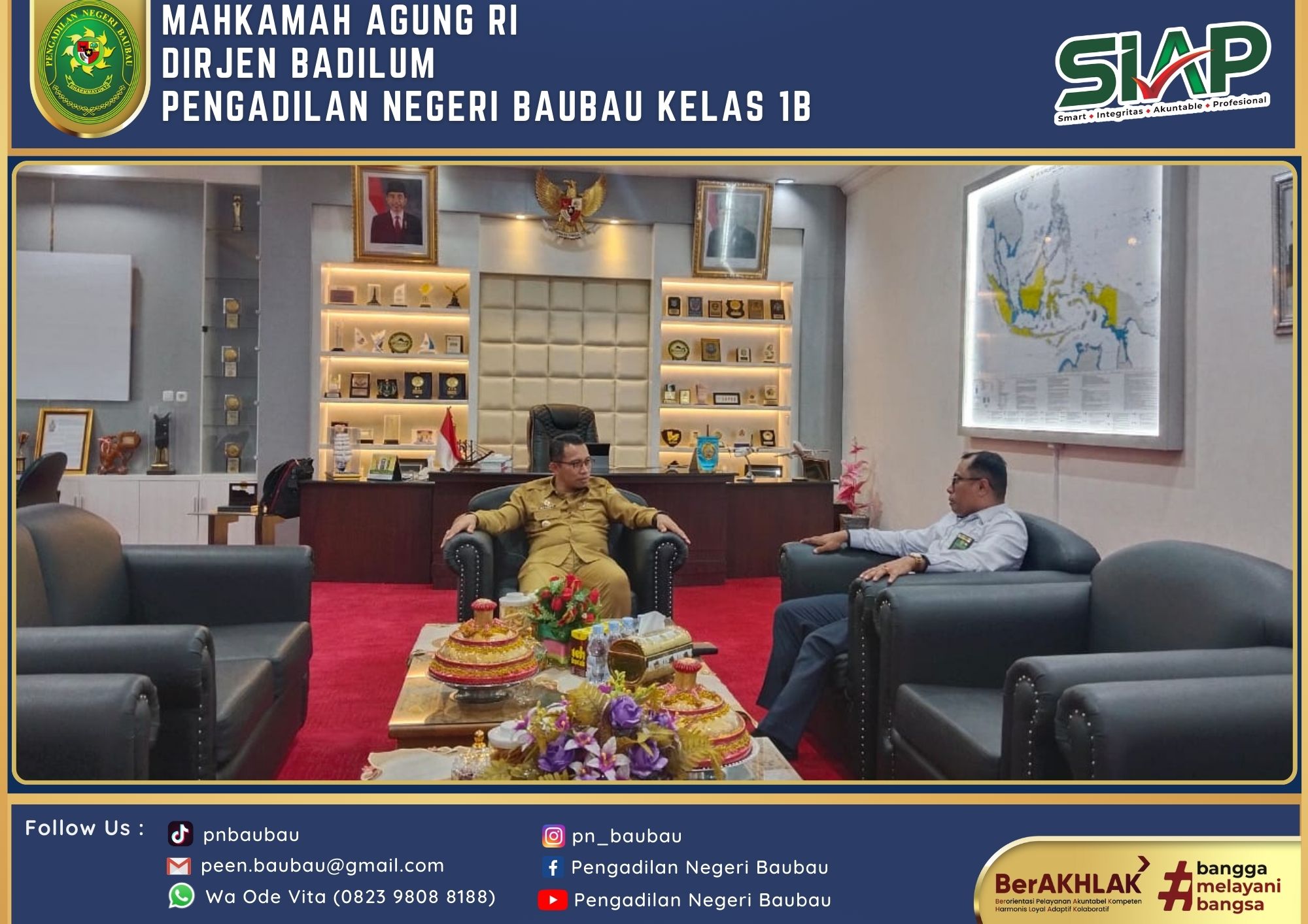 Mengawali Tugas sebagai Ketua yang telah resmi dilantik pada tanggal 1 Agustus 2024, Ketua Pengadilan Negeri Baubau Kelas IB YM. Bpk. Amin Imanuel Bureni., S.H., M.H sekitar Pukul 13.00 Wita sampai selesai melakukan kegiatan Silahturahmi di Kantor Walikota Baubau dan diterima langsung oleh Pj. Walikota Baubau Bapak Dr Muh Rasman Manafi, SP, M.Si di Ruang Kerjanya.