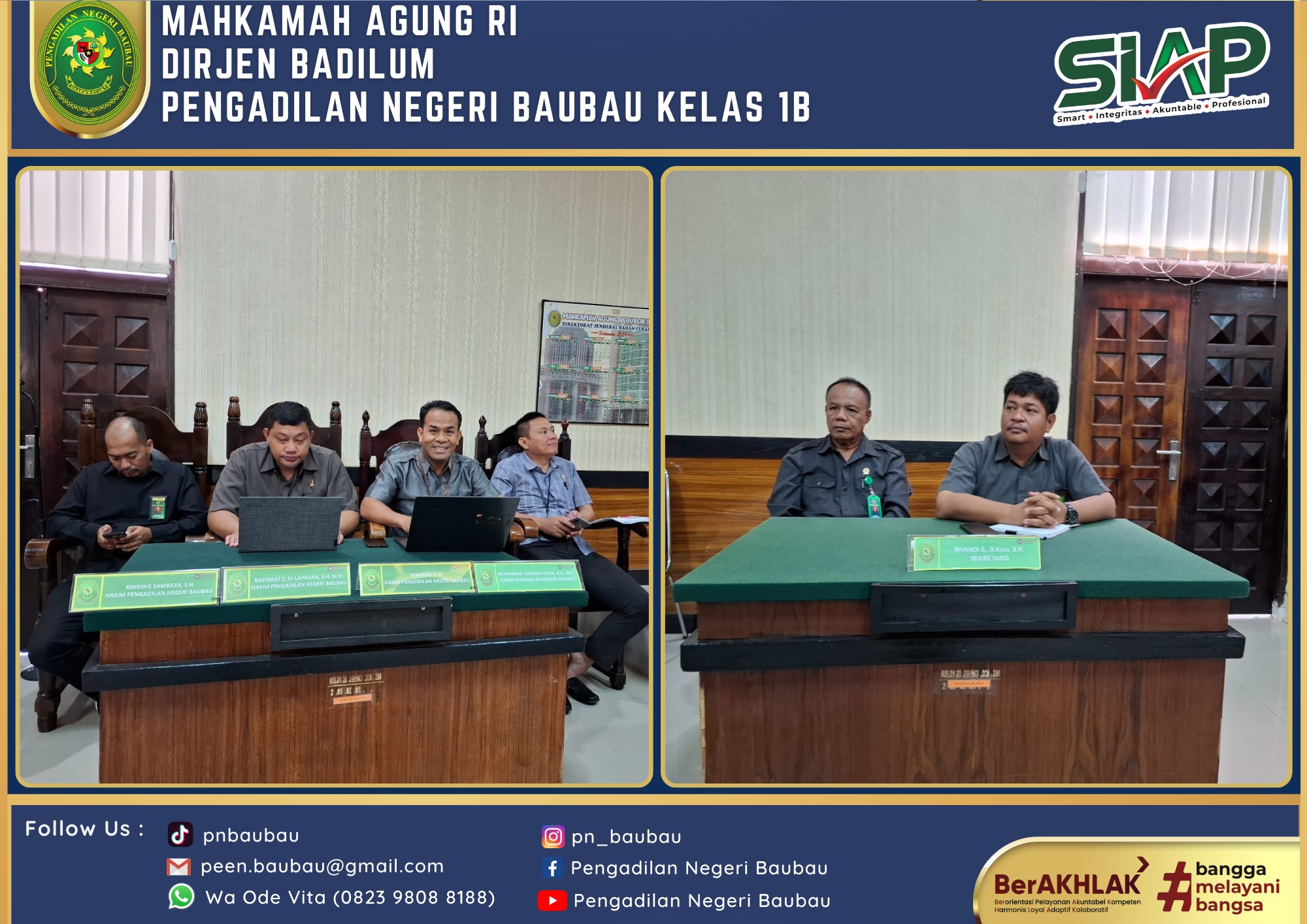 Rapat Bulanan, Pembinaan dan Pengawasan Peraturan Mahkamah Agung RI Nomor 7, 8, 9 Tahun 2016 Periode Bulan Juni Tahun 2024 Oleh WKPN Baubau Bpk. Johanis Dairo Malo., S.H., M.H.