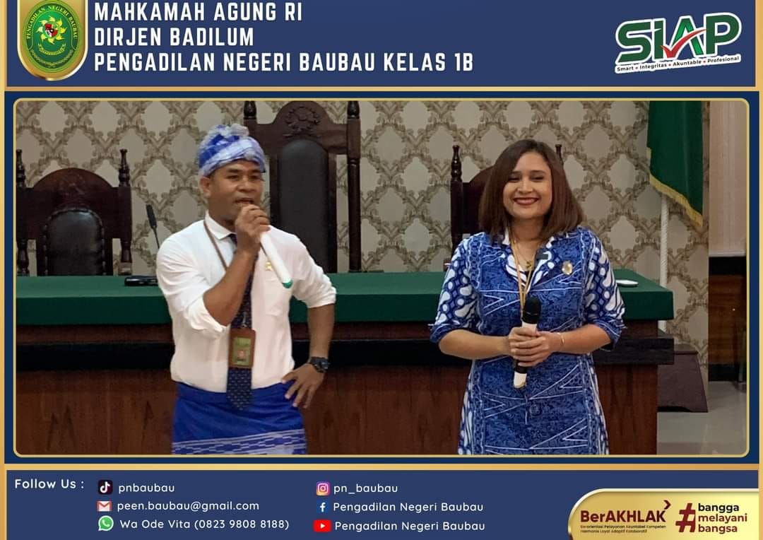 Adapun rangkain acara mengenal pengadilan ini adalah, pembukaan oleh Dua host Bapak Mahmid, S.H., dan Ibu Yanti Kaselta, S.Sos, kemudian sedikit gambaran mengenai struktur jabatan yang ada di pengadilan Negeri Baubau mulai dari pucuk pimpinan, kepaniteraan dan juga kesekretatarian. Selanjutnya kata sambutan dari Ketua Pengadilan Negeri Baubau YM. Bapak Joko Dwi Atmoko, S.H., M.H.