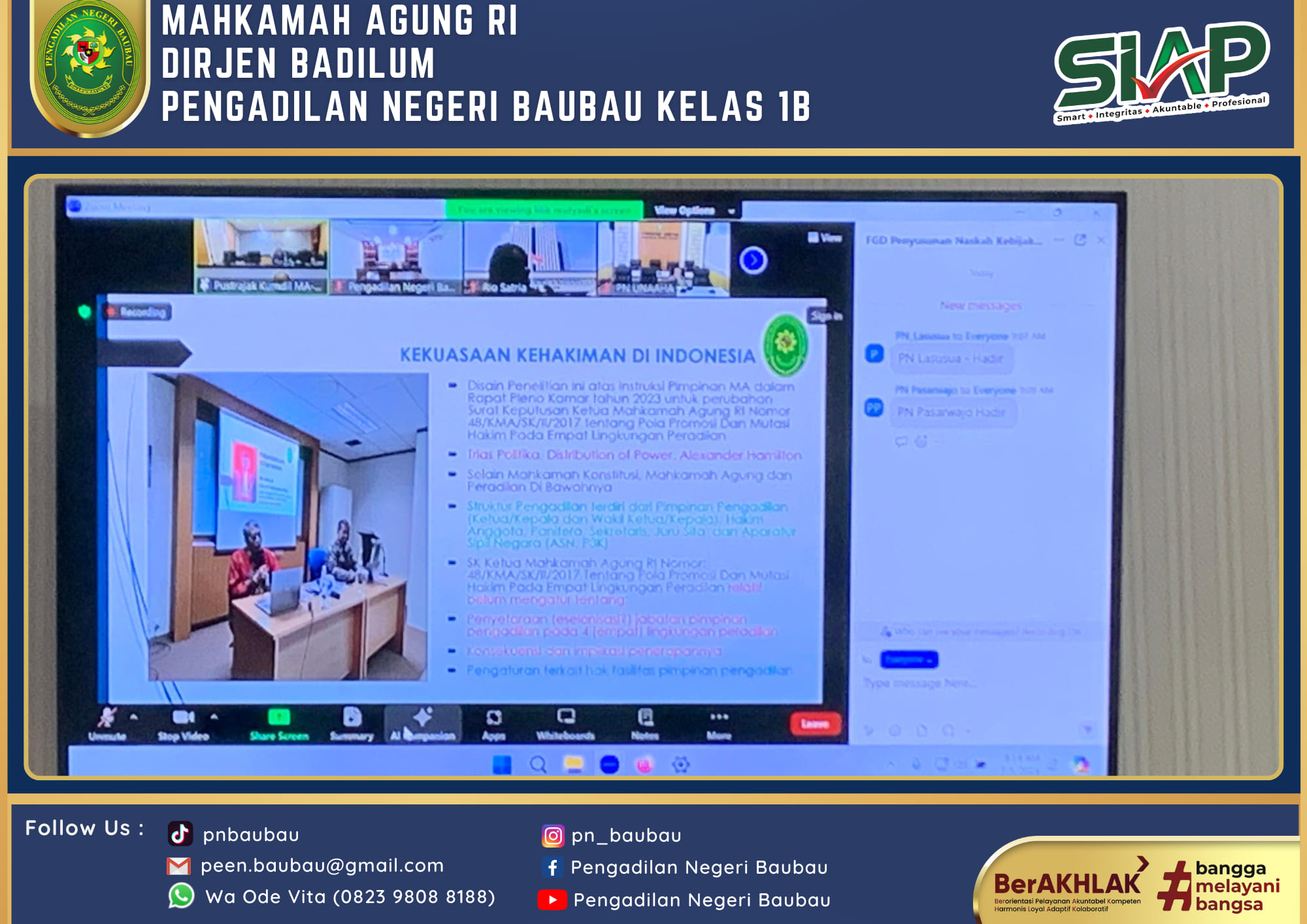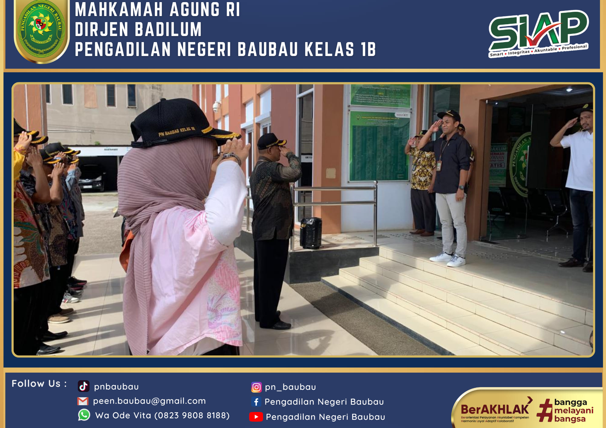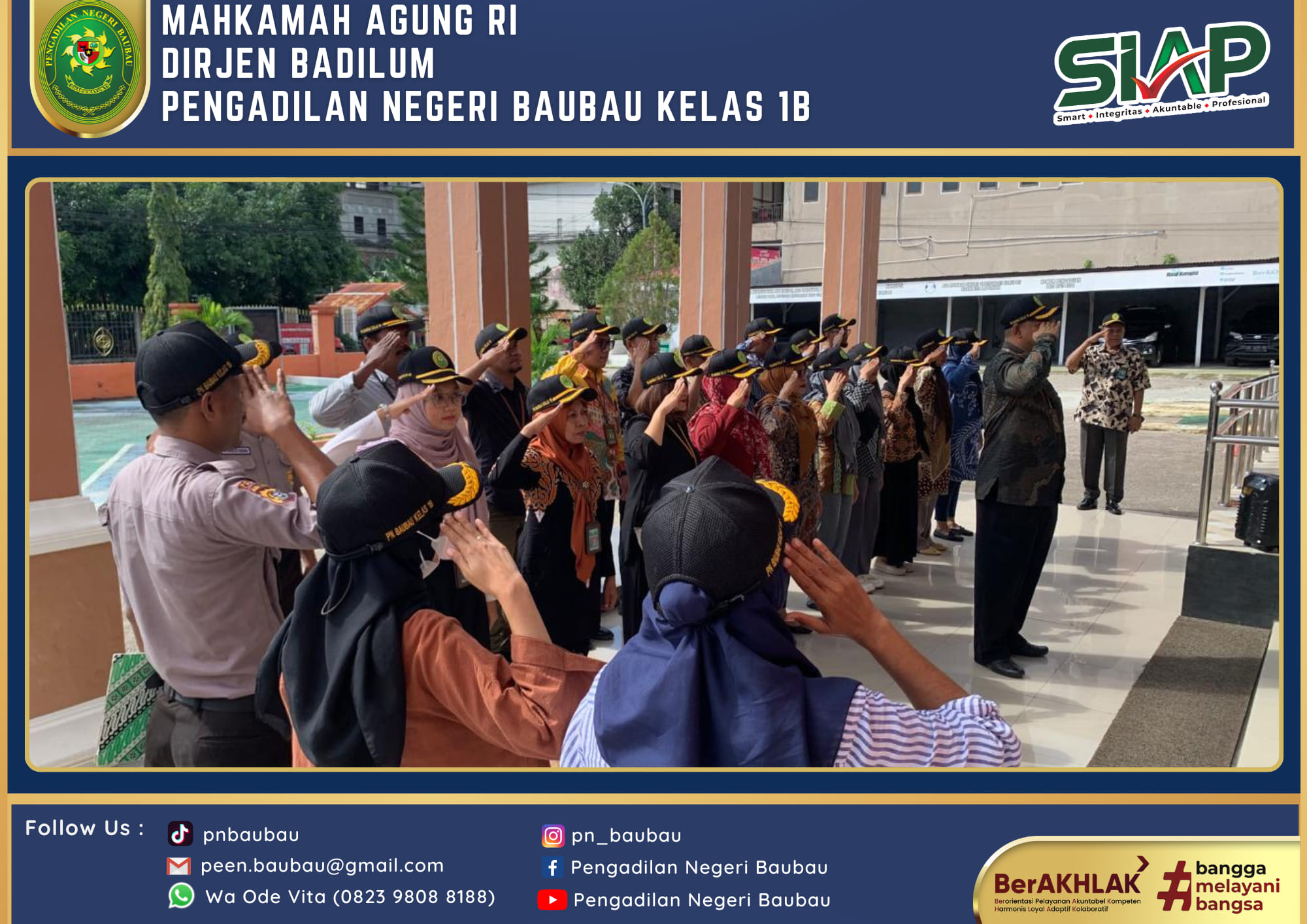 Pelaksanaan Apel Jumat Sore yang dipimpin oleh YM. Bapak Mahmid, S.H., . Selaku Hakim Pengadilan Negeri Baubau Kelas IB.