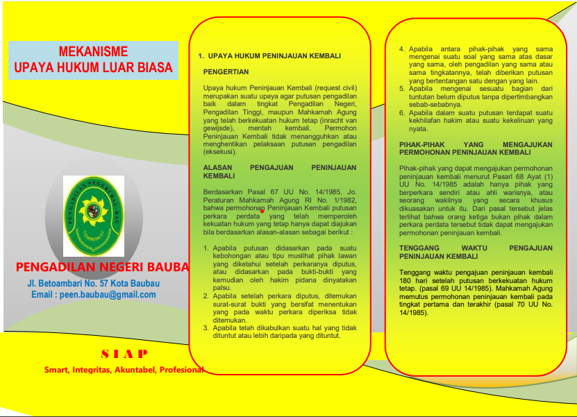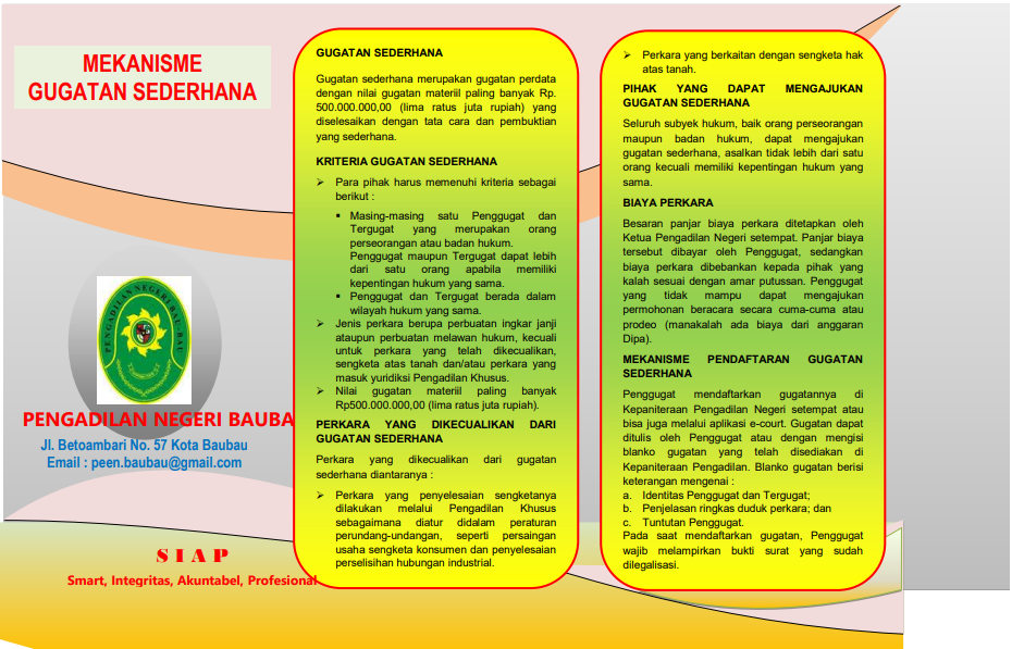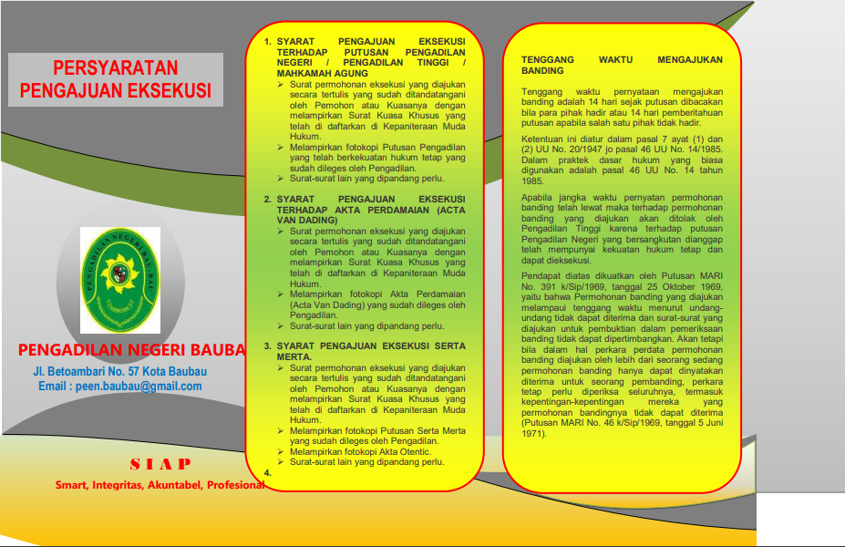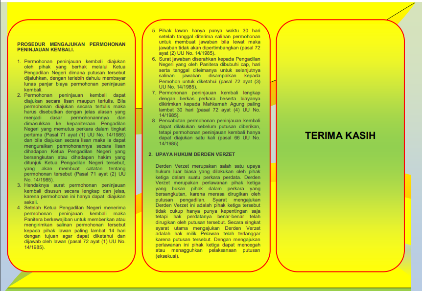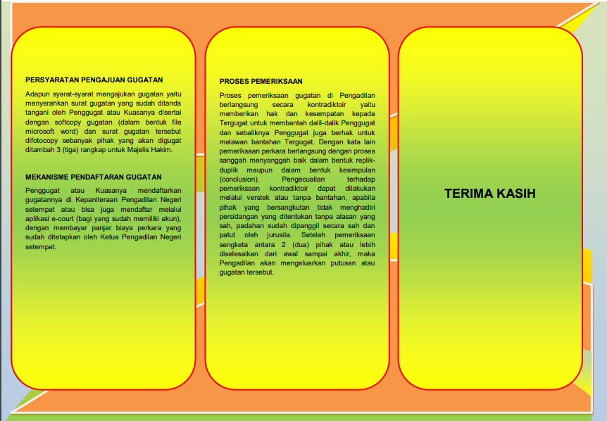 Brosur Layanan Perdata E-Brosur Layanan Gugatan E-Brosur Layanan Gugatan Sederhana E-Brosur Mekanisme Permohonan E-Brosur Mekanisme Upaya Hukum Biasa E-Brosur Mekanisme Upaya Hukum Luar Biasa E-Brosur Persyaratan Pengajuan Eksekusi