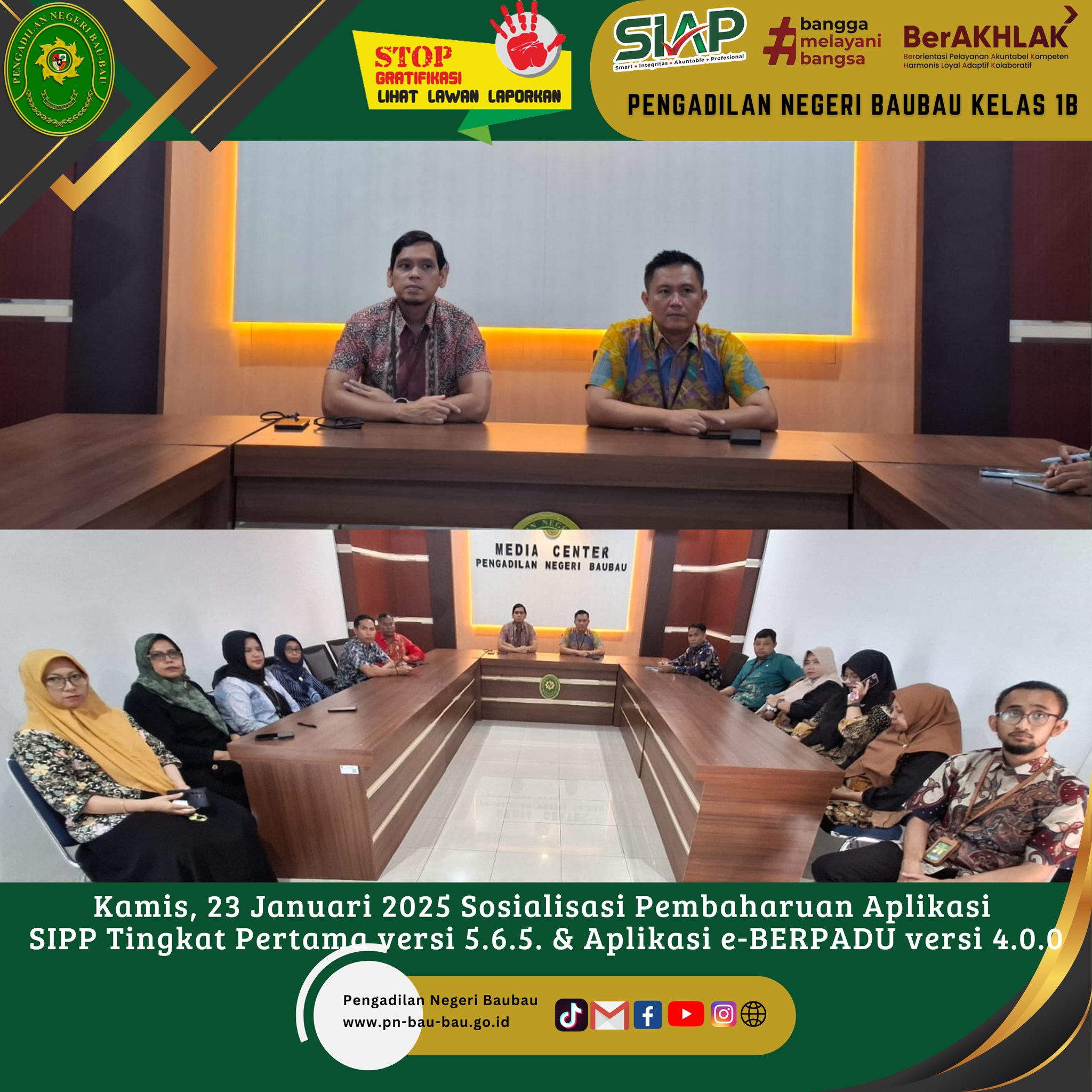 Kamis, 23 Januari 2024, Sekretris Pengadilan Negeri Baubau memimpin langsung Rapat seleksi Pengadaan Pegawai Pemerintah Non Pegawai Negeri (PPNPN) Tahun Anggaran 2025 pada Pengadilan Negeri Baubau Kelas IB.