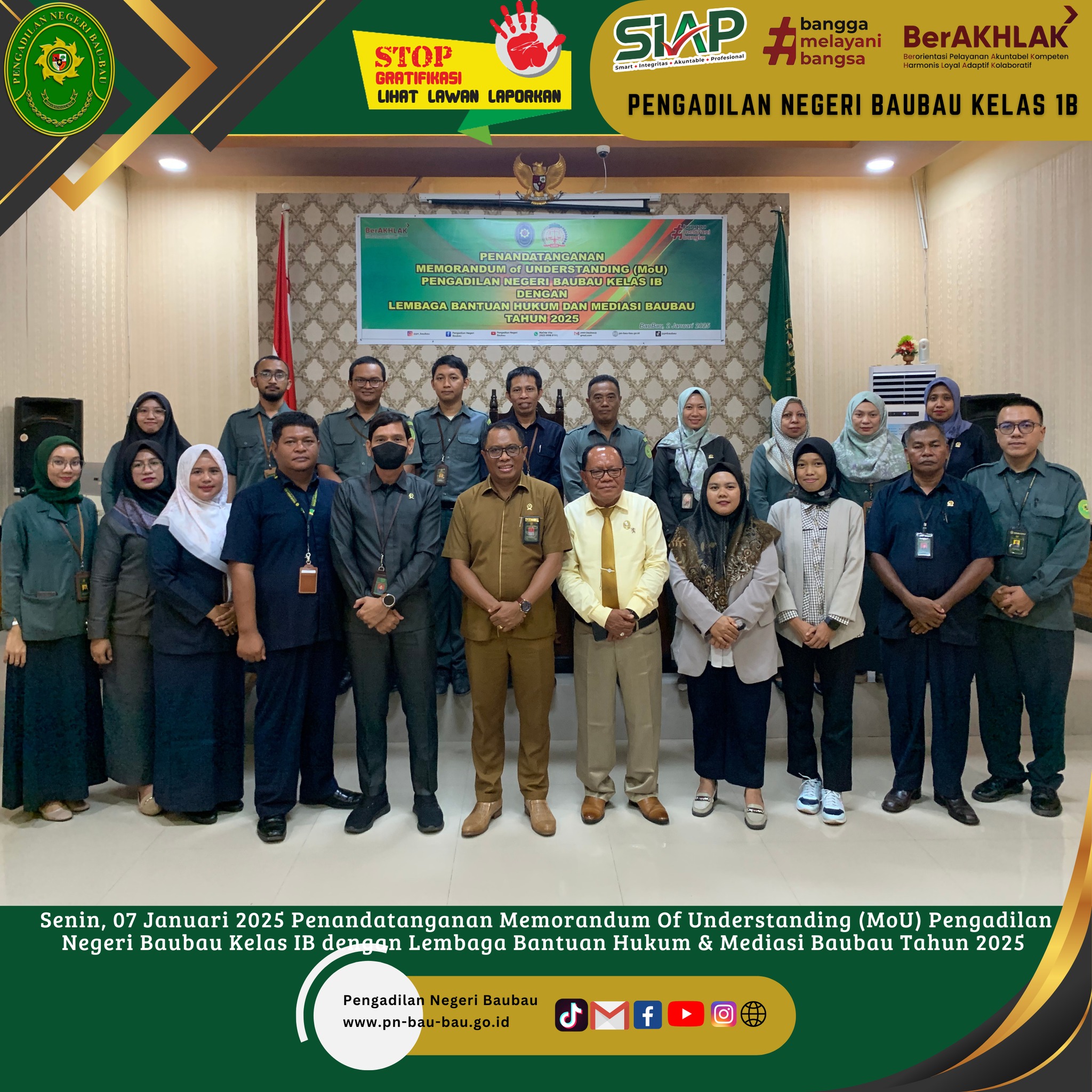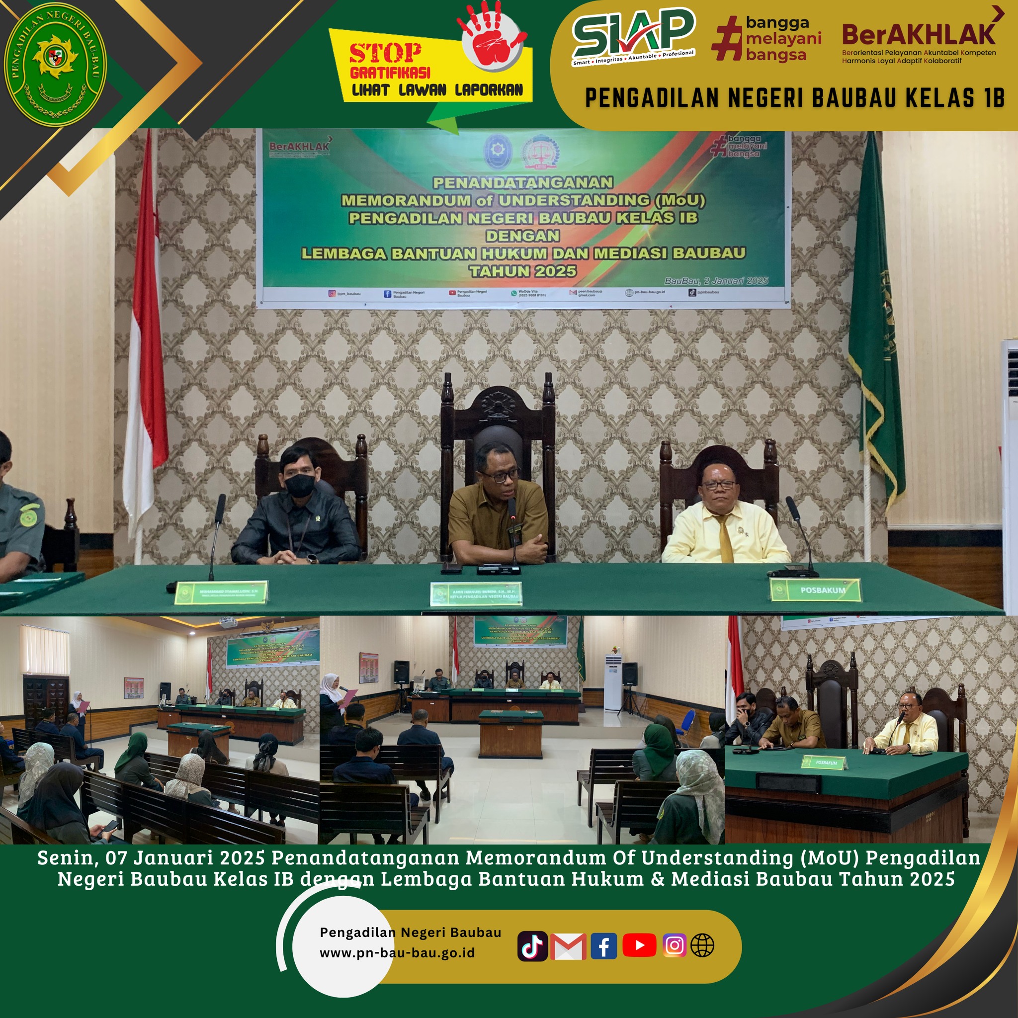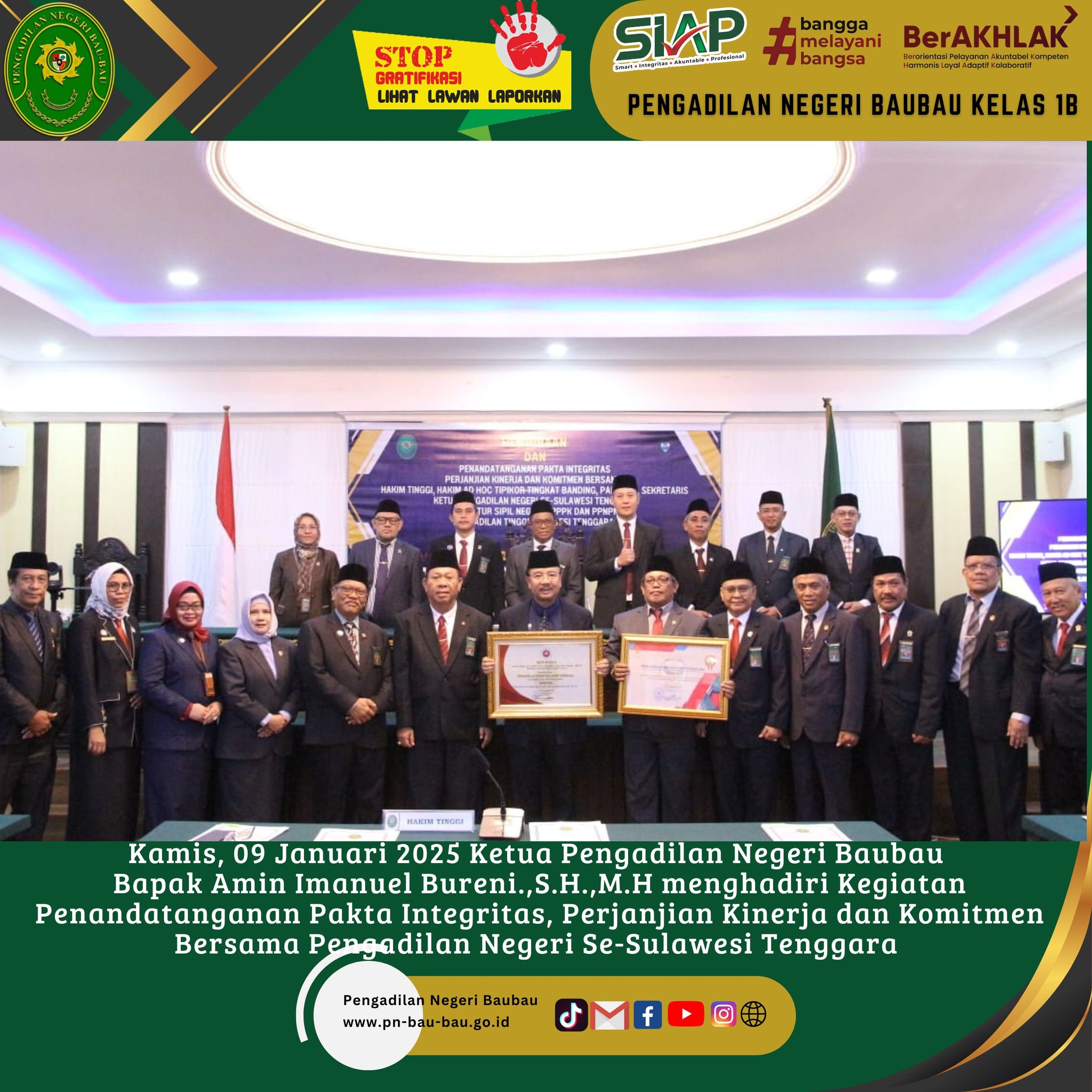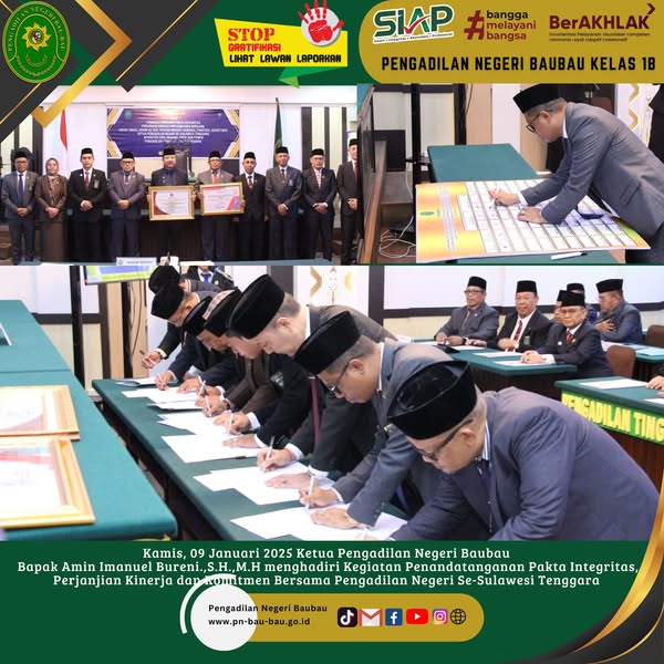 Kamis, 09 Januari 2025 KPN Baubau, Bapak Amin Imanuel Bureni.,S.H.,M.H menghadiri acara Penandatanganan Pakta Integritas, Perjanjian Kinerja, dan Komitmen Bersama yang dihadiri oleh seluruh Ketua Pengadilan Negeri Se-Sulawesi Tenggara.