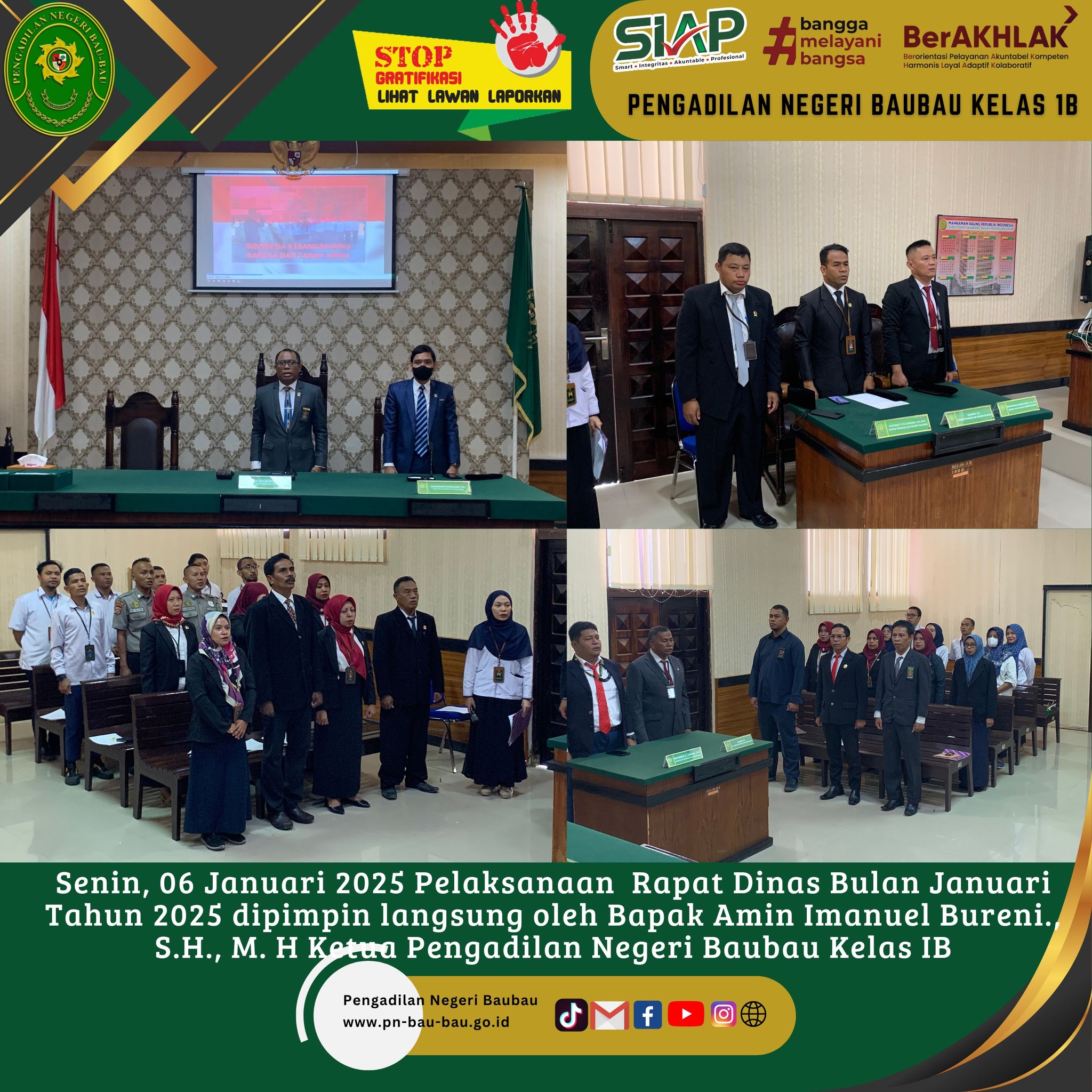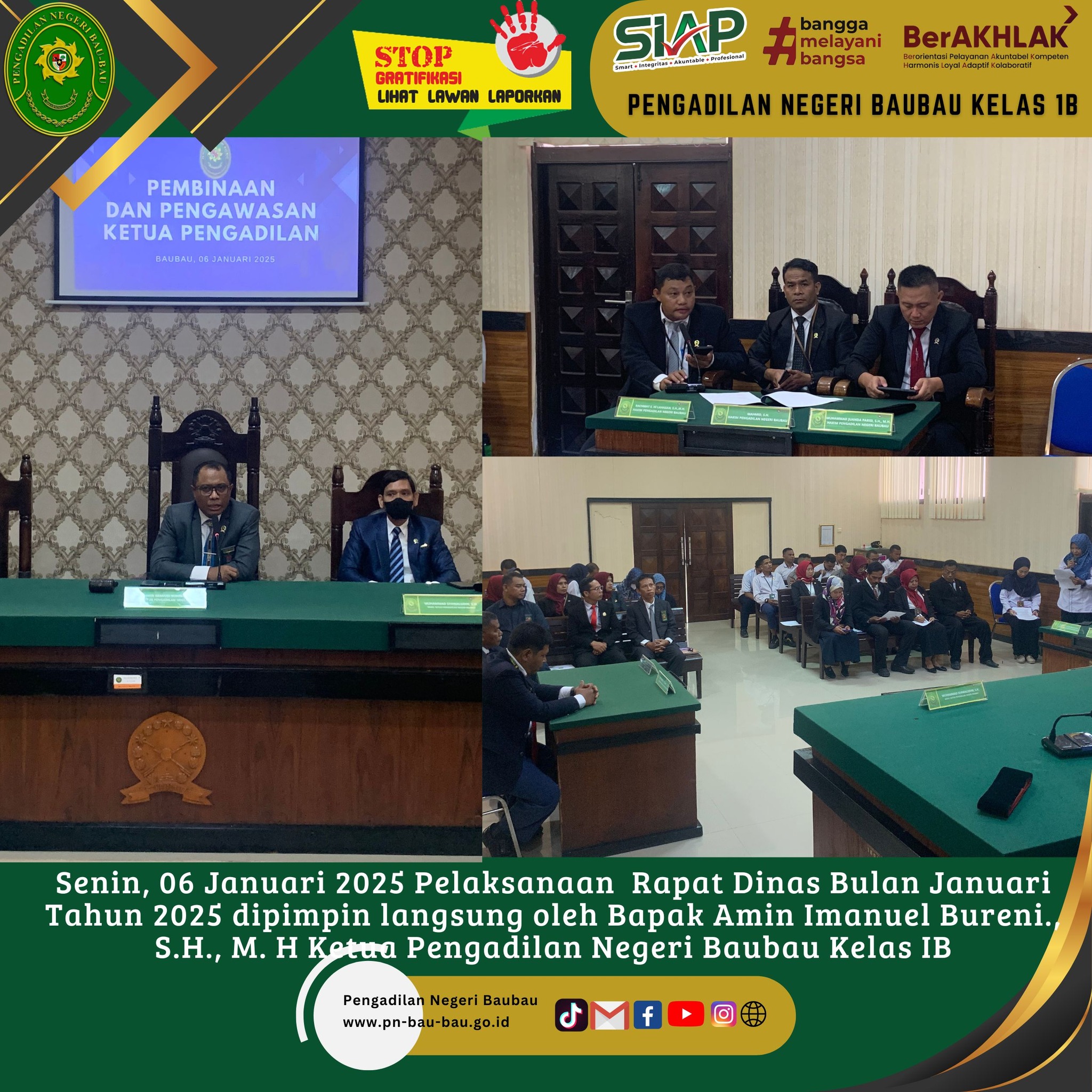Pelaksanaan Rapat Dinas Bulan Januari Tahun 2025 dipimpin langsung oleh Bapak Amin Imanuel Bureni., S.H., M. H Ketua Pengadilan Negeri Baubau Kelas IB.