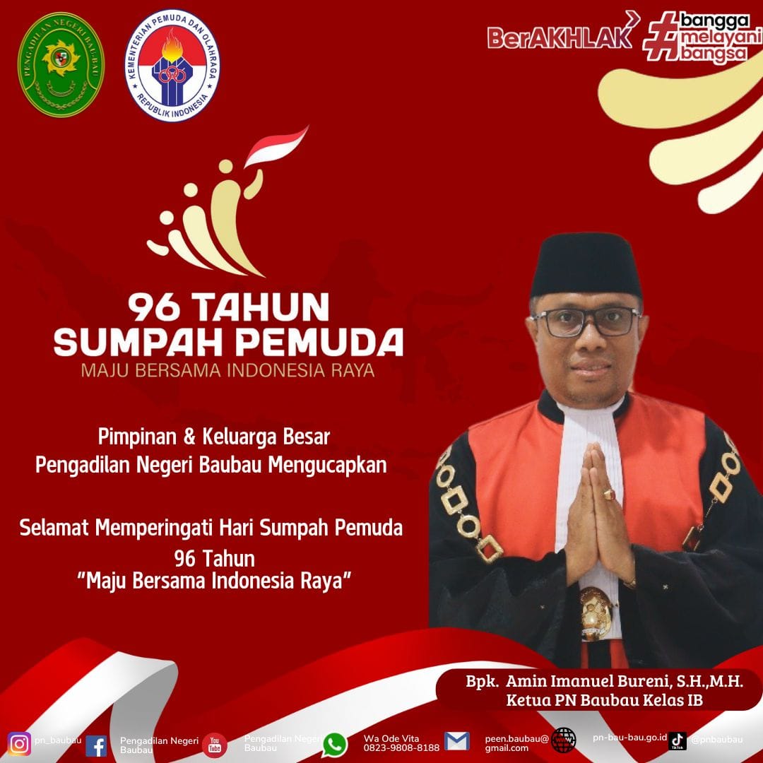 Pimpinan & Keluarga Besar Pengadilan Negeri Baubau Mengucapkan Selamat Memperingati Hari Sumpah Pemuda 96 Tahun “Maju Bersama Indonesia Raya”