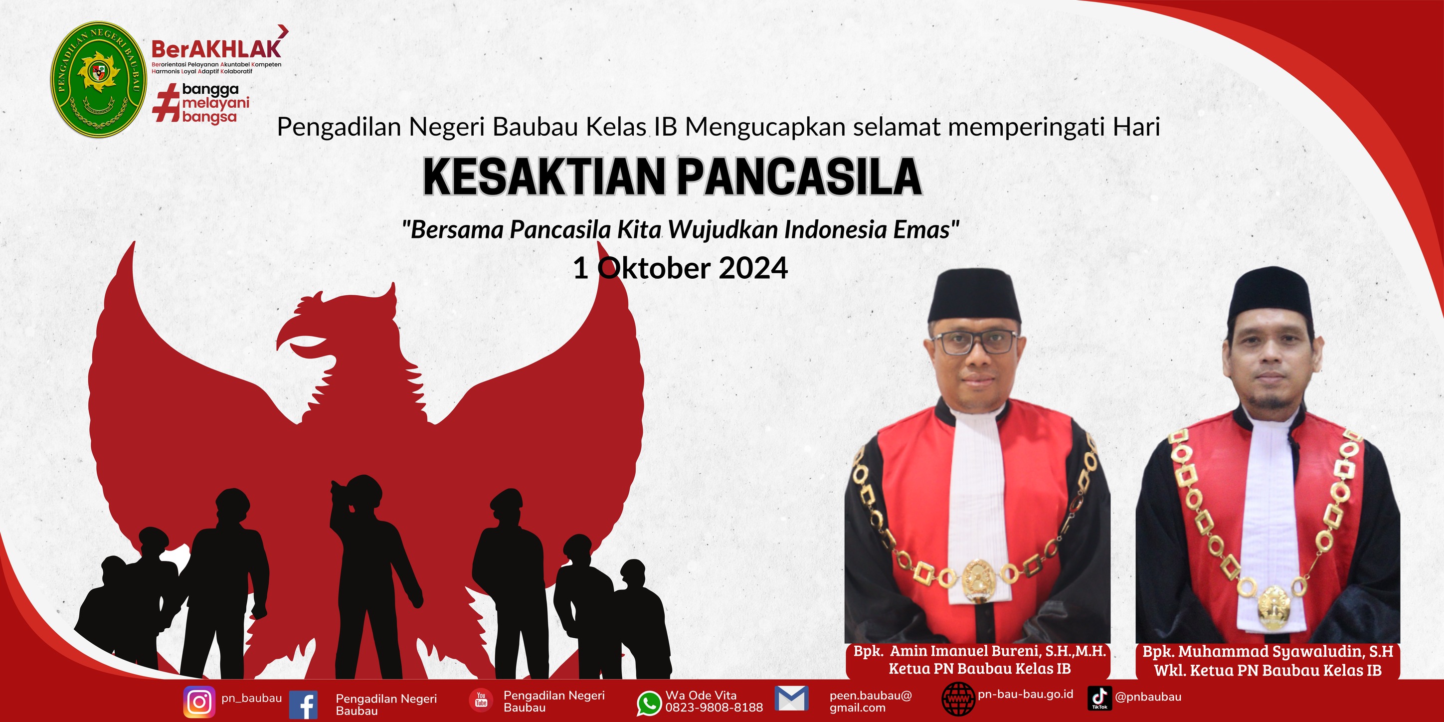Pengadilan Negeri Baubau Kelas IB mengucapkan Selamat Memperingati Hari Kesaktian Pancasila 01 Oktober 2024