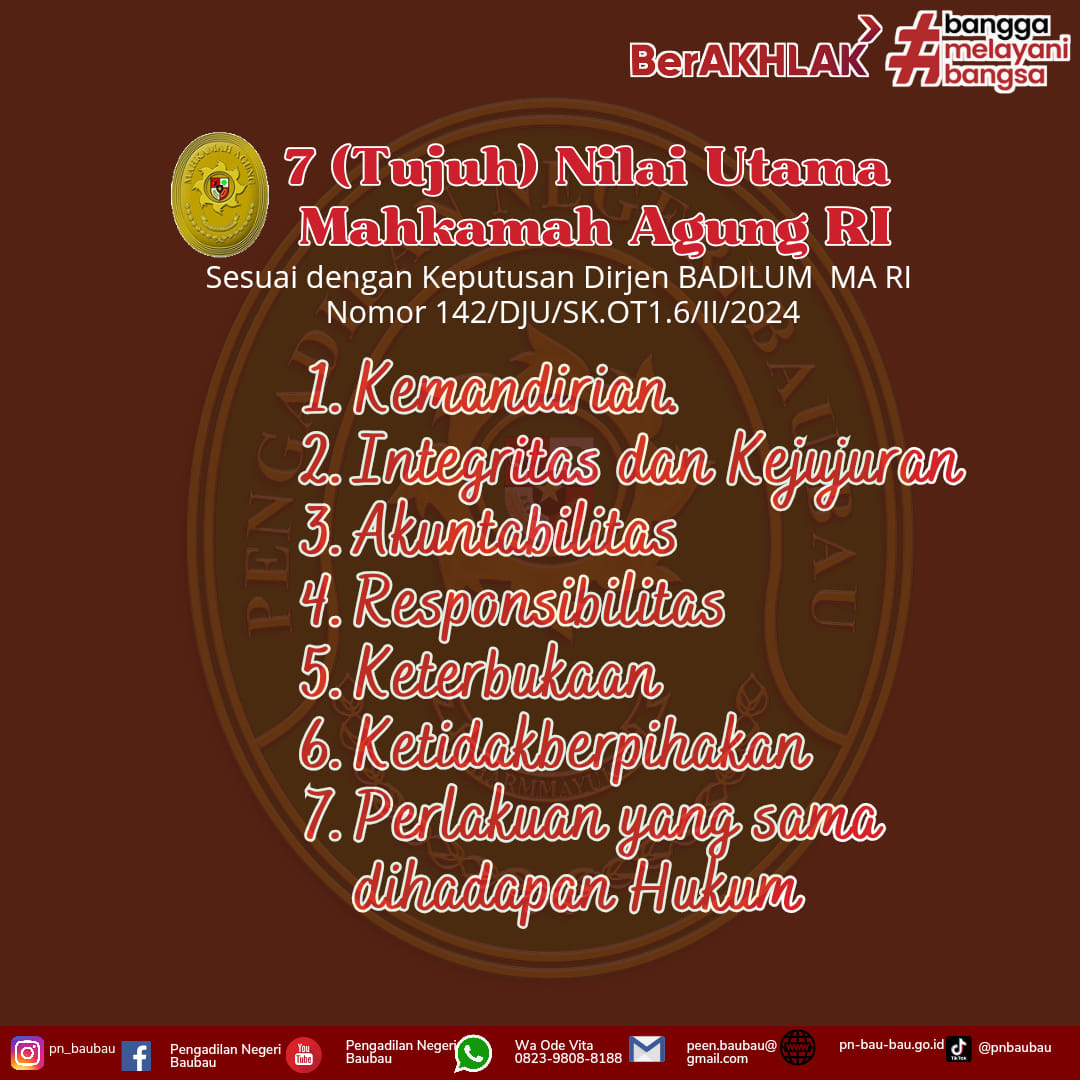 7 (Tujuh) Nilai Utama Mahkamah Agung RI Sesuai dengan Keputusan Dirjen BADILUM MA RI Nomor 142/DJU/SK.OT1.6/II/2024)